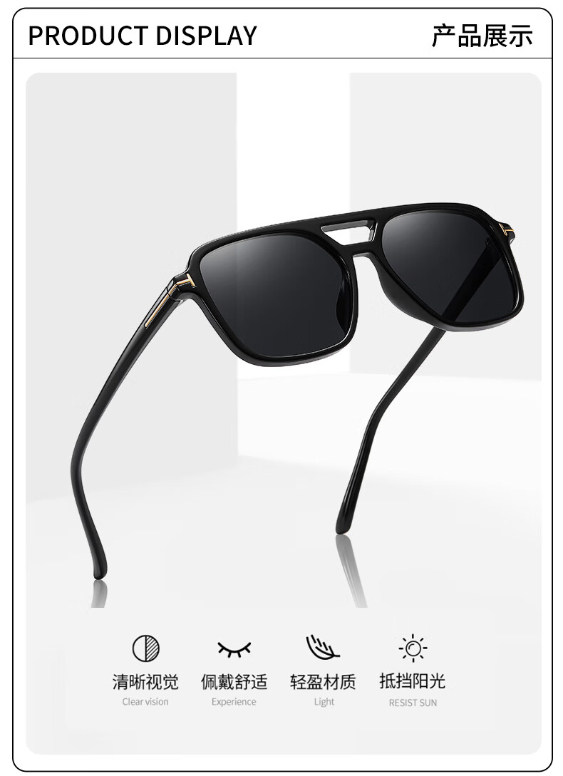 沸士特墨镜 男女款方框偏光太阳镜 高清男女眼镜 开车驾驶七夕礼物墨镜