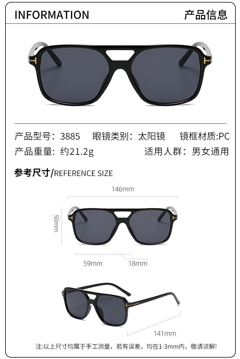 白小奢复古双梁太阳镜-3885【黑框灰片】遮阳眼镜ins风男女驾驶墨镜