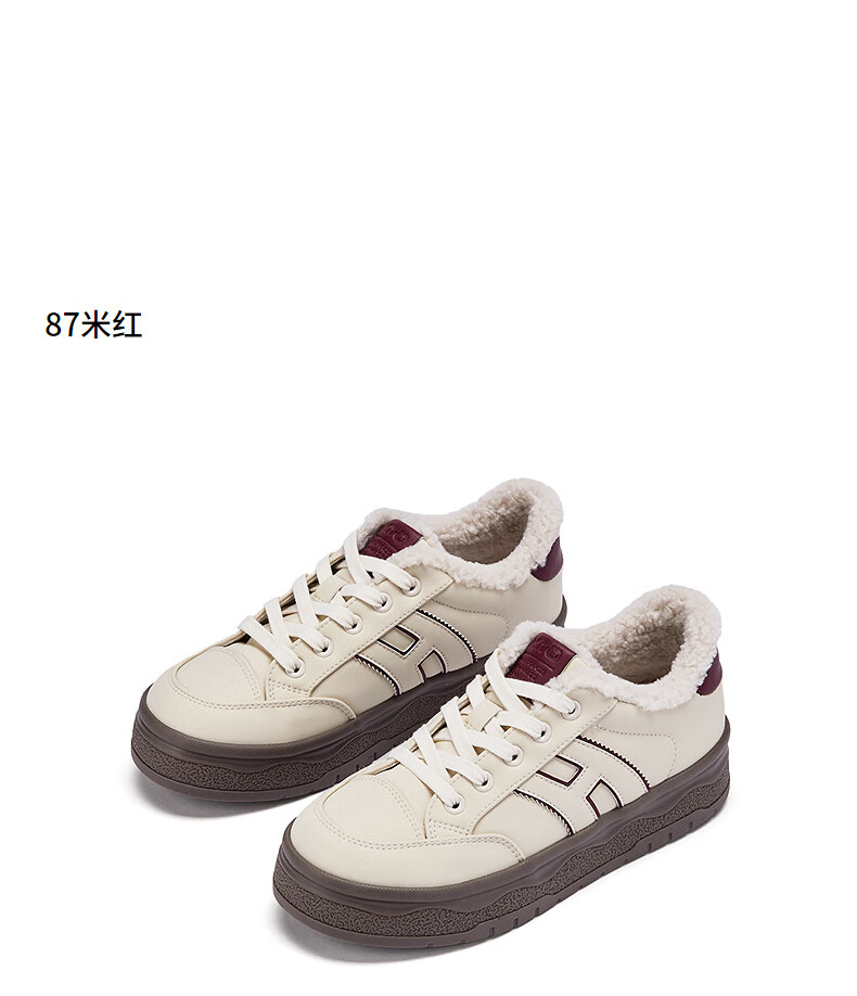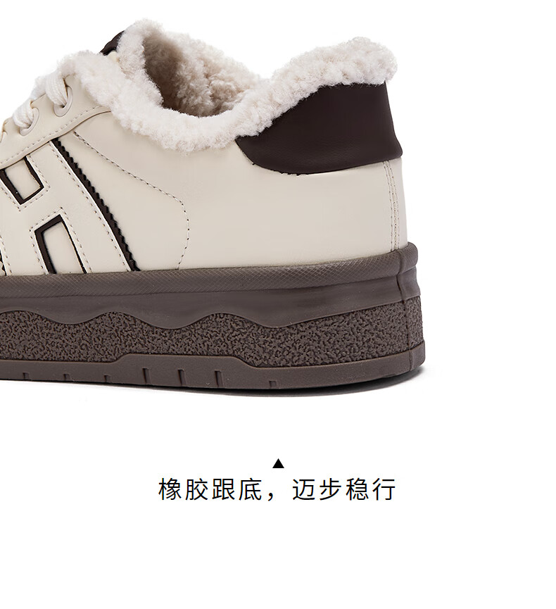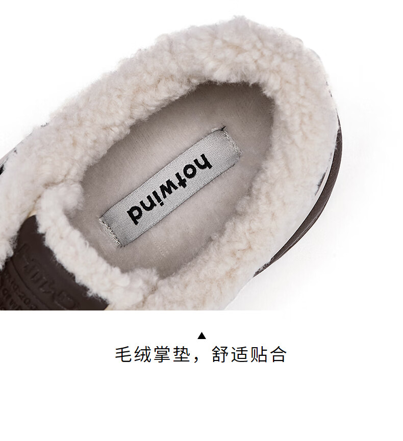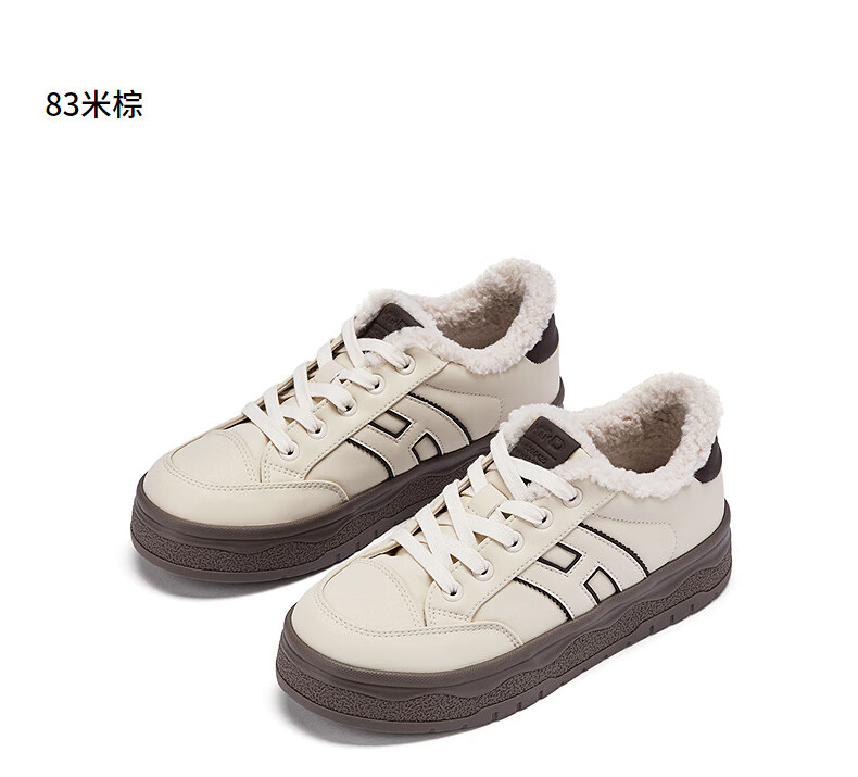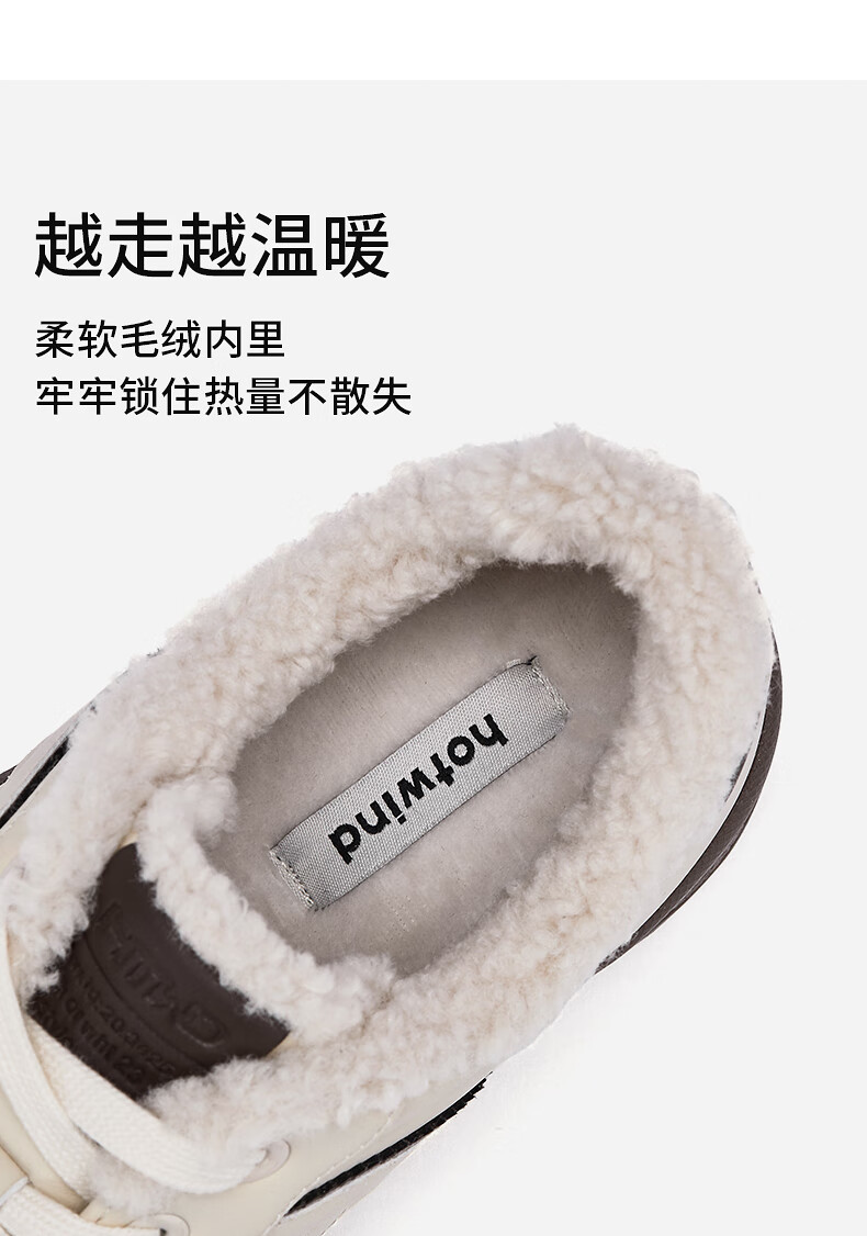 热风(Hotwind)加绒小白鞋女鞋2025年冬季新款厚底增高休闲鞋百搭德训鞋子 83米棕 34