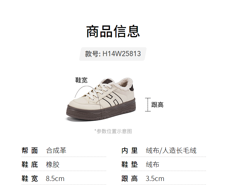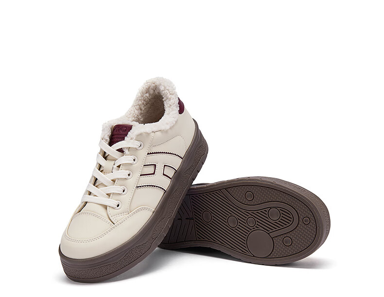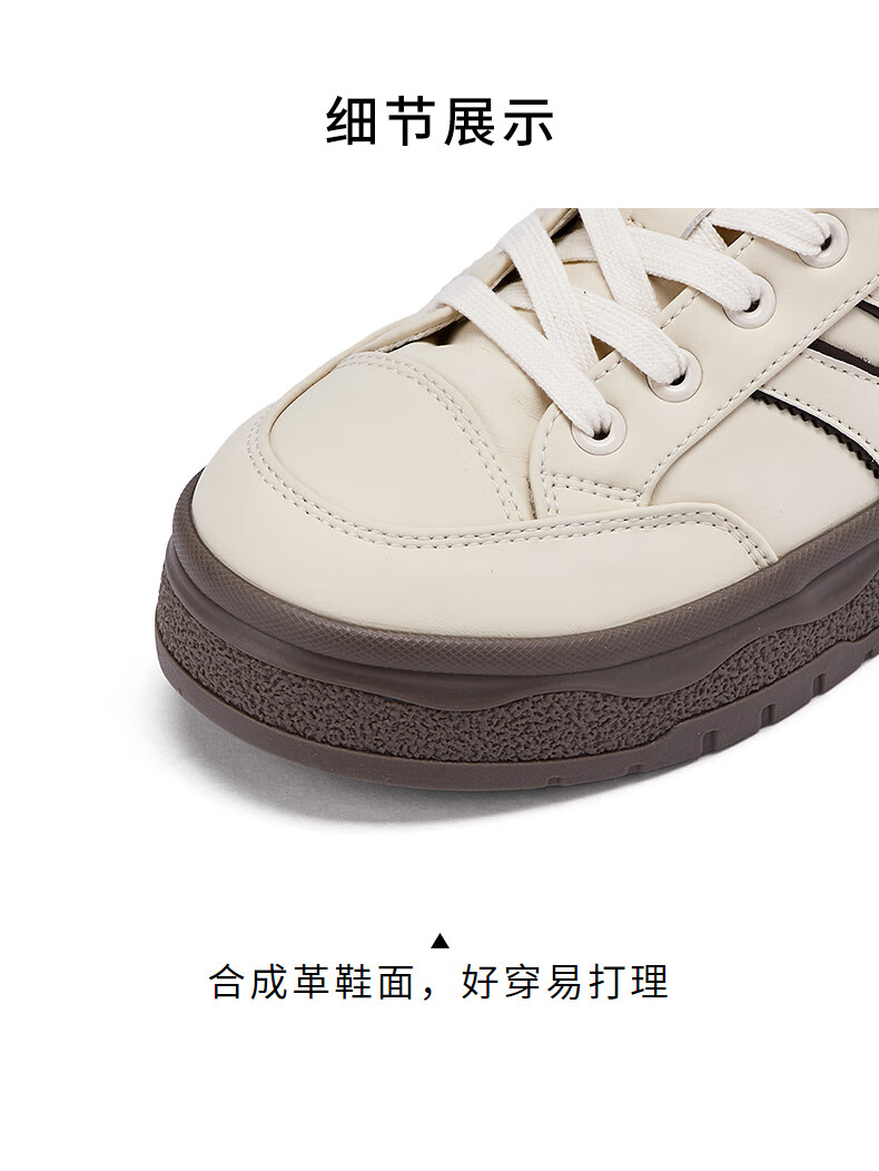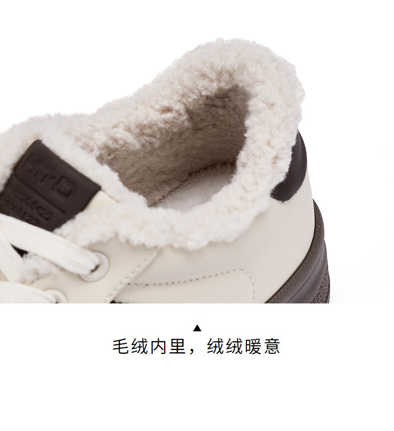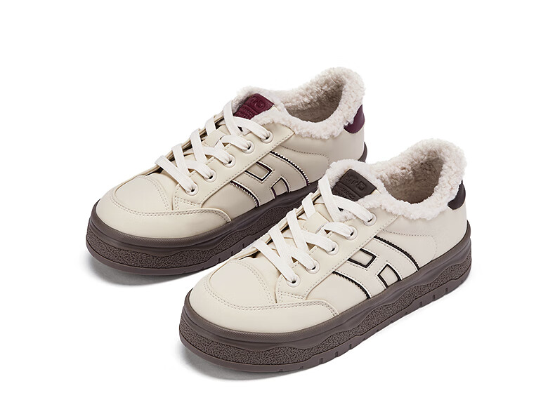 热风(Hotwind)加绒小白鞋女鞋2025年冬季新款厚底增高休闲鞋百搭德训鞋子 83米棕 34