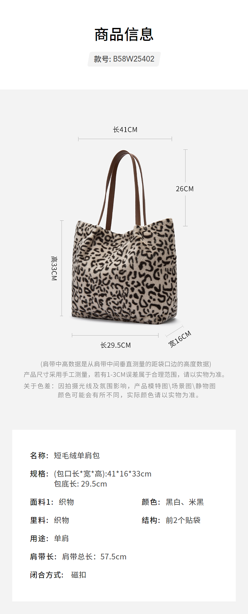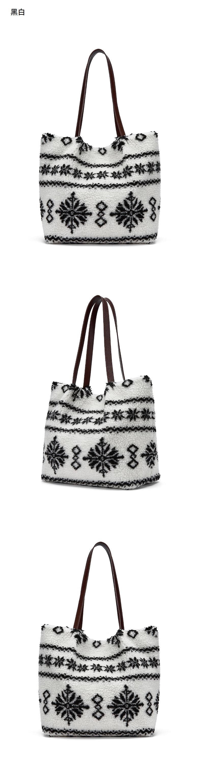 热风(Hotwind)2025年冬季新款女士短毛绒单肩包 19黑白 F