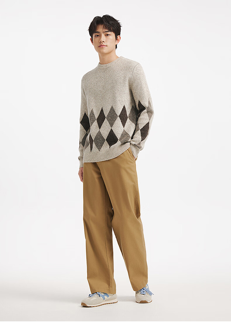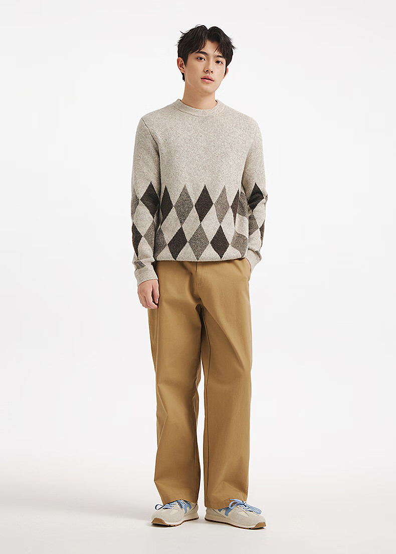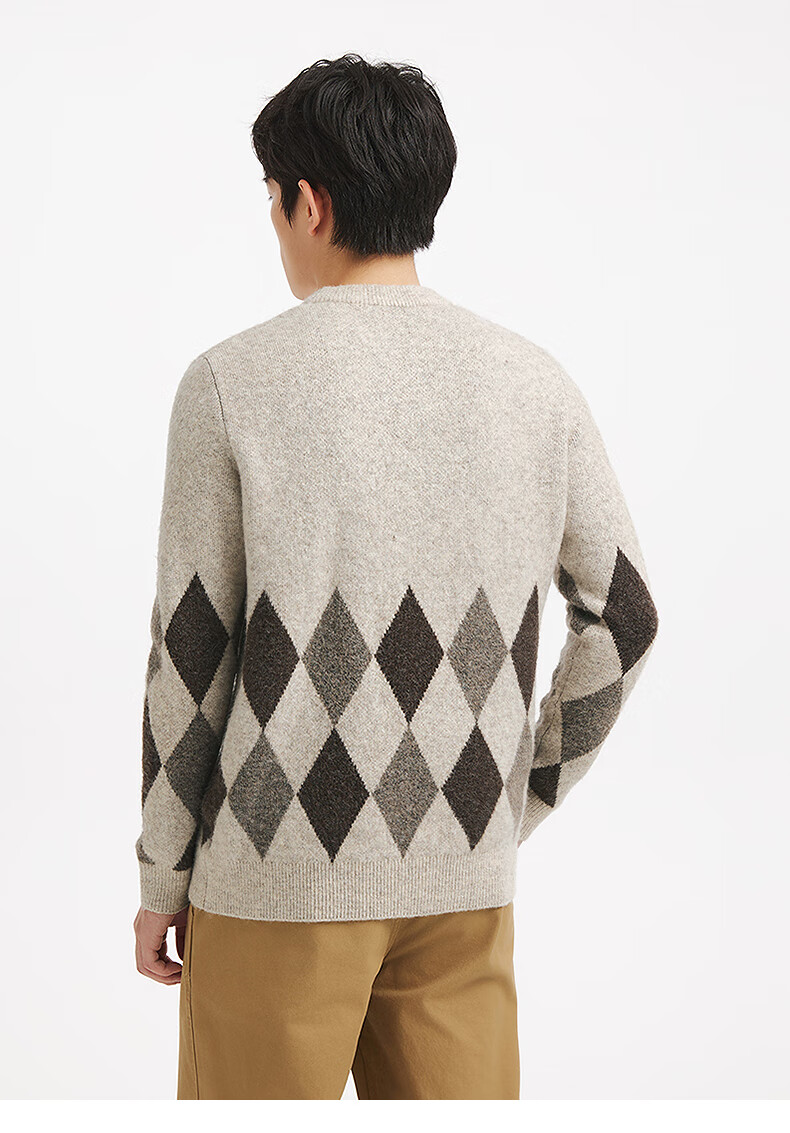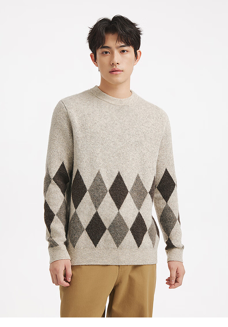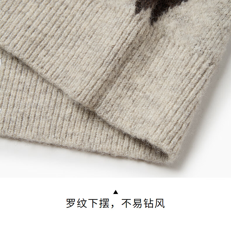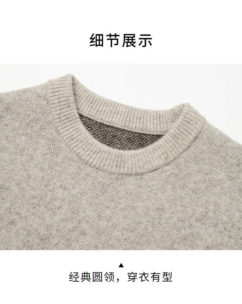 热风(Hotwind)男士圆领毛衣2025年冬季新款时尚撞色针织衫百搭内搭打底衫 125杏灰 S