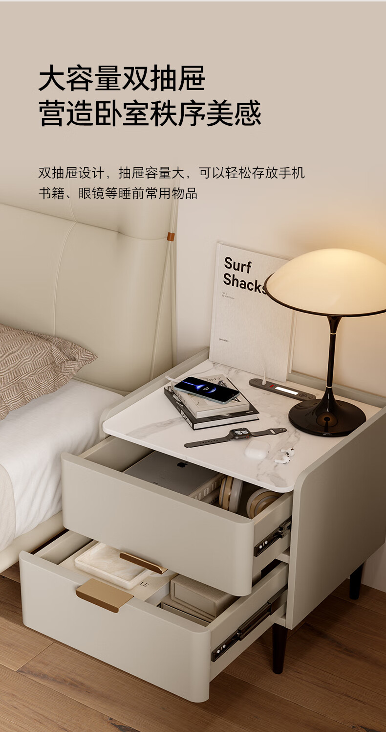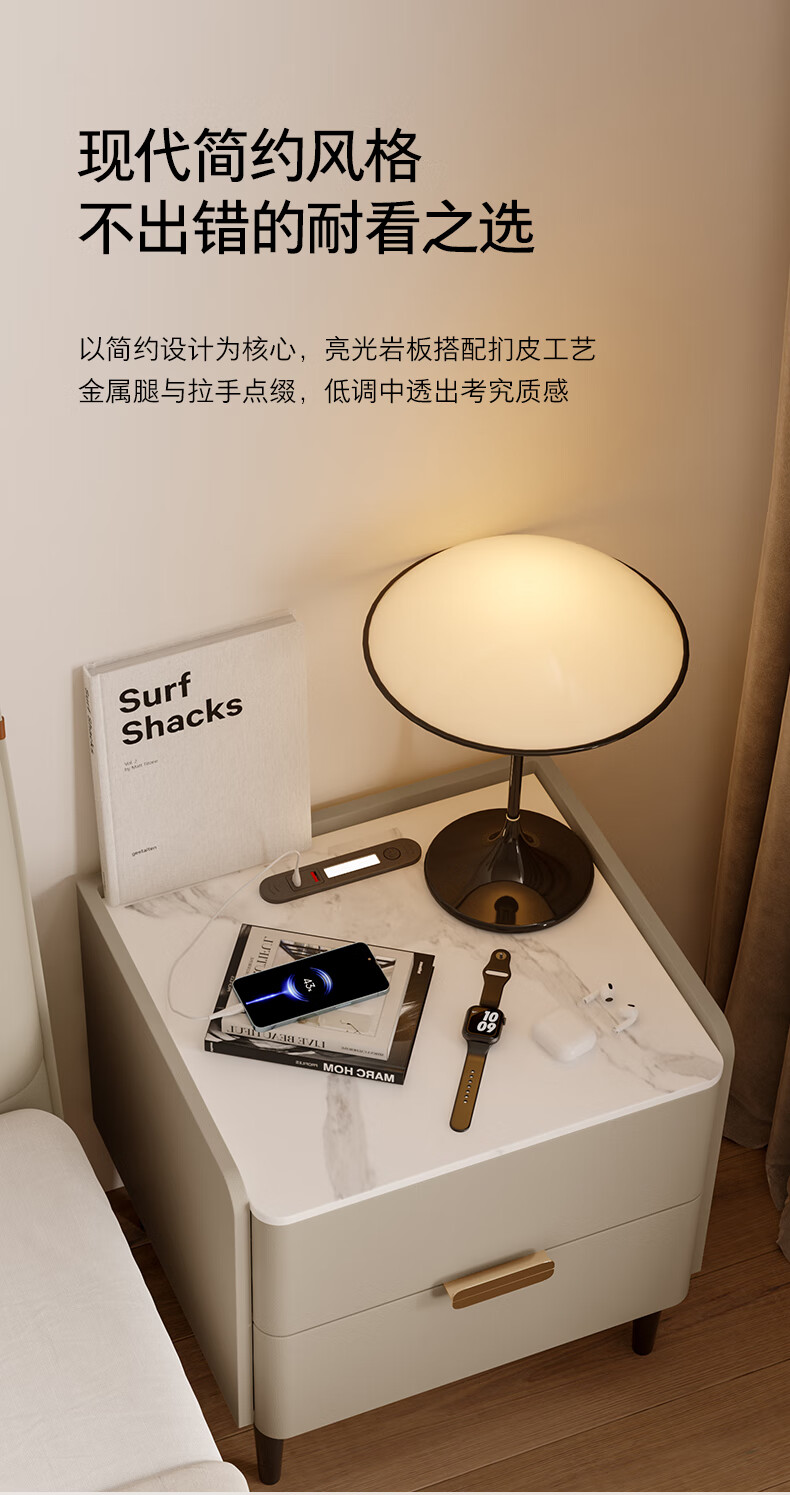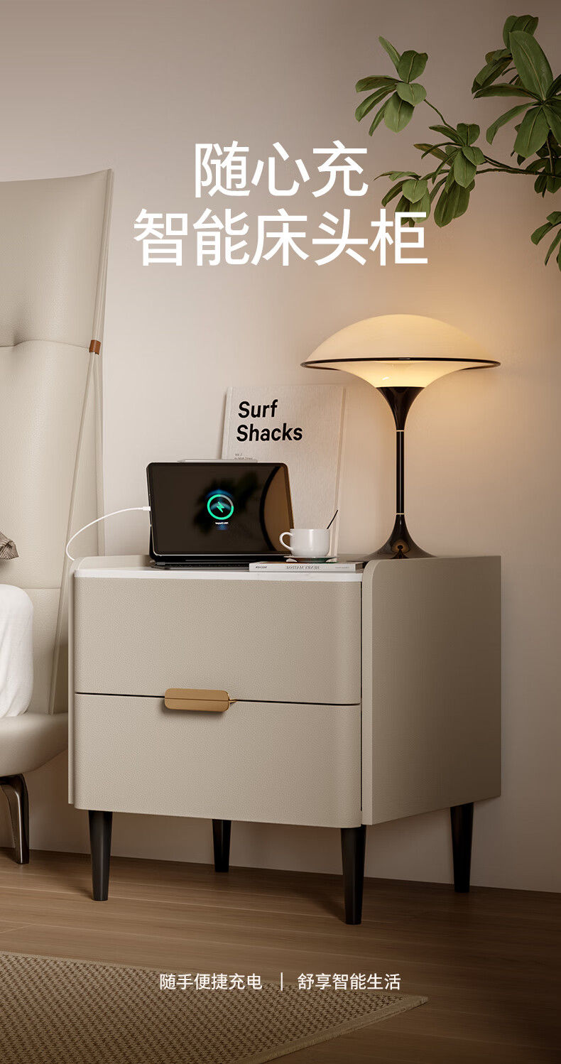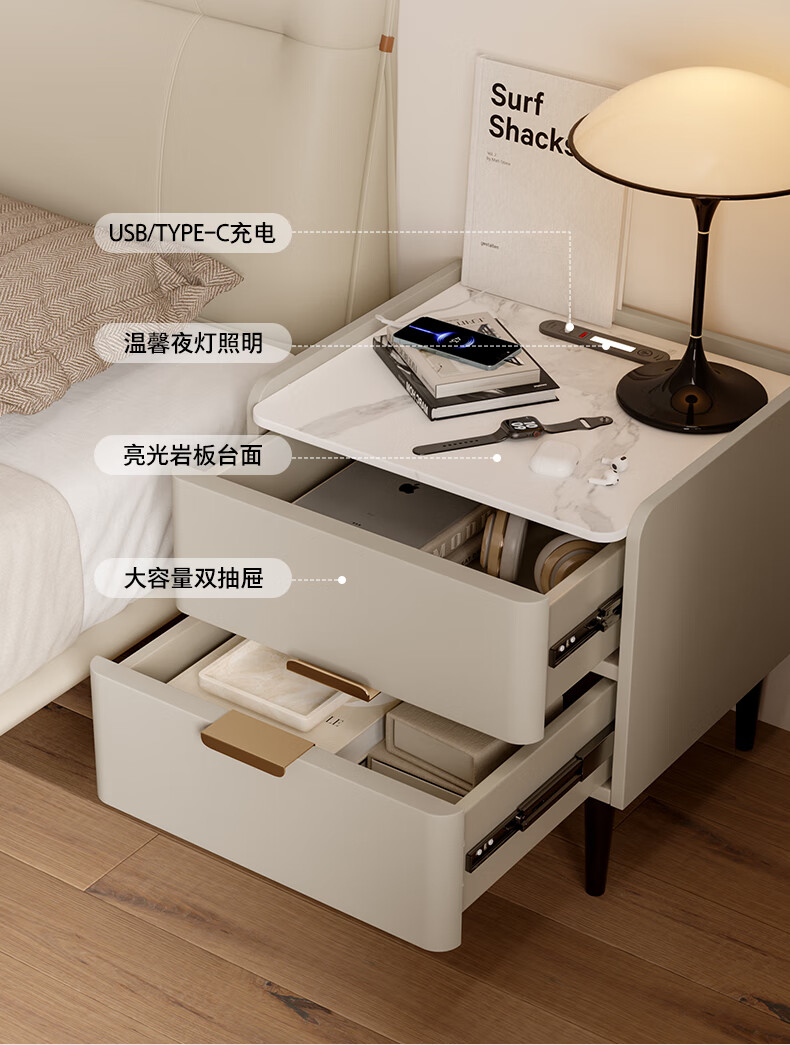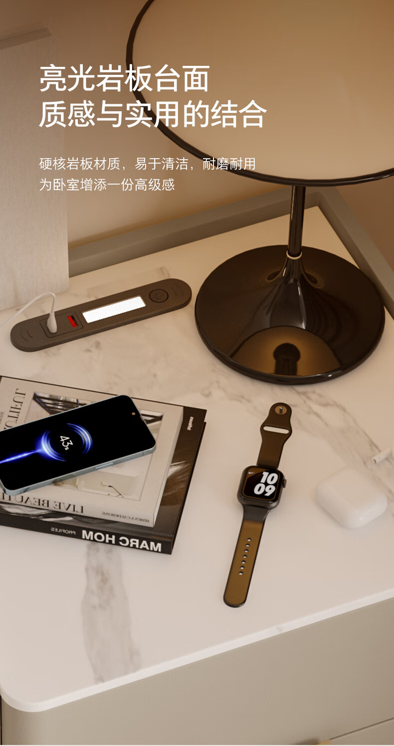 顾家家居(KUKA)现代简约意式轻奢储物岩板台面卧室收纳床头柜7996 【浅奶咖】智能款+小夜灯