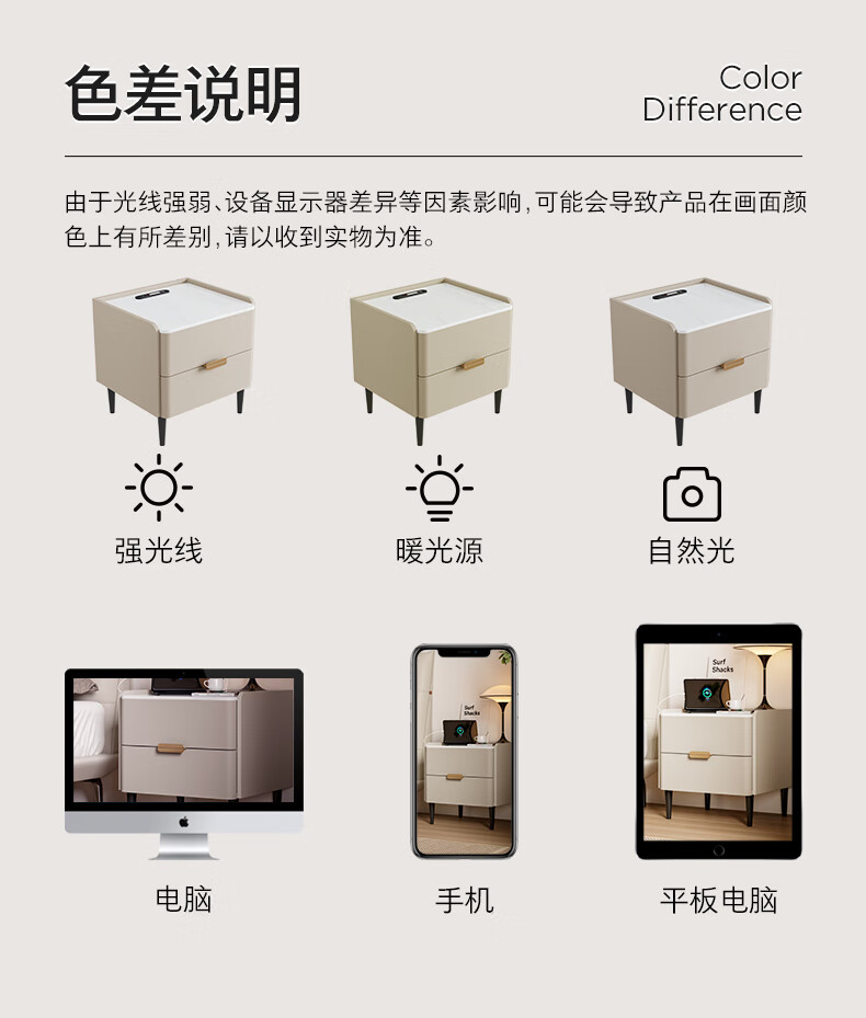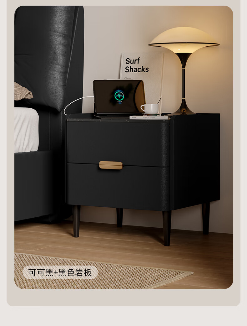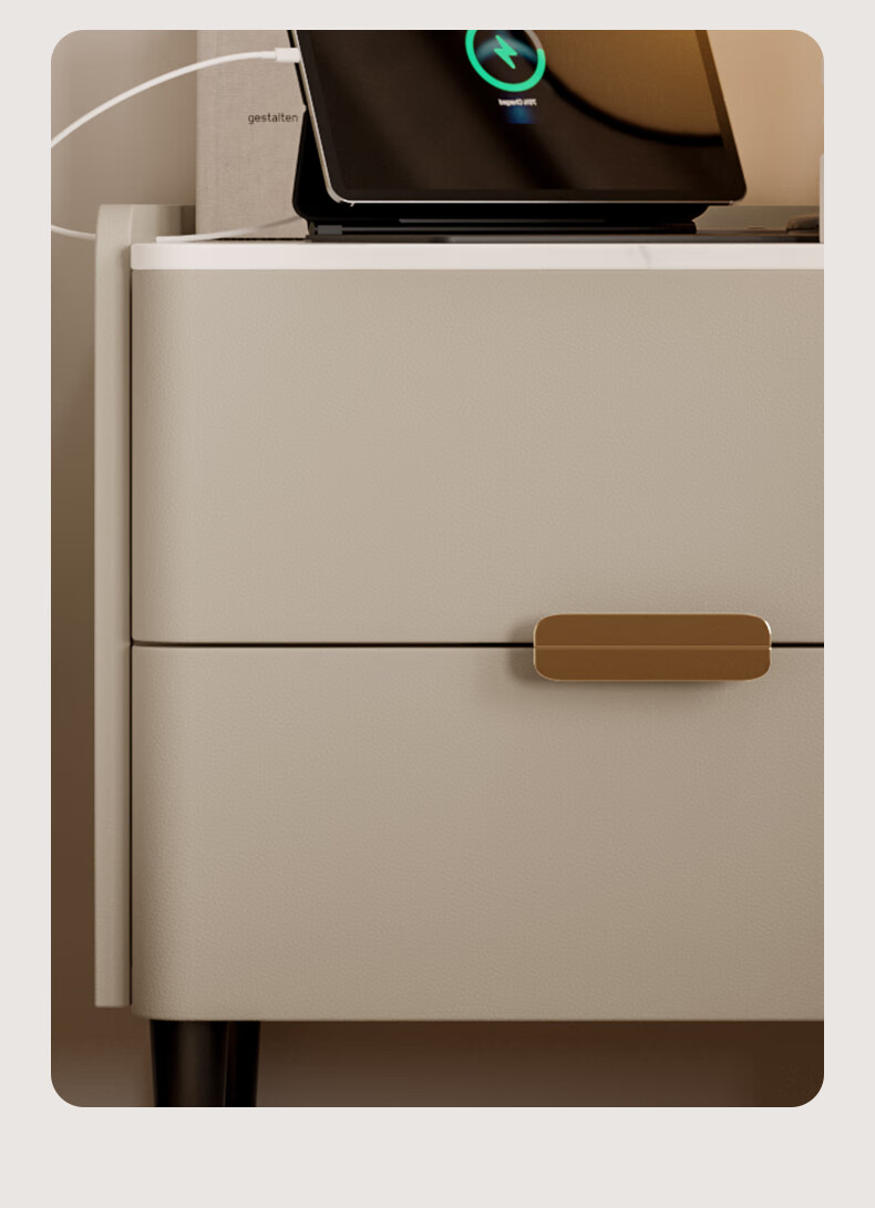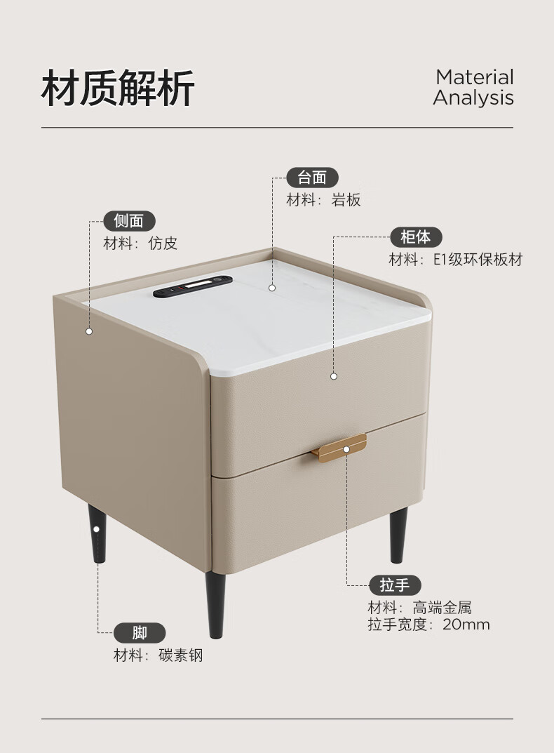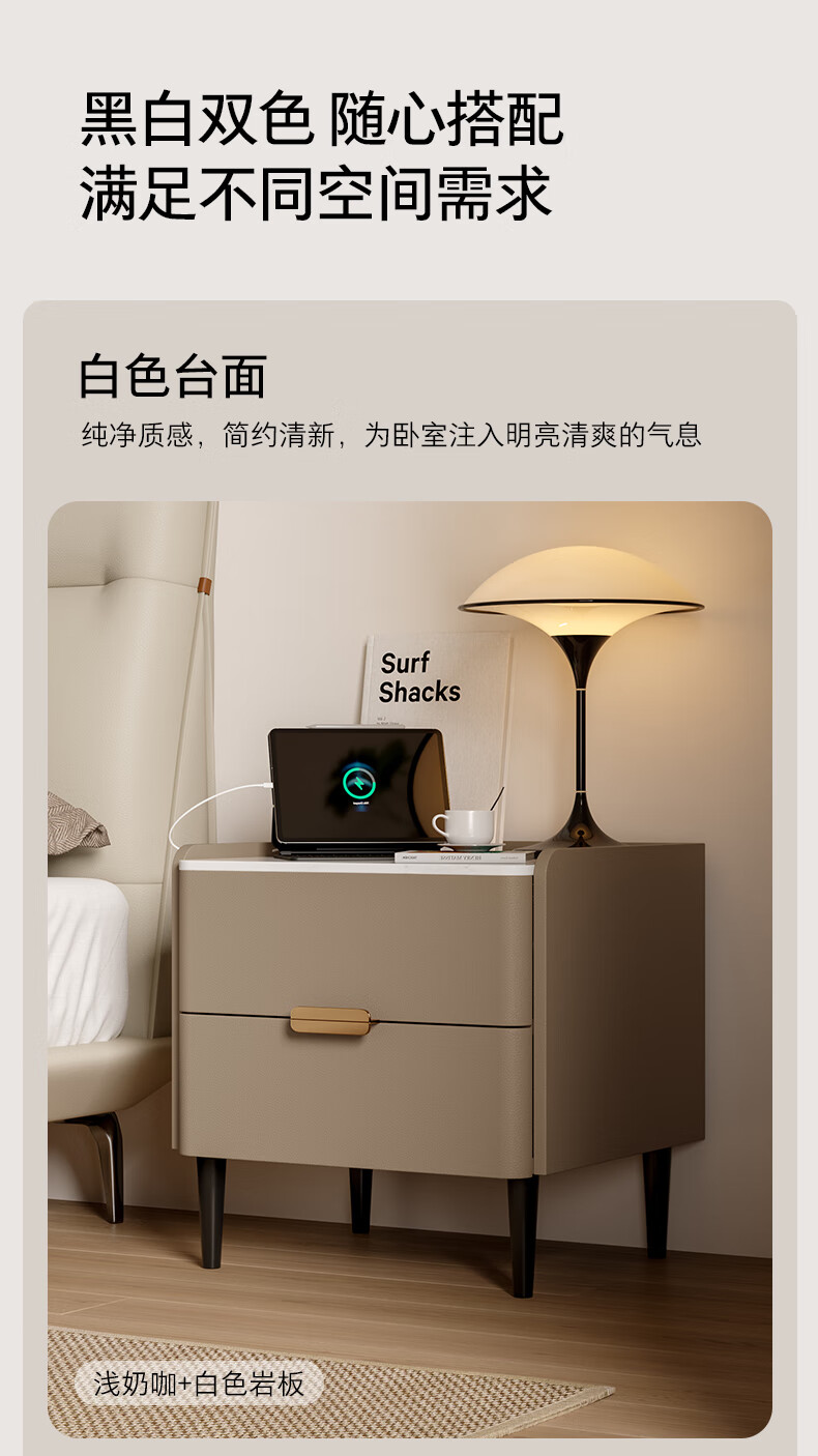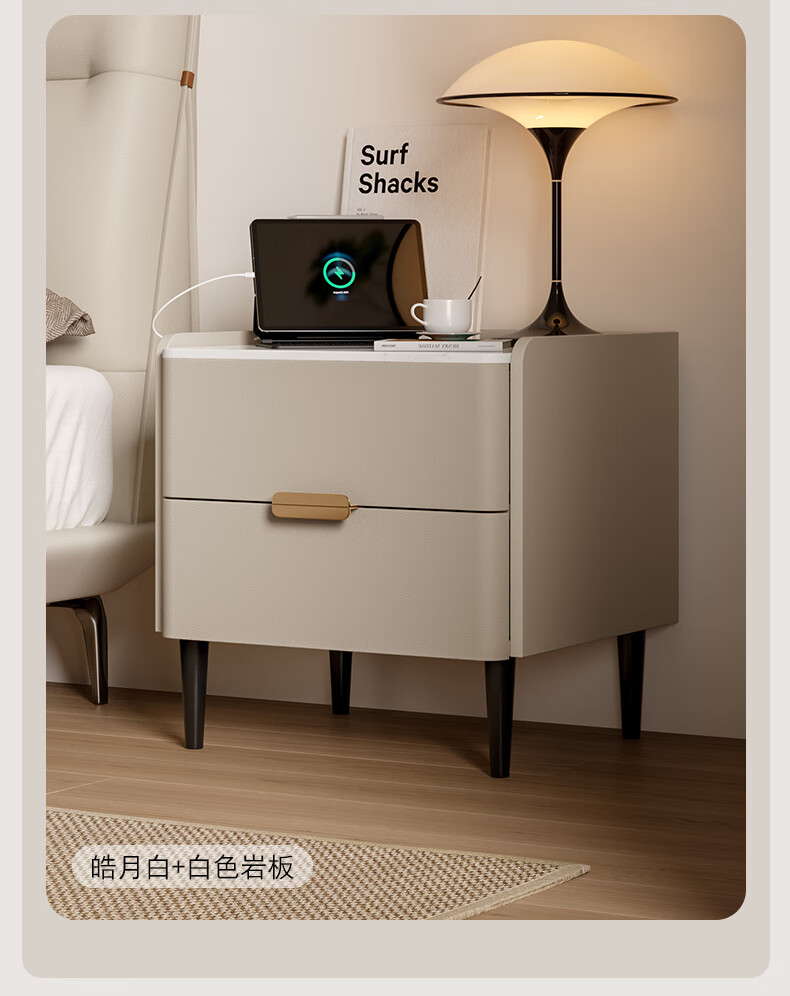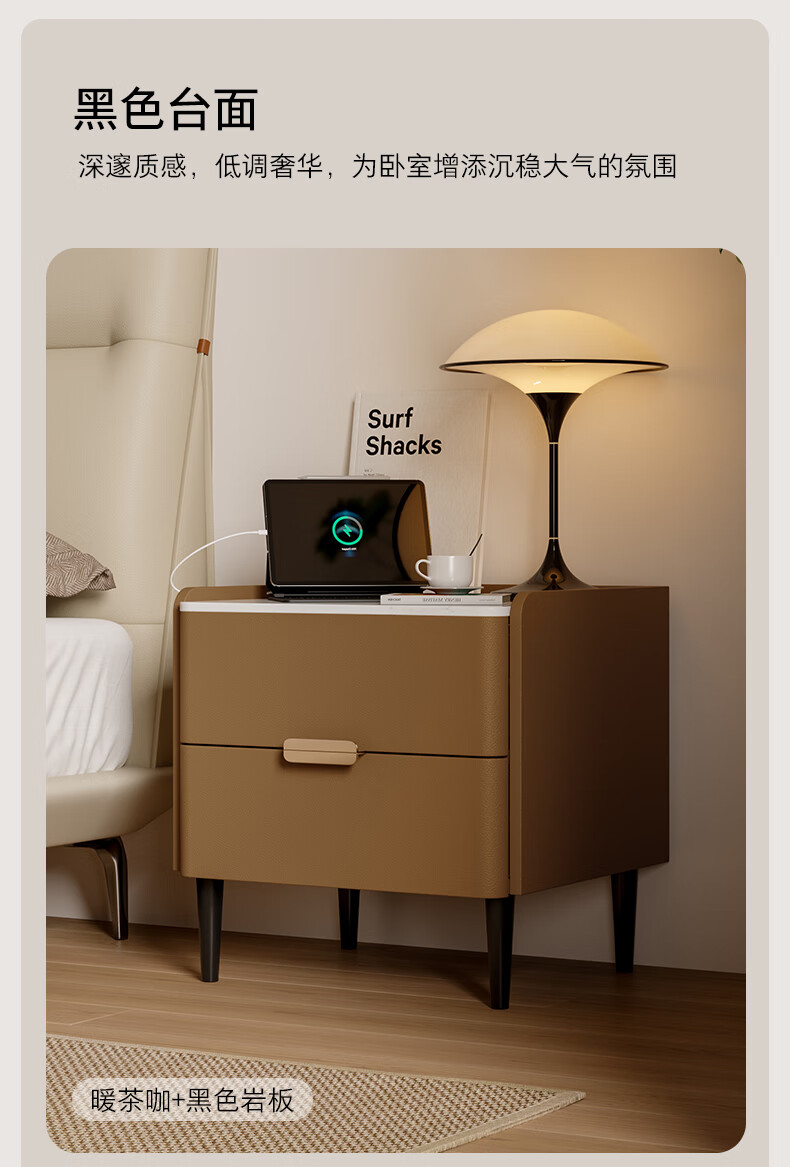 顾家家居(KUKA)现代简约意式轻奢储物岩板台面卧室收纳床头柜7996 【浅奶咖】智能款+小夜灯