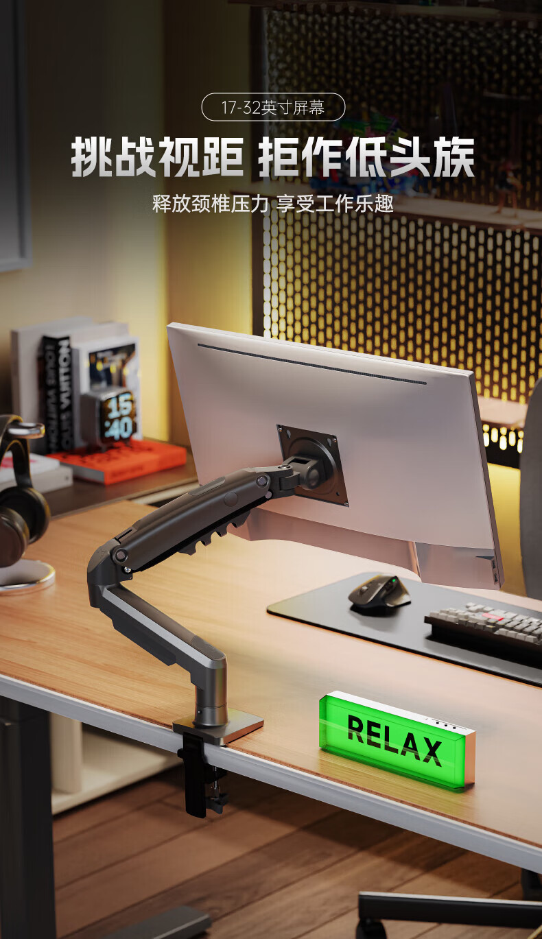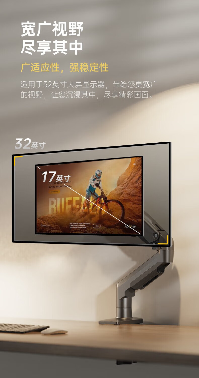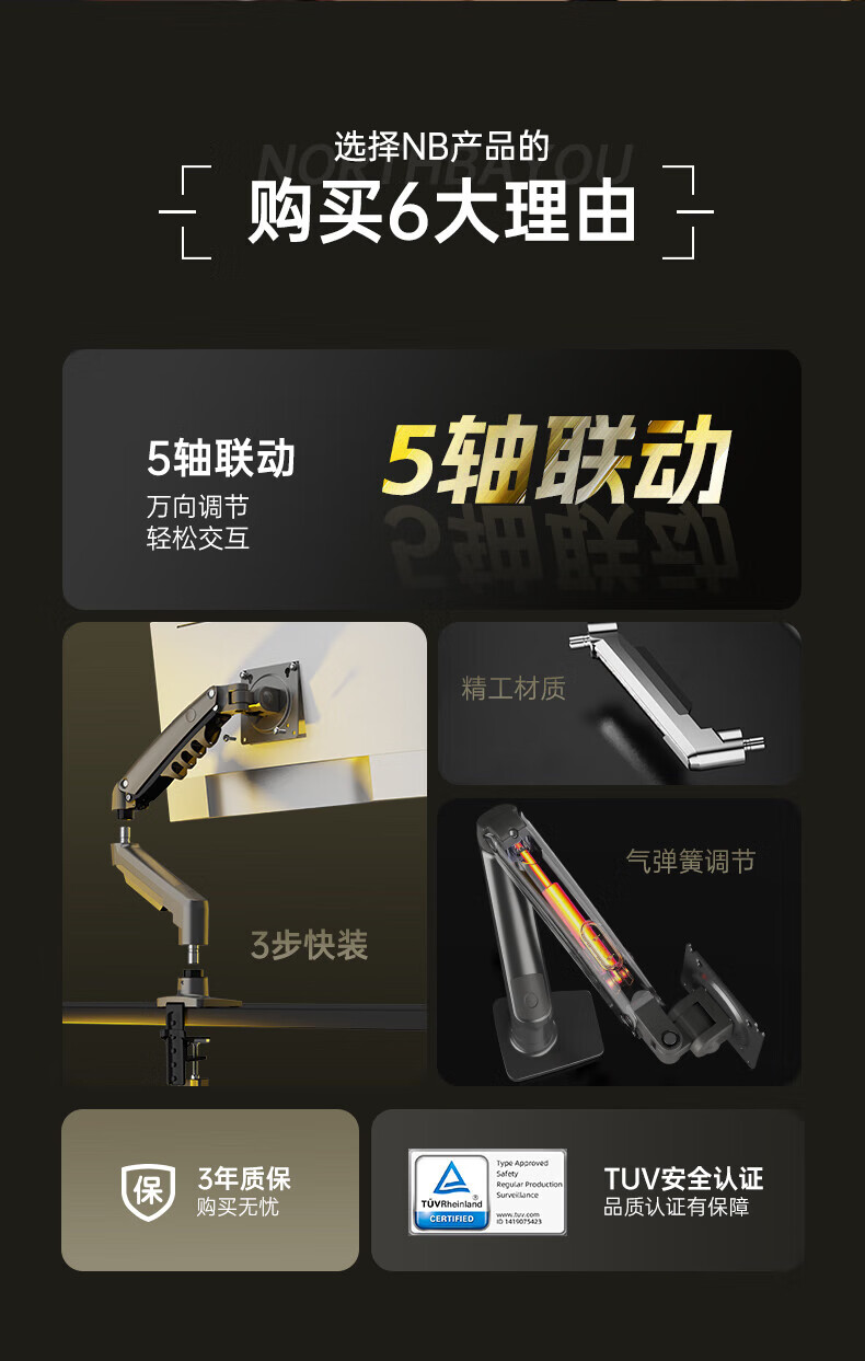 NB(ERGONOMIC)显示器支架F80 G40 H100 H180机械臂桌夹穿孔式安装17 24 30 32 50 60英寸电脑屏幕支架显示器增高 F80 湖水蓝色 承重9KG /17-30英寸