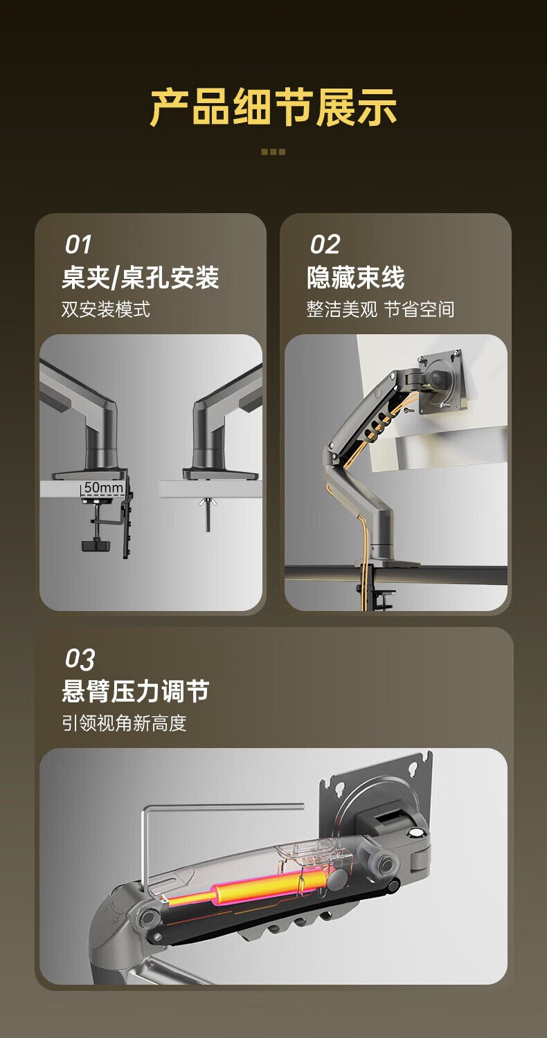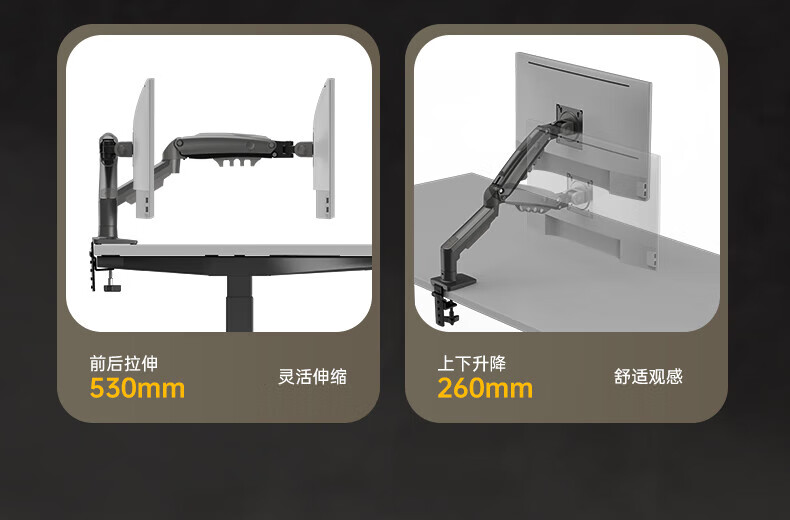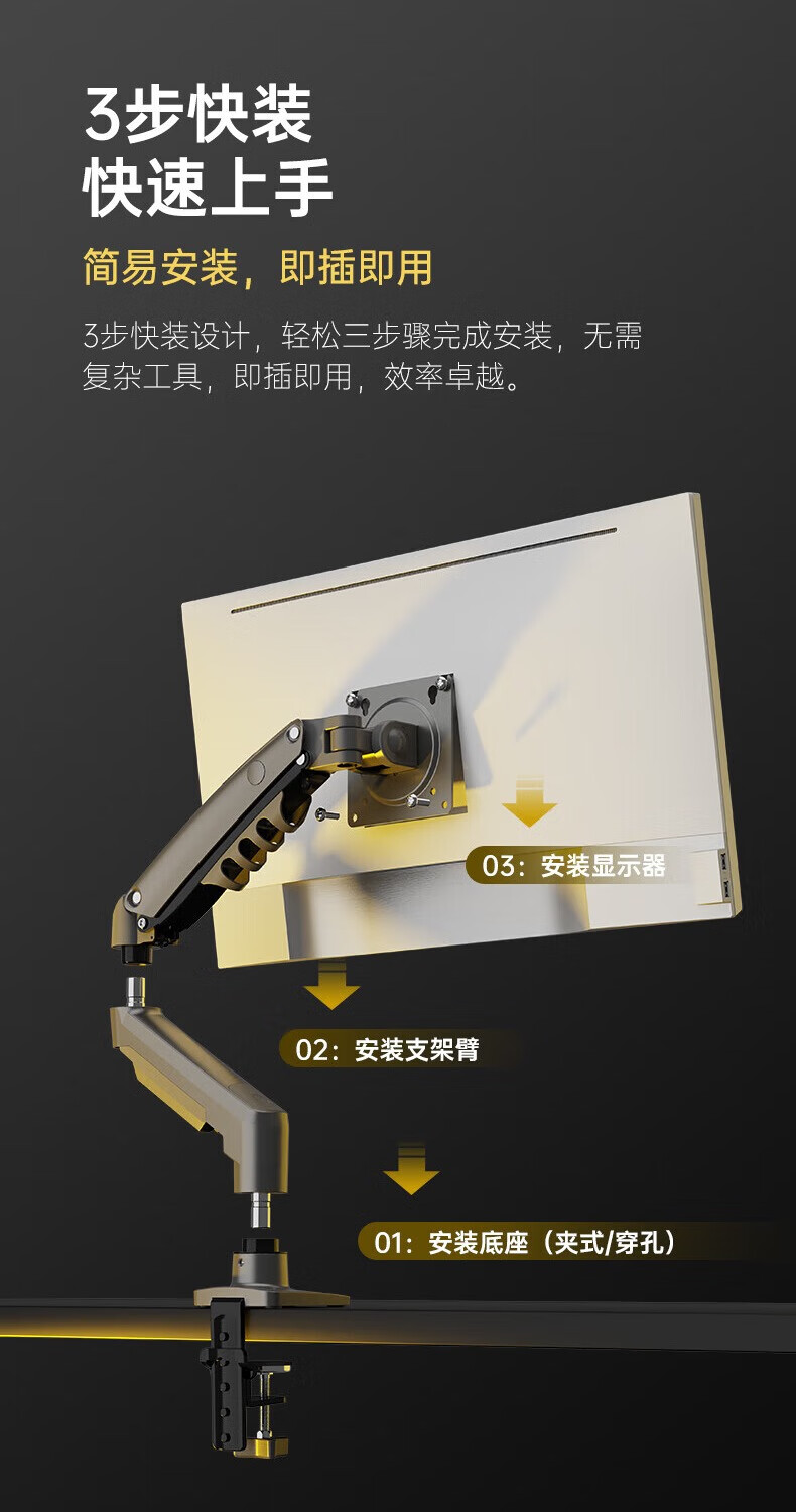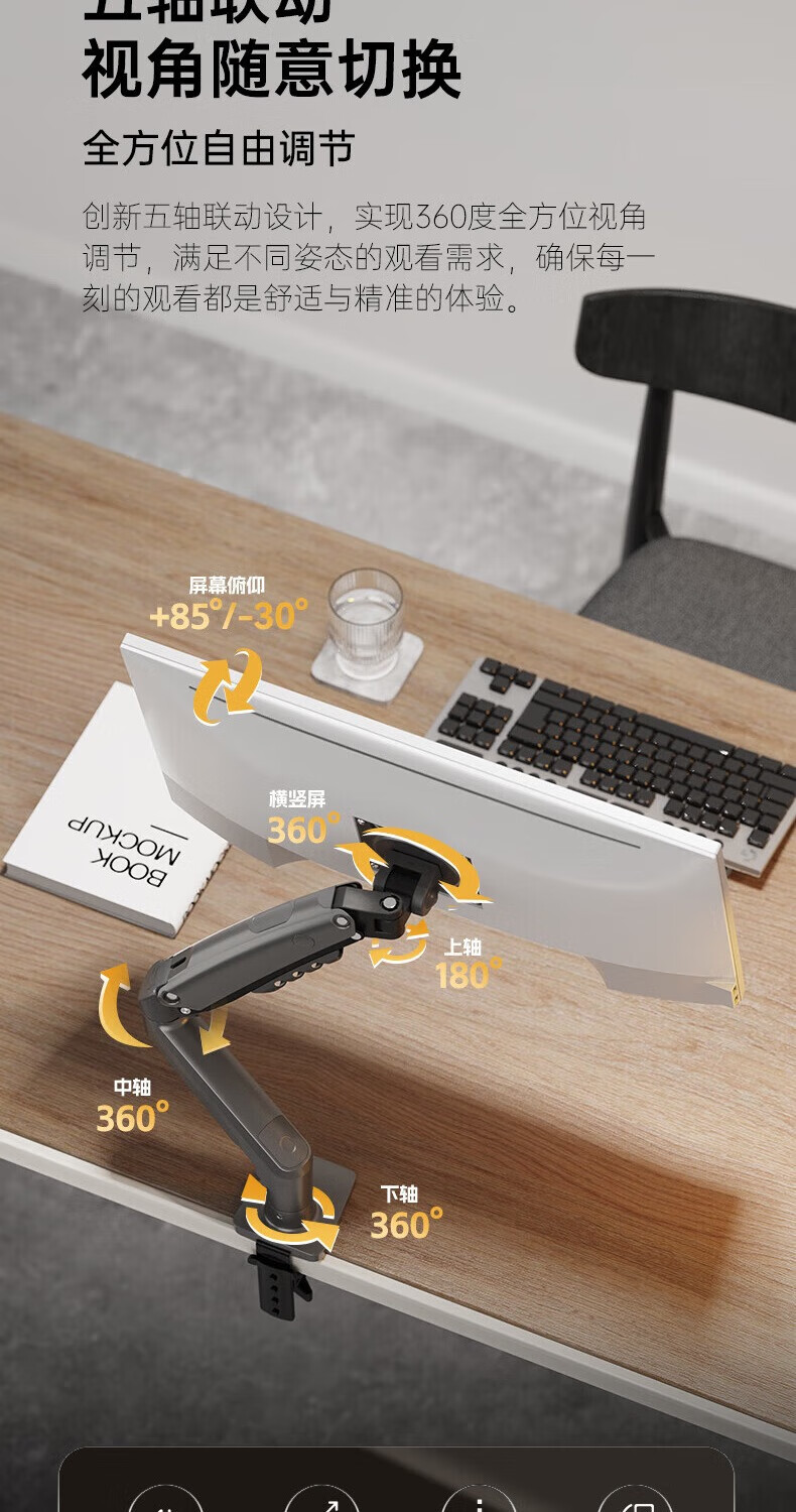 NB(ERGONOMIC)显示器支架F80 G40 H100 H180机械臂桌夹穿孔式安装17 24 30 32 50 60英寸电脑屏幕支架显示器增高 F80 湖水蓝色 承重9KG /17-30英寸