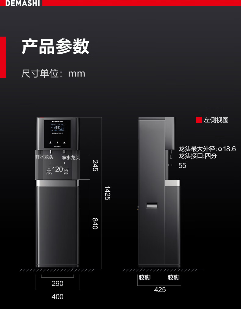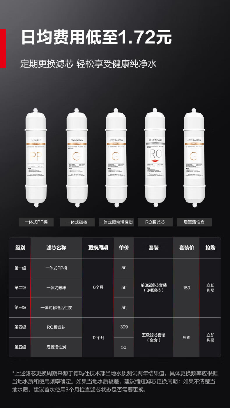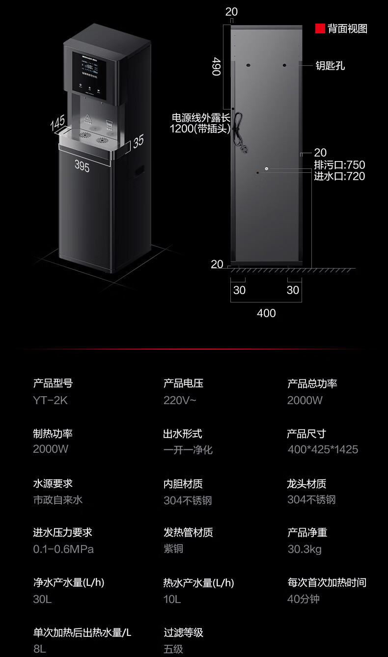 德玛仕(DEMASHI)商用净水器饮水机净水机学校公司办公室工业工厂直饮机五级RO净化加热过滤一体饮水机烧水器 YT-2K
