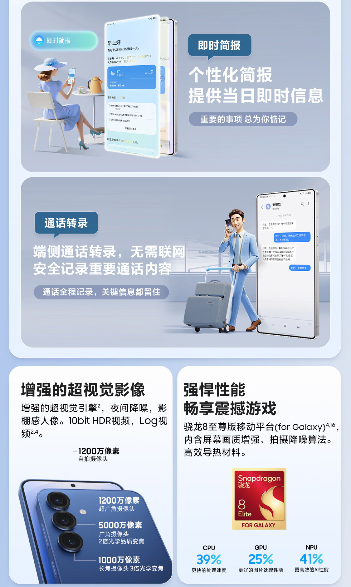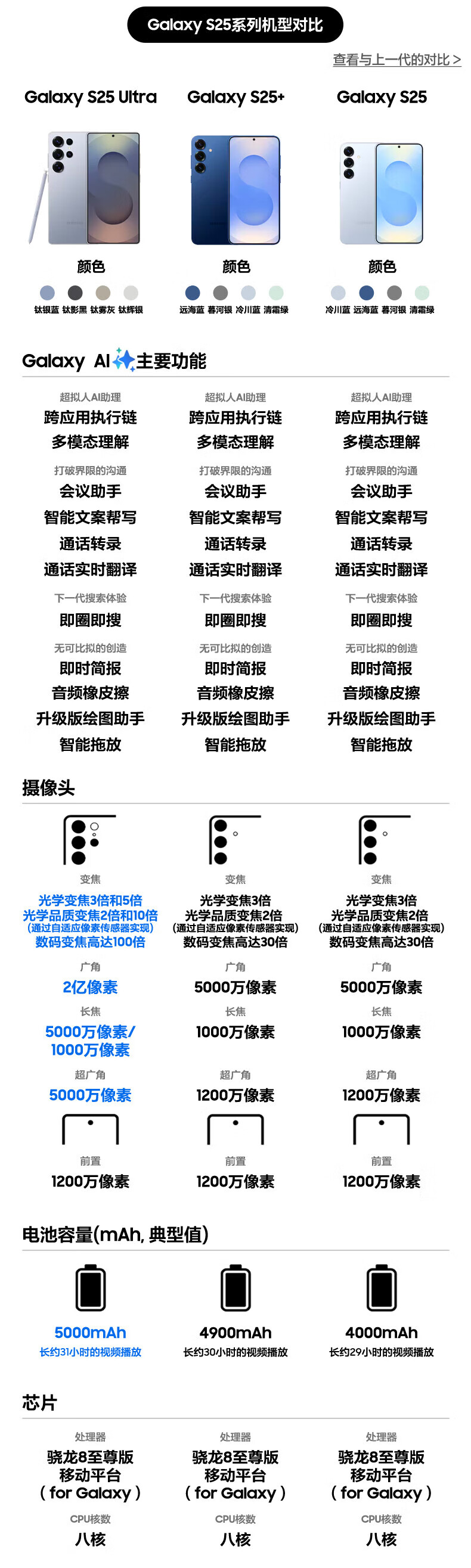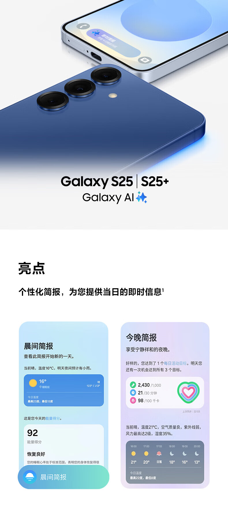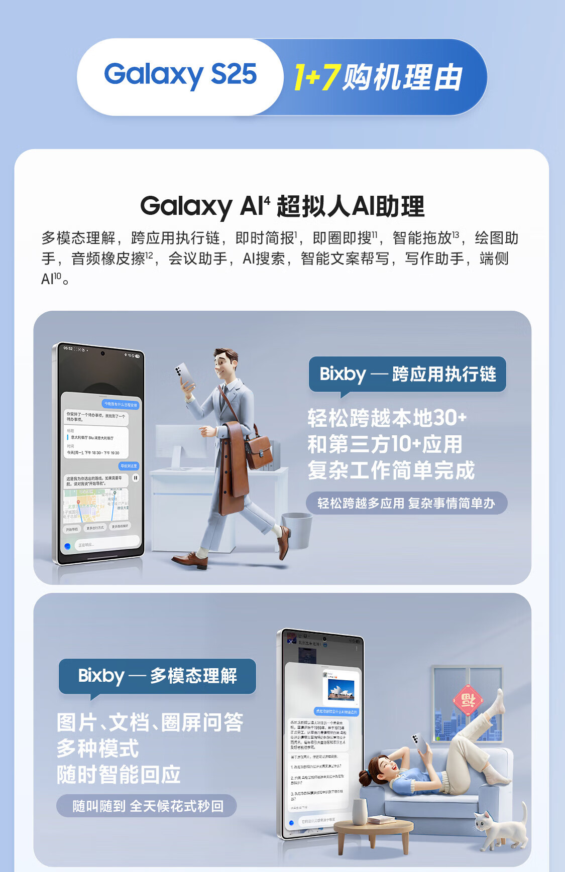 三星(SAMSUNG)Galaxy S25 超拟人AI助理 增强的视觉影像 骁龙8至尊版移动平台 AI手机 远海蓝 12GB+256GB 官方标配