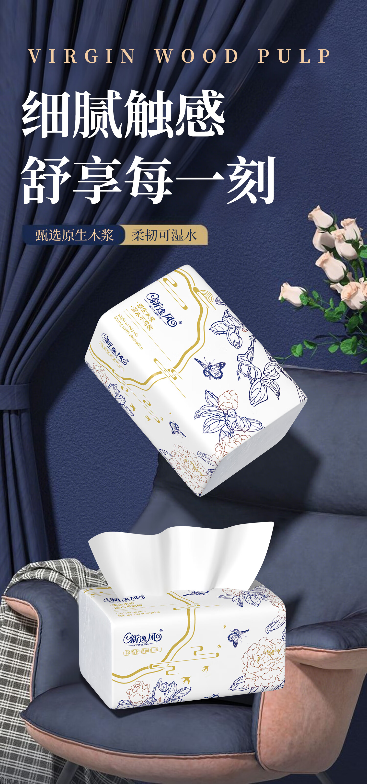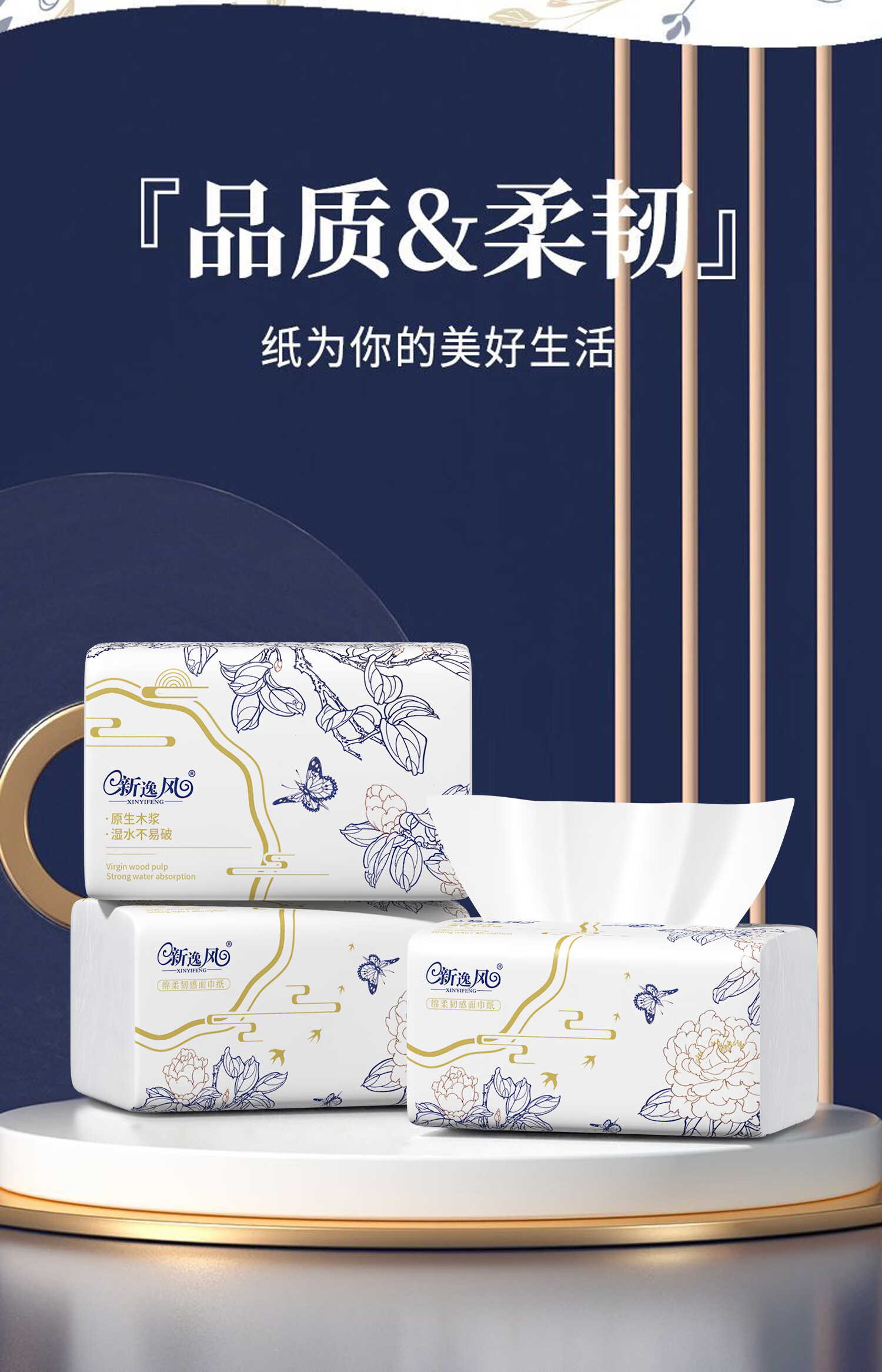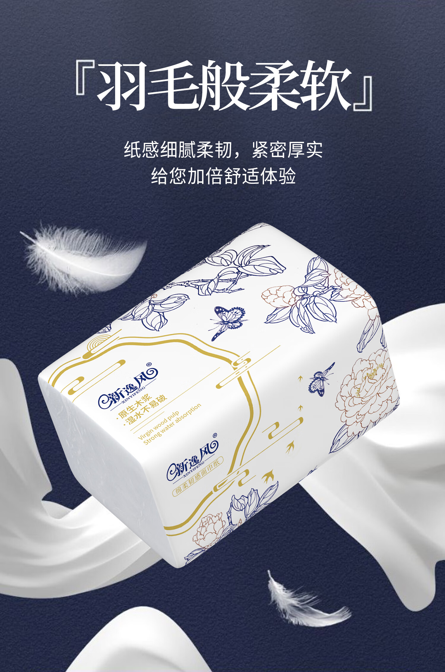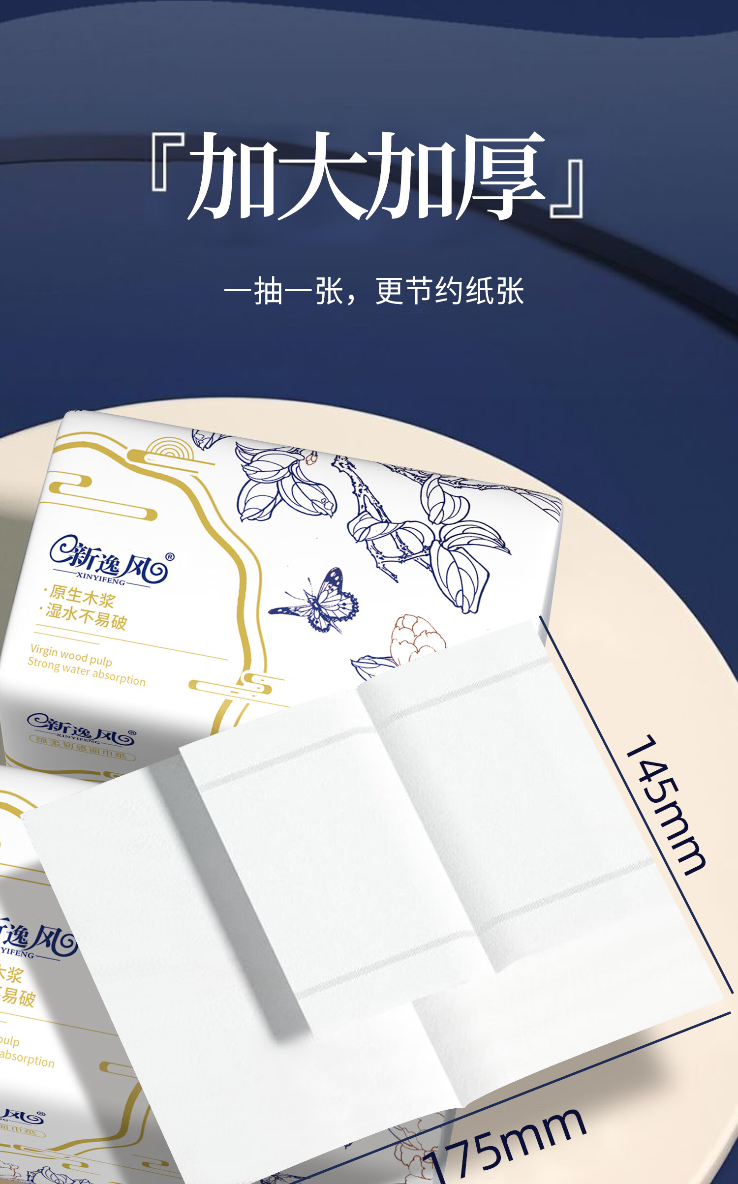 新逸风(XINYIFENG)抽纸家用纸巾整箱批发纸抽大尺寸5层加厚餐巾纸家庭装柔韧面巾纸 5层 400张*6包
