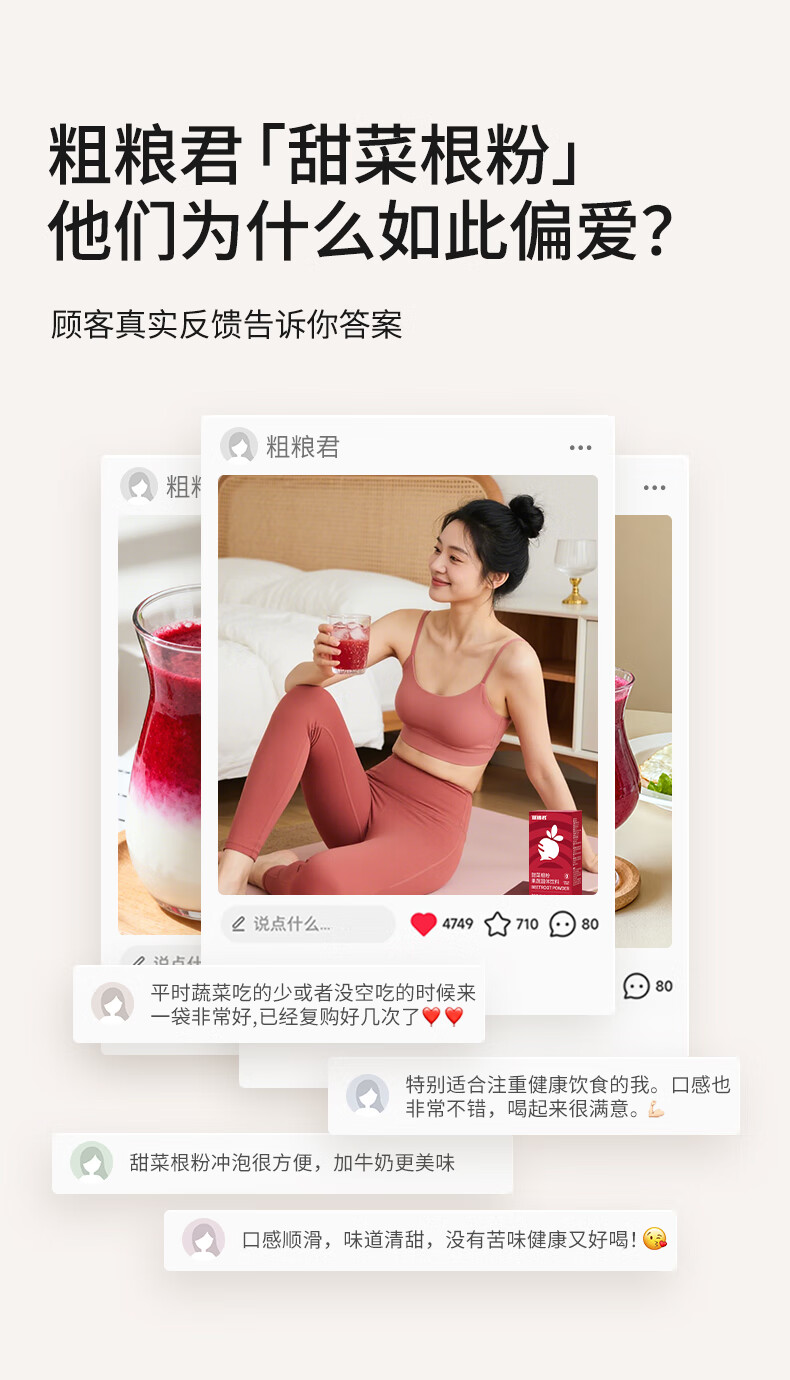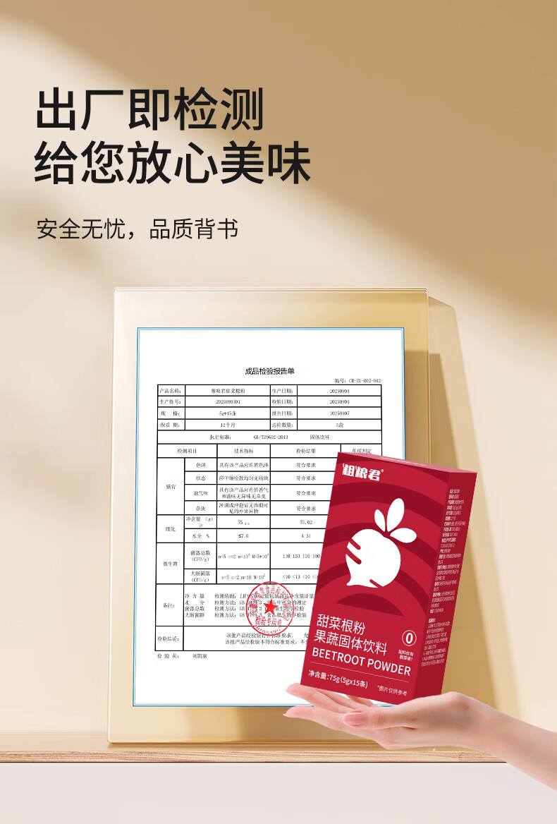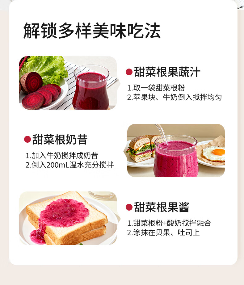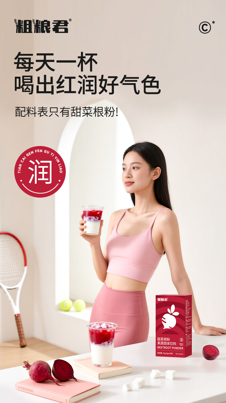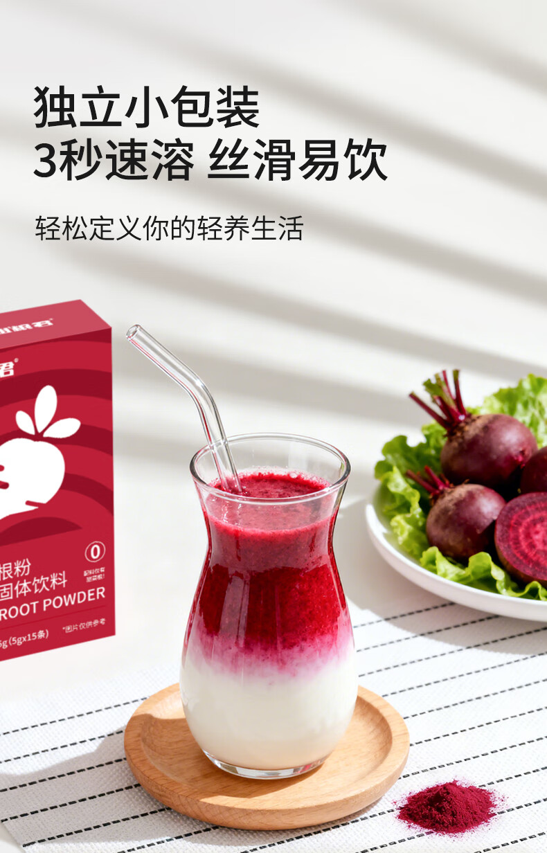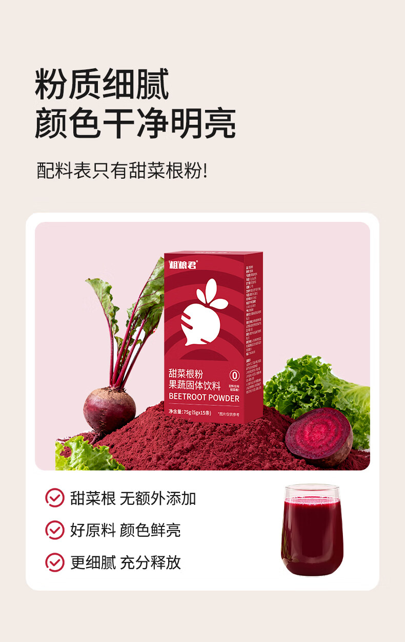 粗粮君甜菜根粉果蔬粉膳食纤维运动健身管理期叶酸钾元素补充 1盒15袋