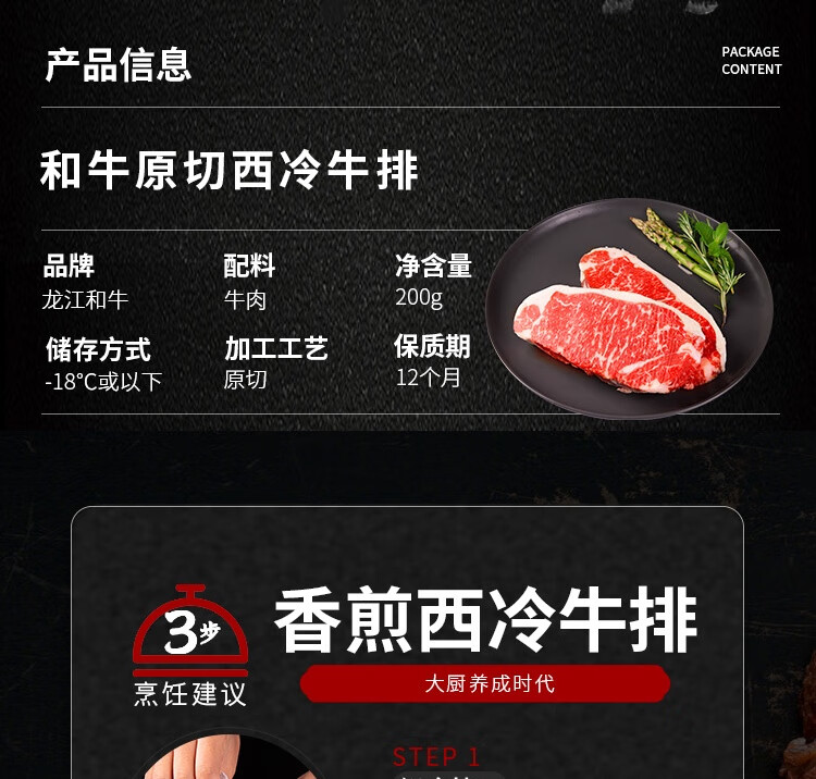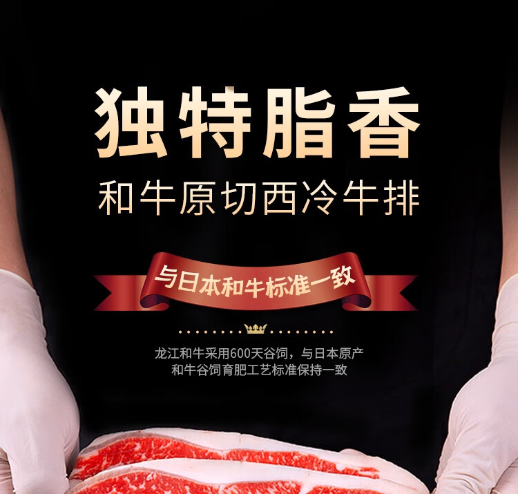 龍江和牛国产和牛(M3)原切西冷牛排200g 谷饲600天雪花牛肉生鲜【真原切】
