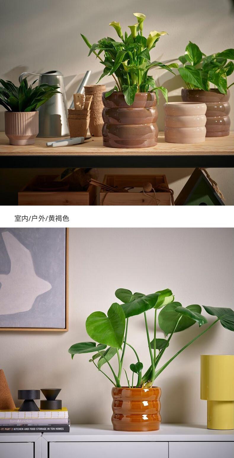 宜家(IKEA)HASSELBUKETT哈瑟布凯装饰花盆多肉盆景装饰绿萝盆 装饰用花盆黄褐色12cm