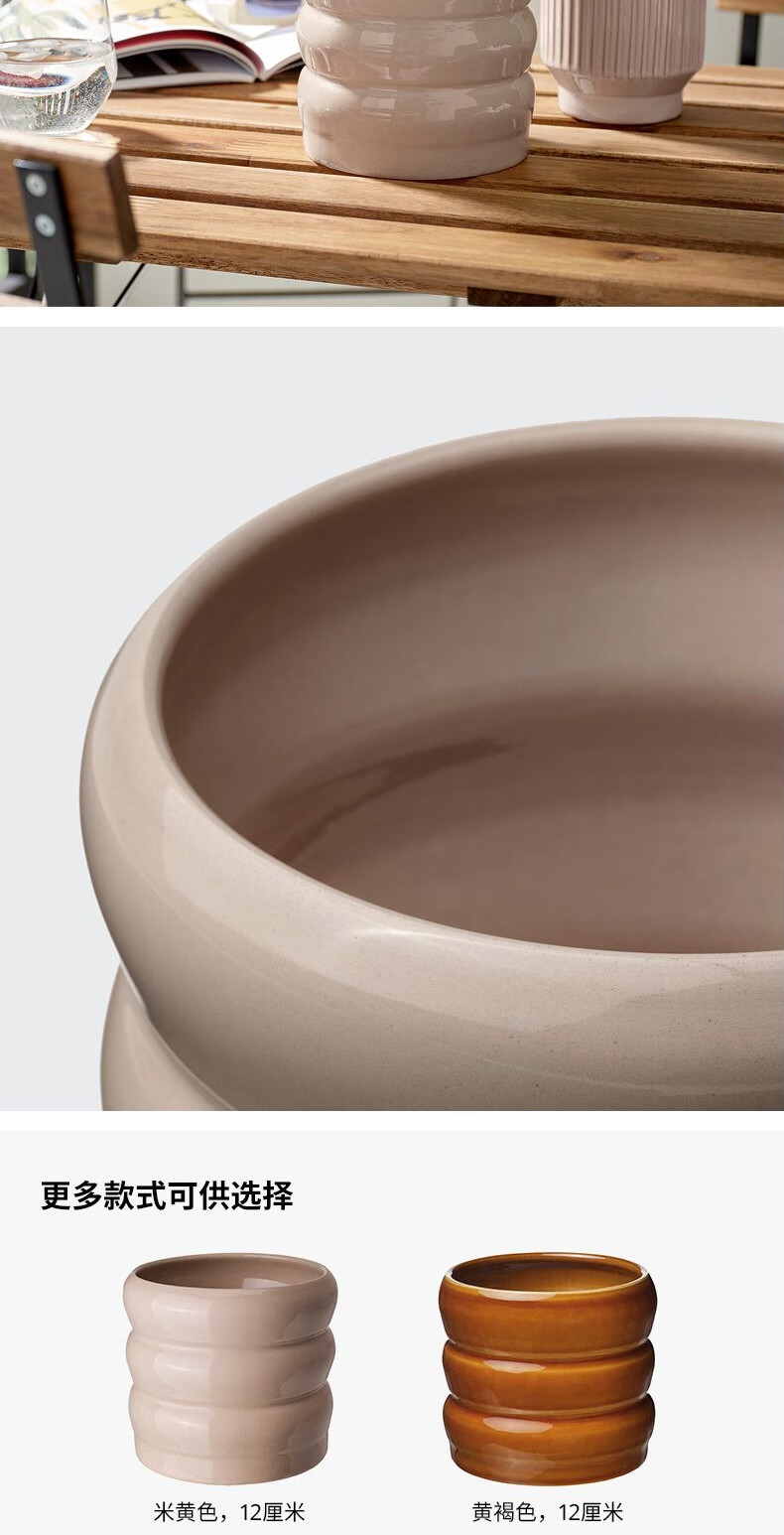 宜家(IKEA)HASSELBUKETT哈瑟布凯装饰花盆多肉盆景装饰绿萝盆 装饰用花盆米黄色12cm