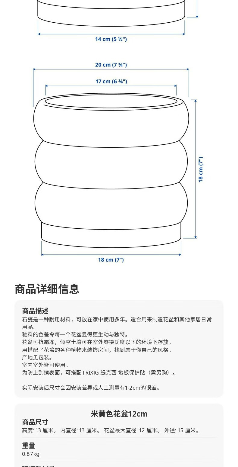 宜家(IKEA)【新品】SANDKORSBAR桑雪斯拜装饰花盆水培绿植摆件家用 装饰用花盆米黄色12cm