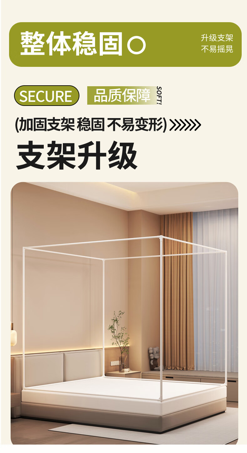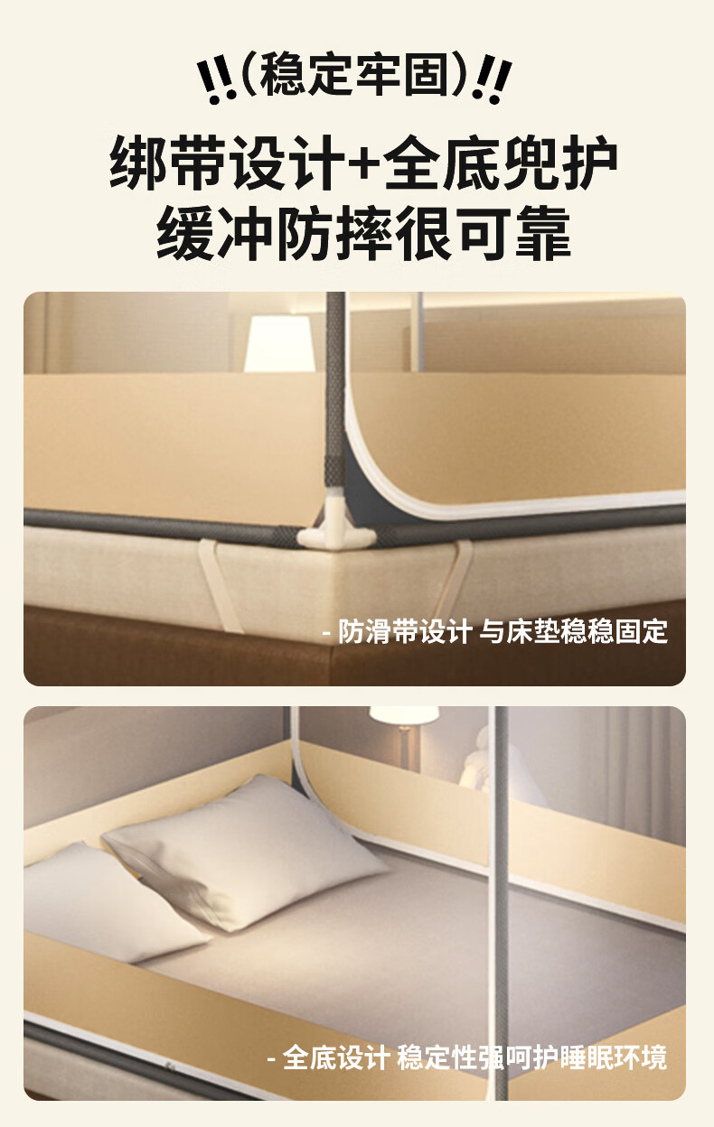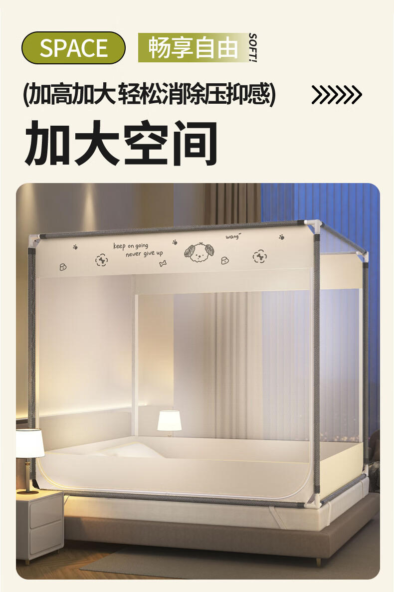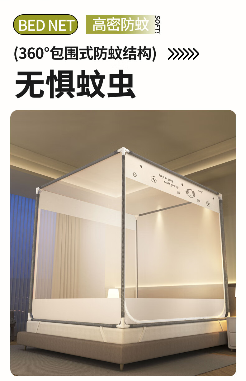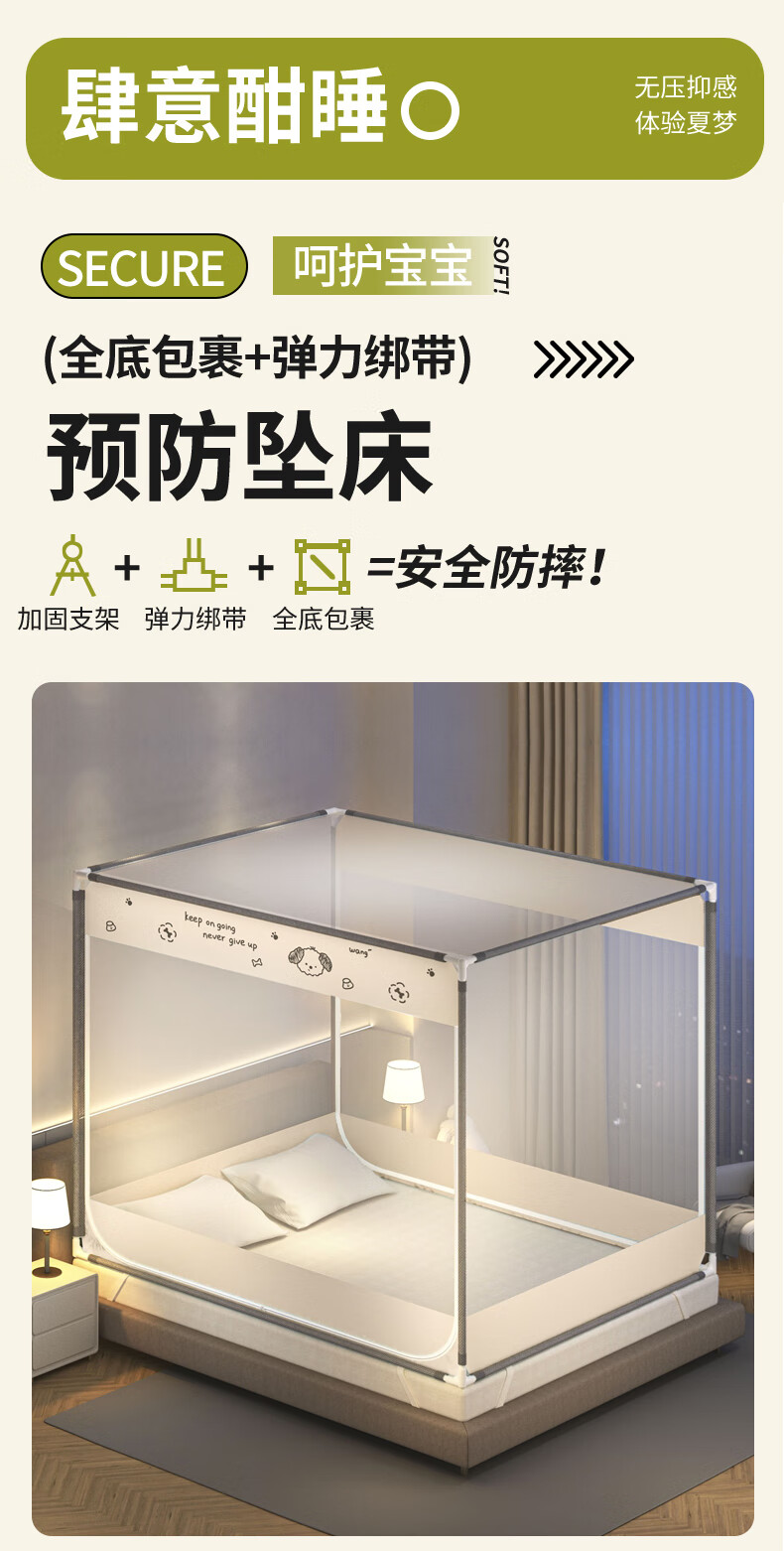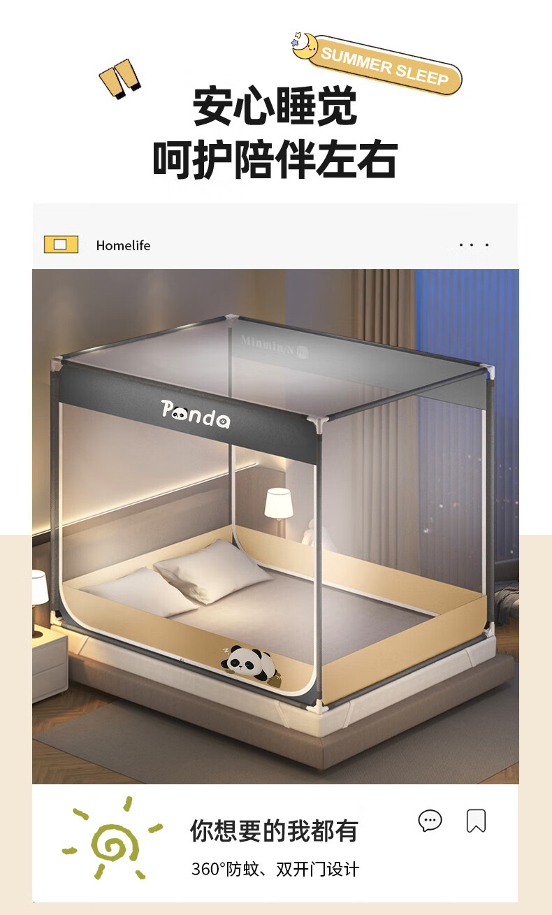 澳乐防摔蚊帐儿童婴儿床蚊帐家用一体防掉拉链式回底单双开门蚊帐 双门半底熊猫图案【1.5mx2m】