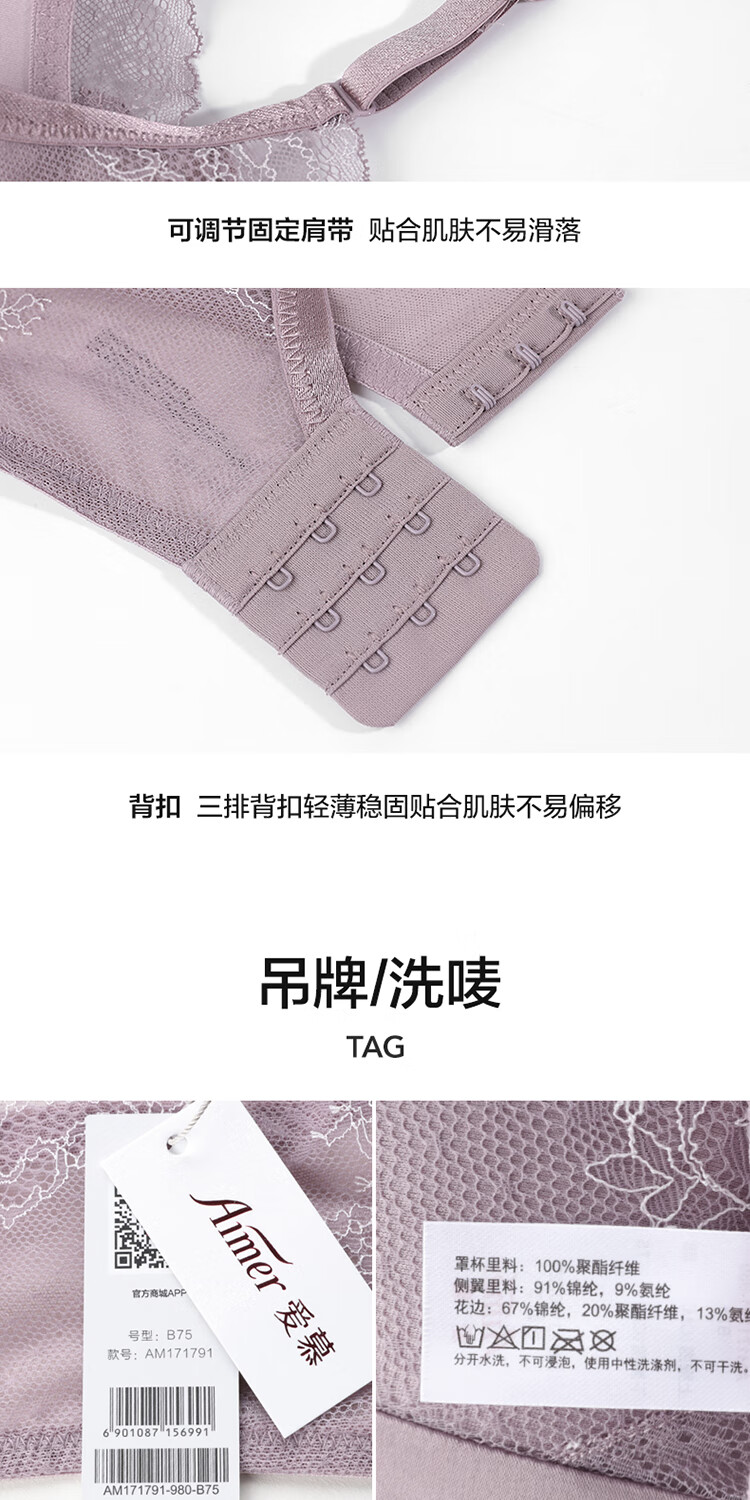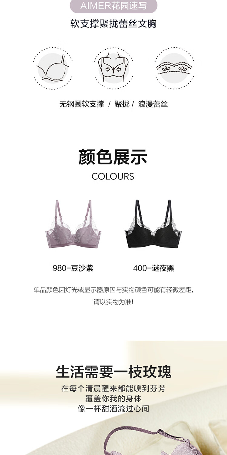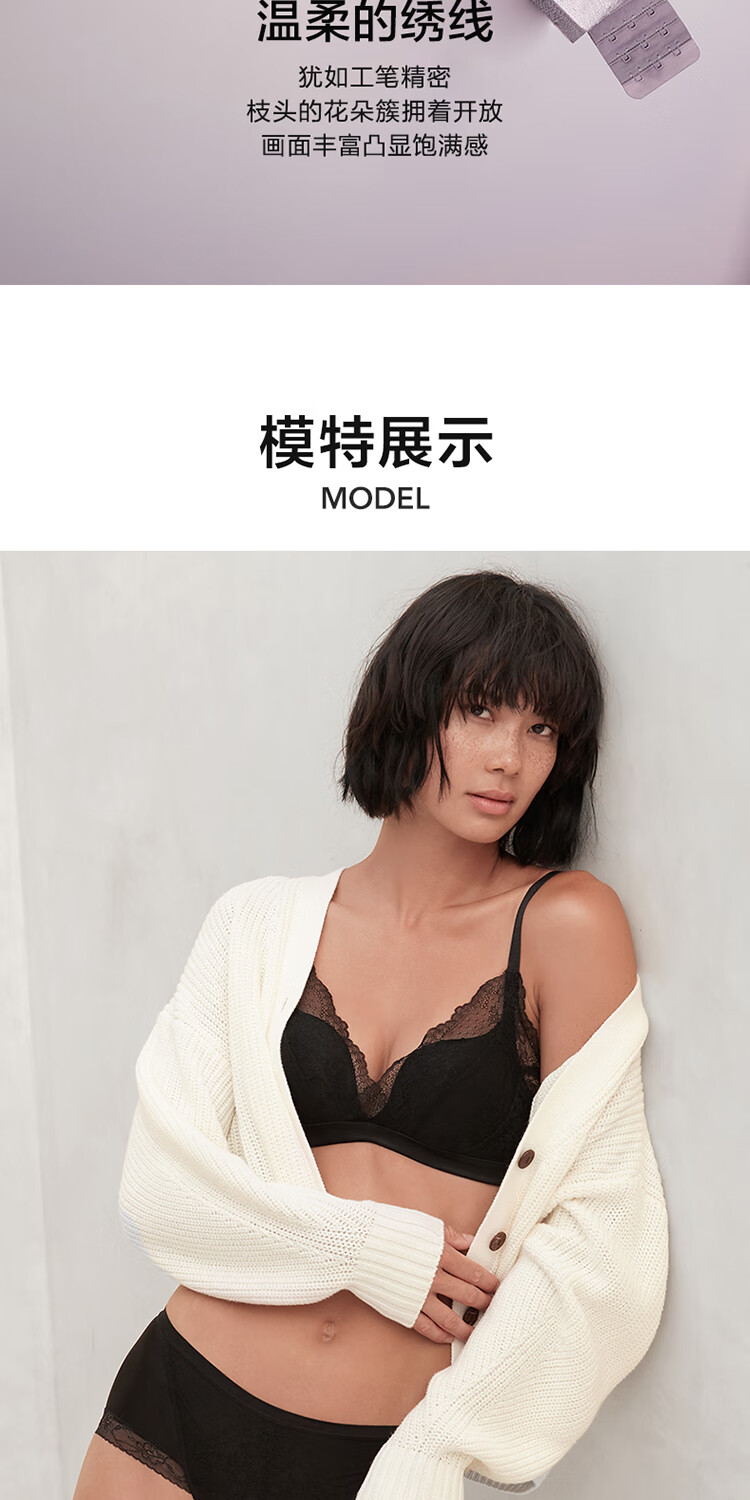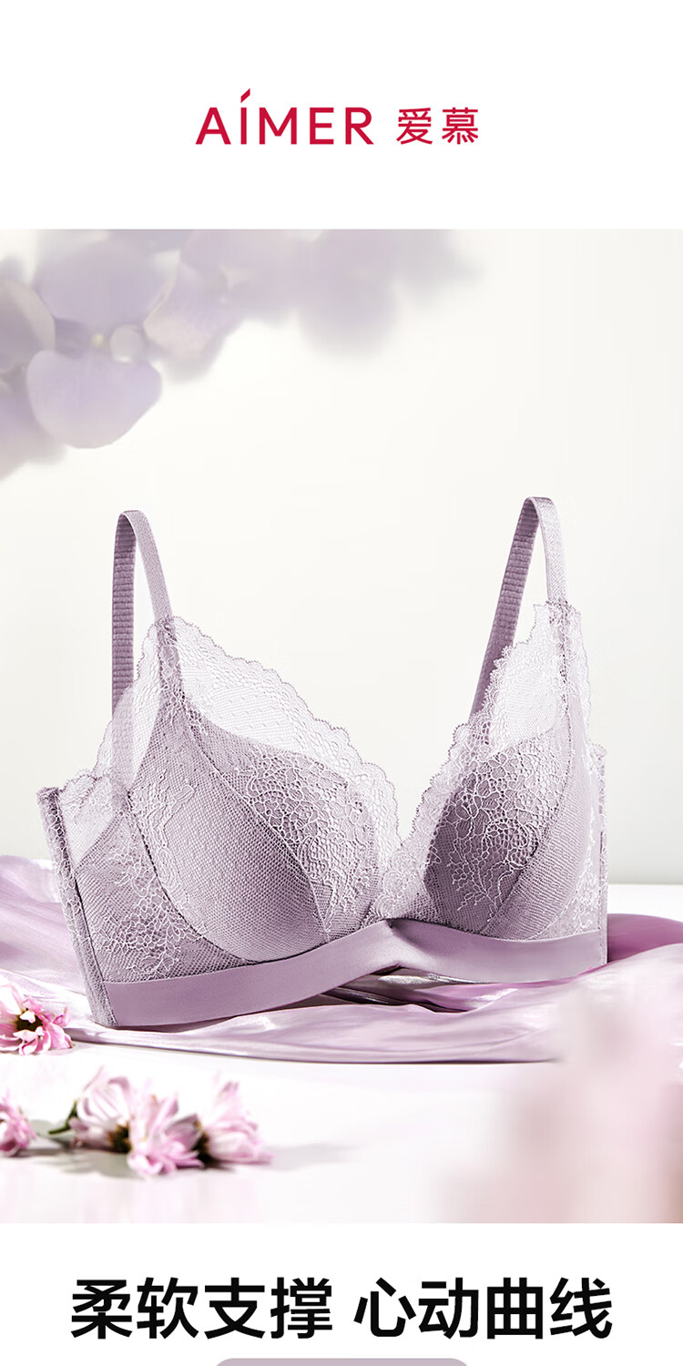 爱慕无钢圈聚拢上托侧收轻盈性感蕾丝文胸AM171791黑色B85