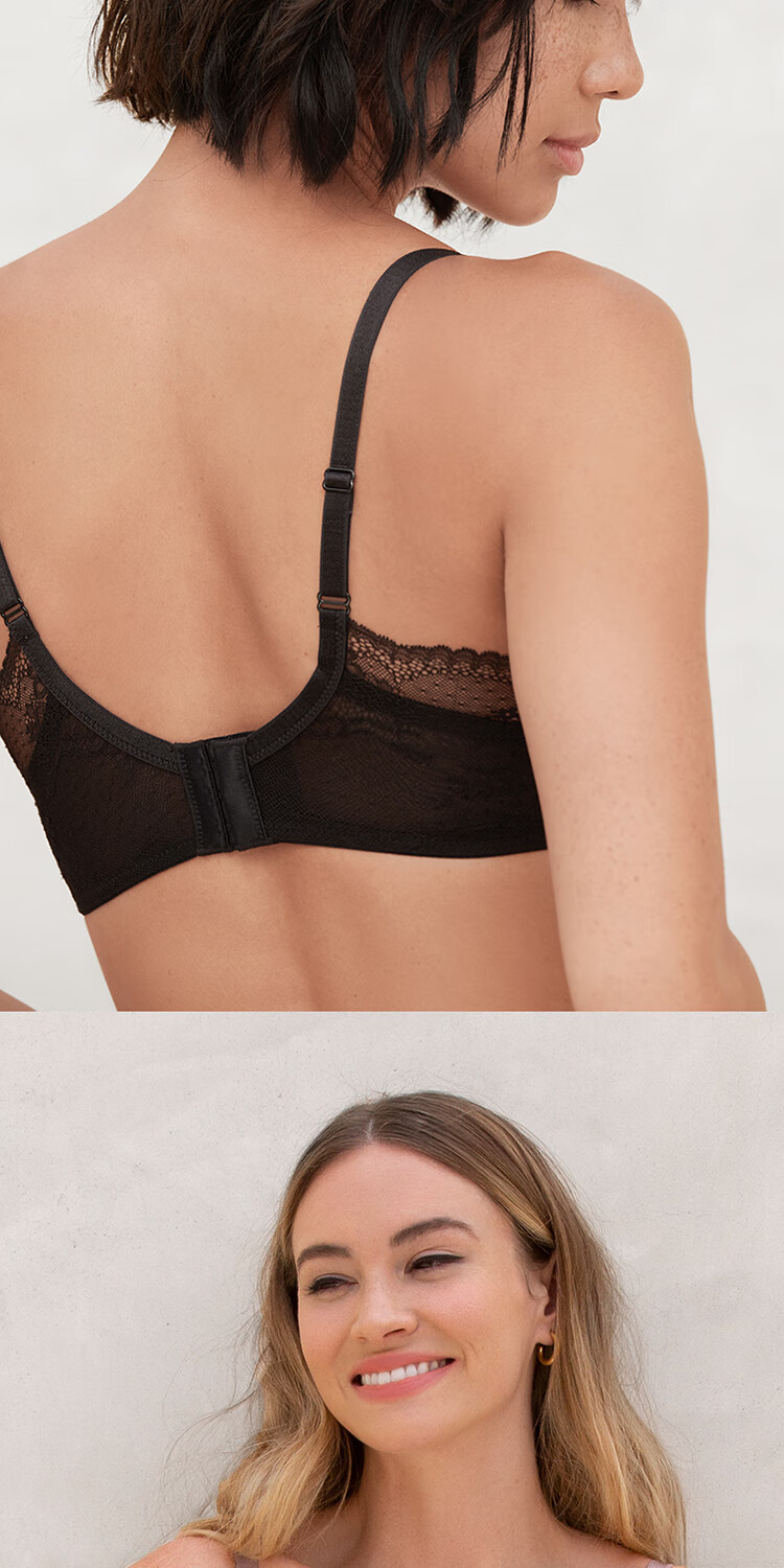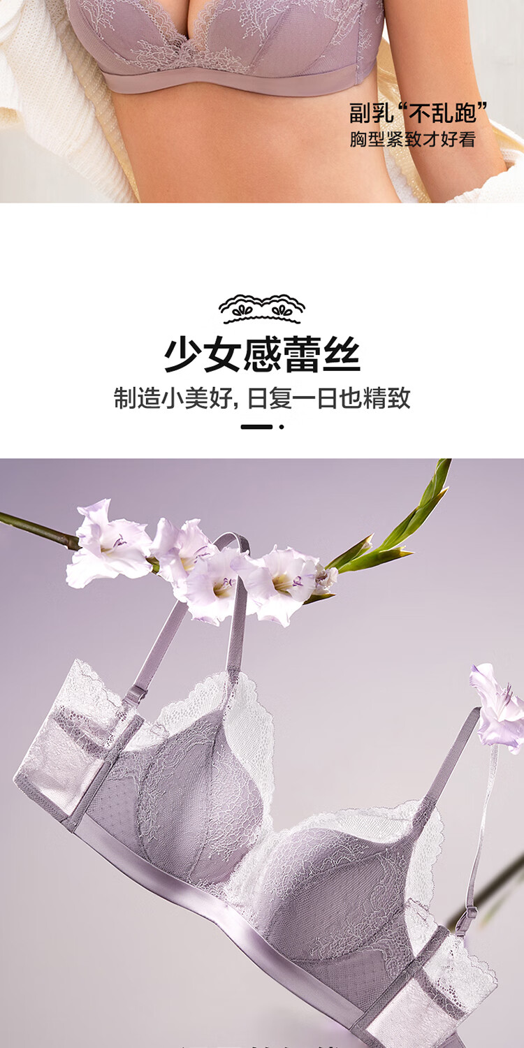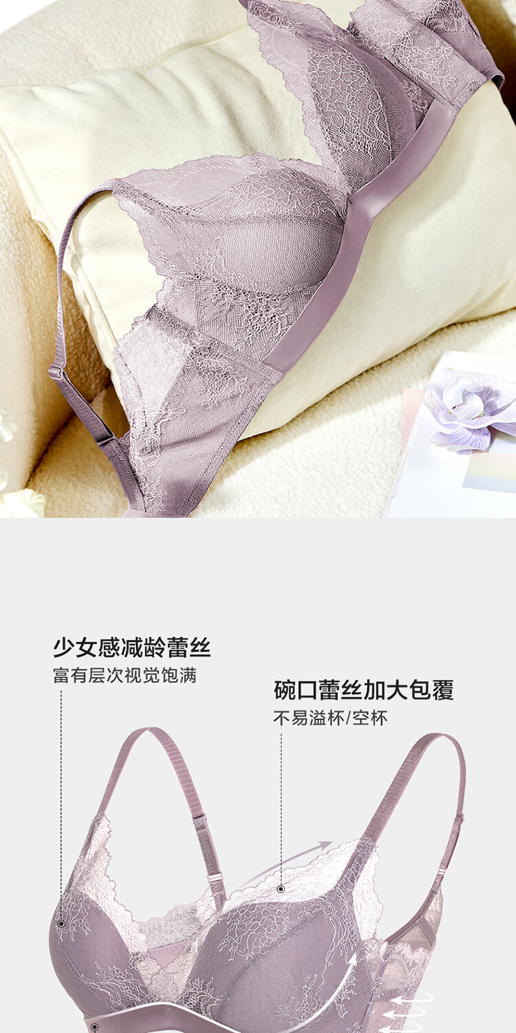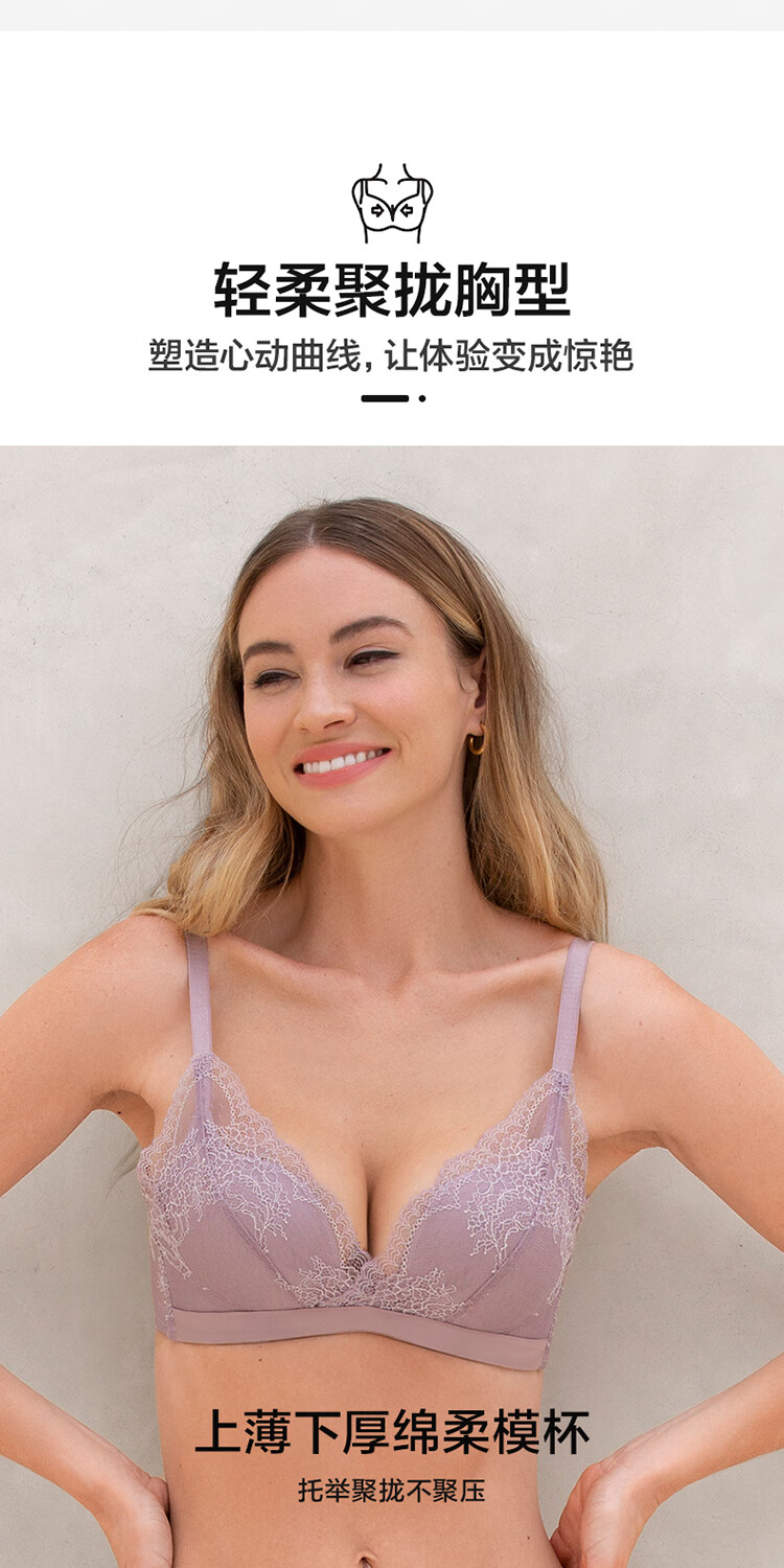 爱慕无钢圈聚拢上托侧收轻盈性感蕾丝文胸AM171791黑色B85