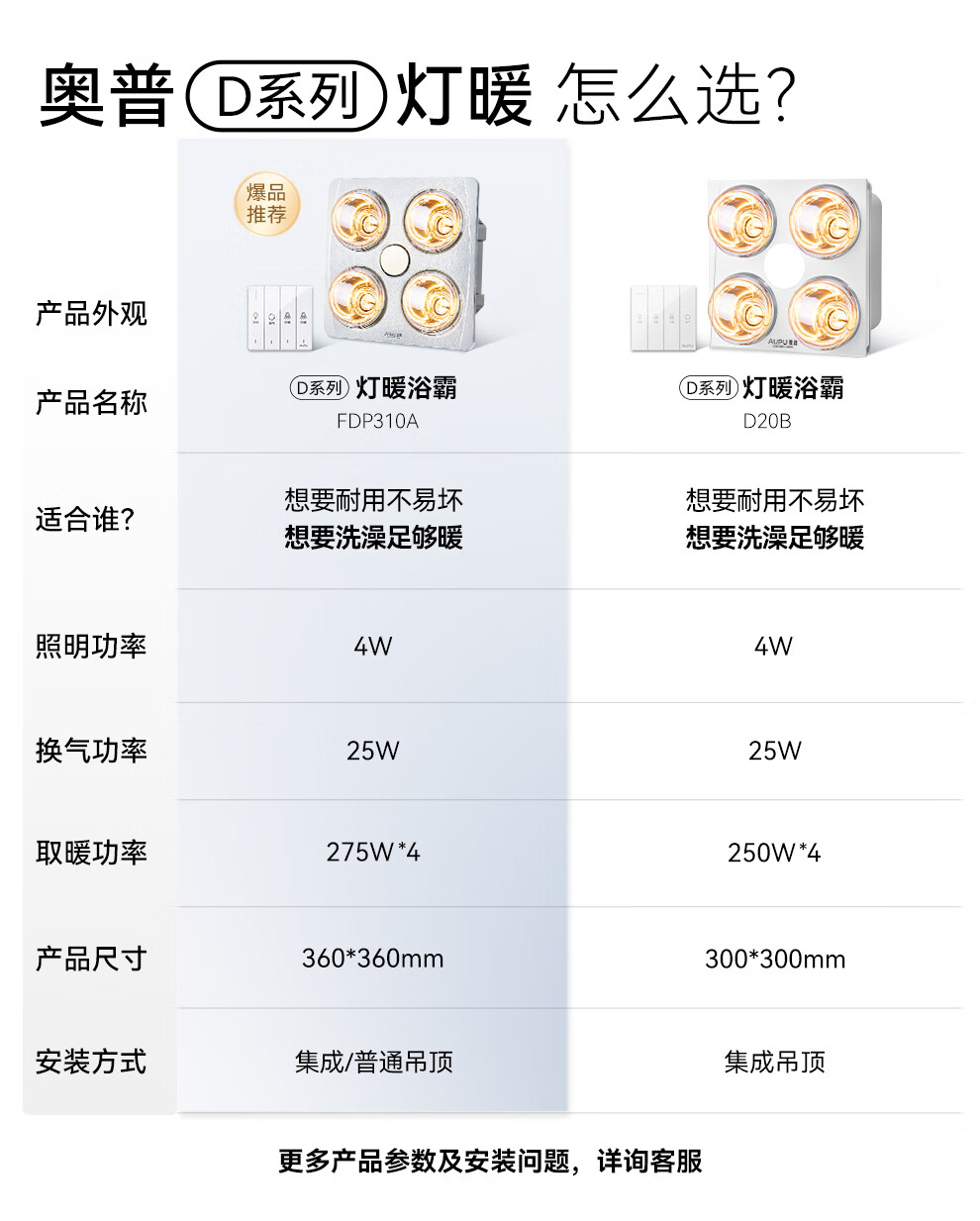 奥普【政府补贴15%】 浴霸灯暖照明一体取暖灯排气一体机310A