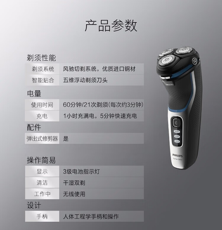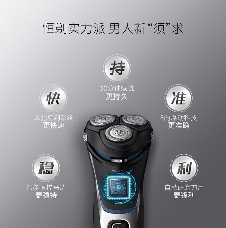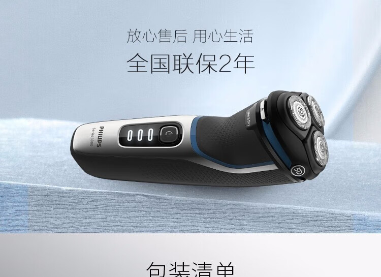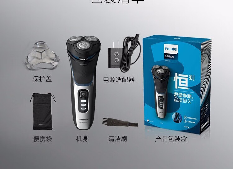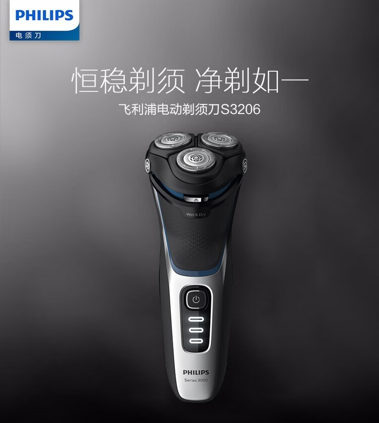 飞利浦(PHILIPS)剃须刀电动刮胡刀电动剃须刀全新3系全身水洗剃胡刀干湿双剃胡须刀生日礼物 【全新高端3系款】S3608