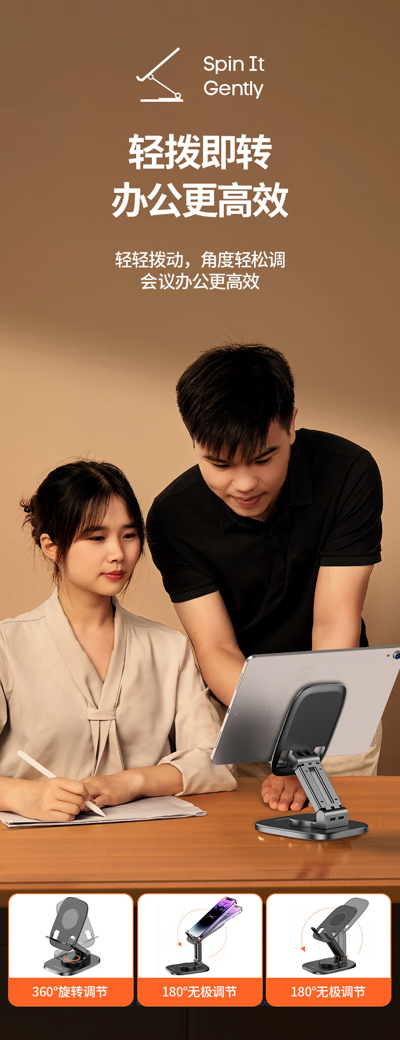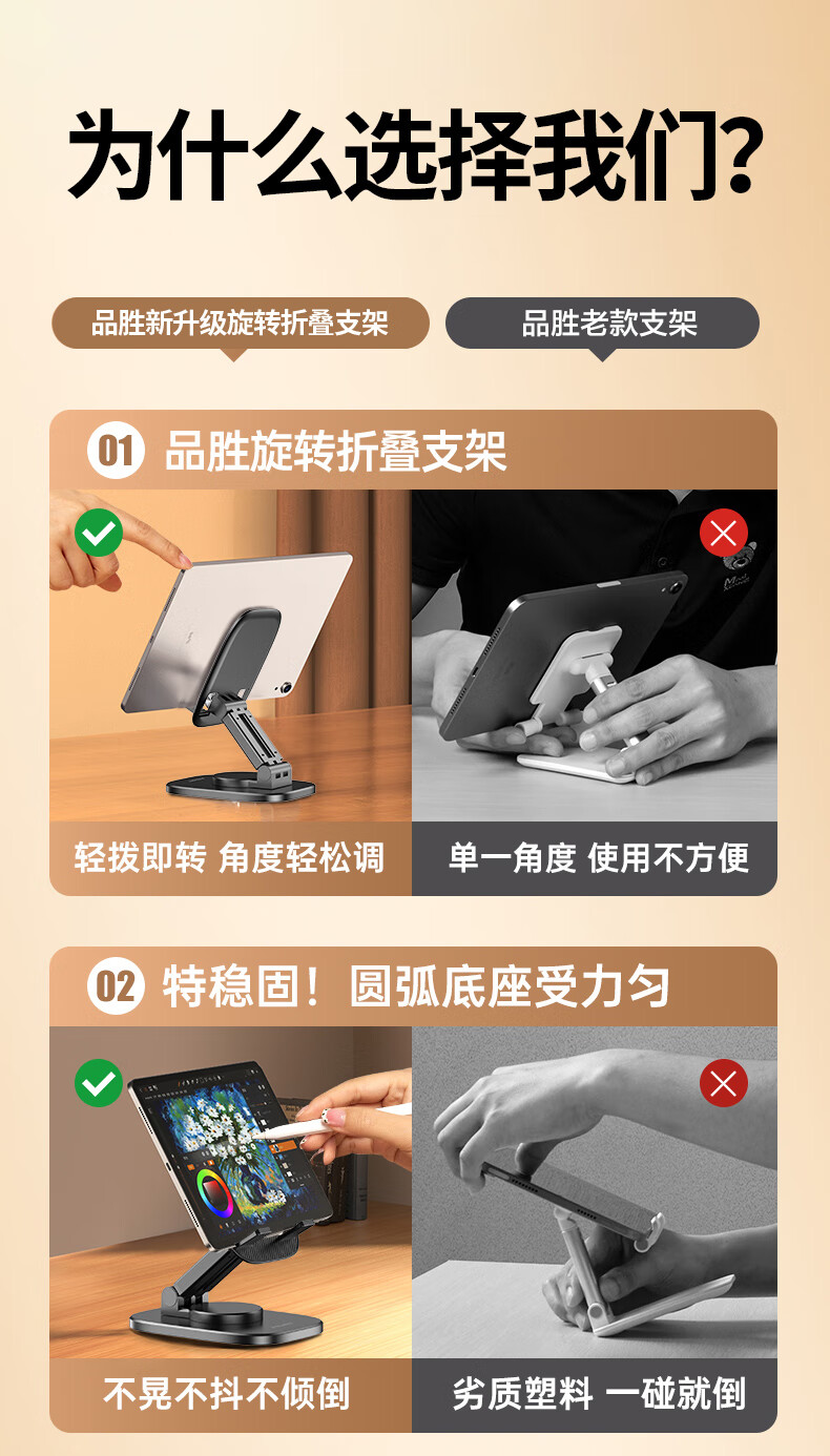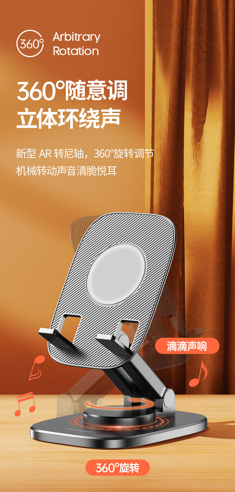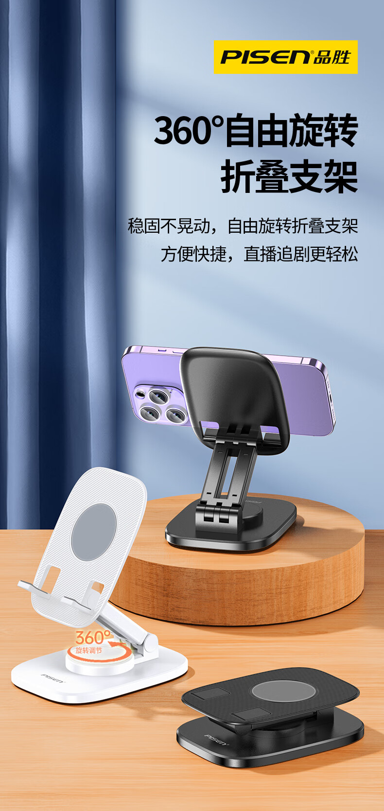 品胜 手机支架桌面 直播网课便携可折叠旋转 床头懒人支架 刷剧看视频手机平板通用支撑架 黑色