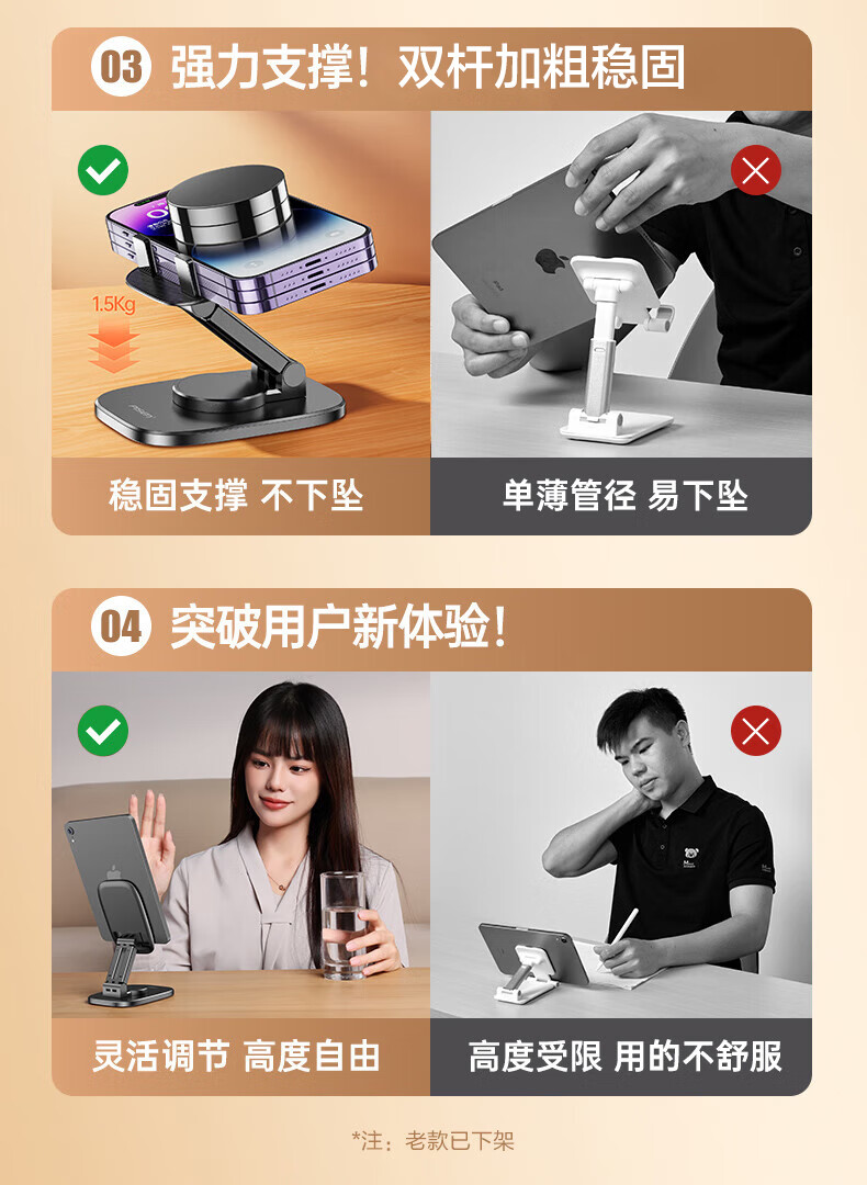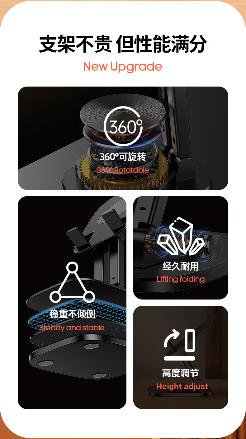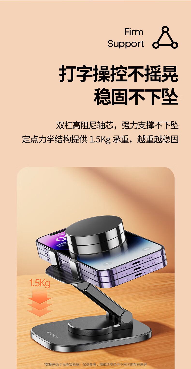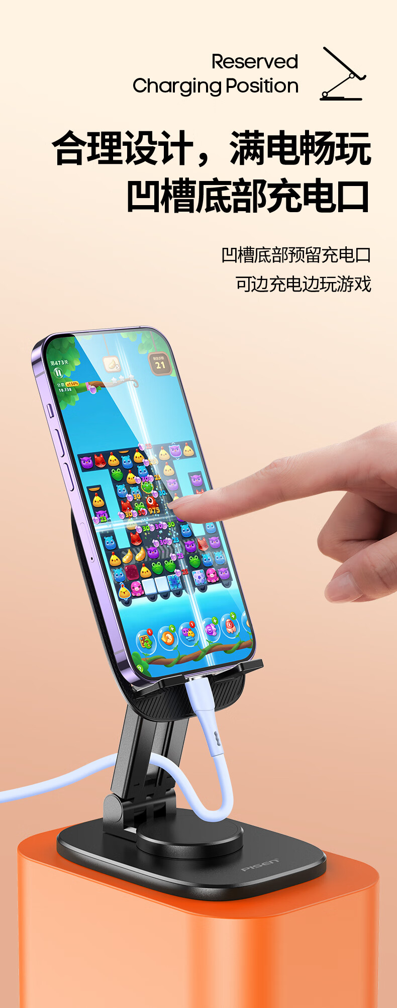 品胜 手机支架桌面 直播网课便携可折叠旋转 床头懒人支架 刷剧看视频手机平板通用支撑架 黑色
