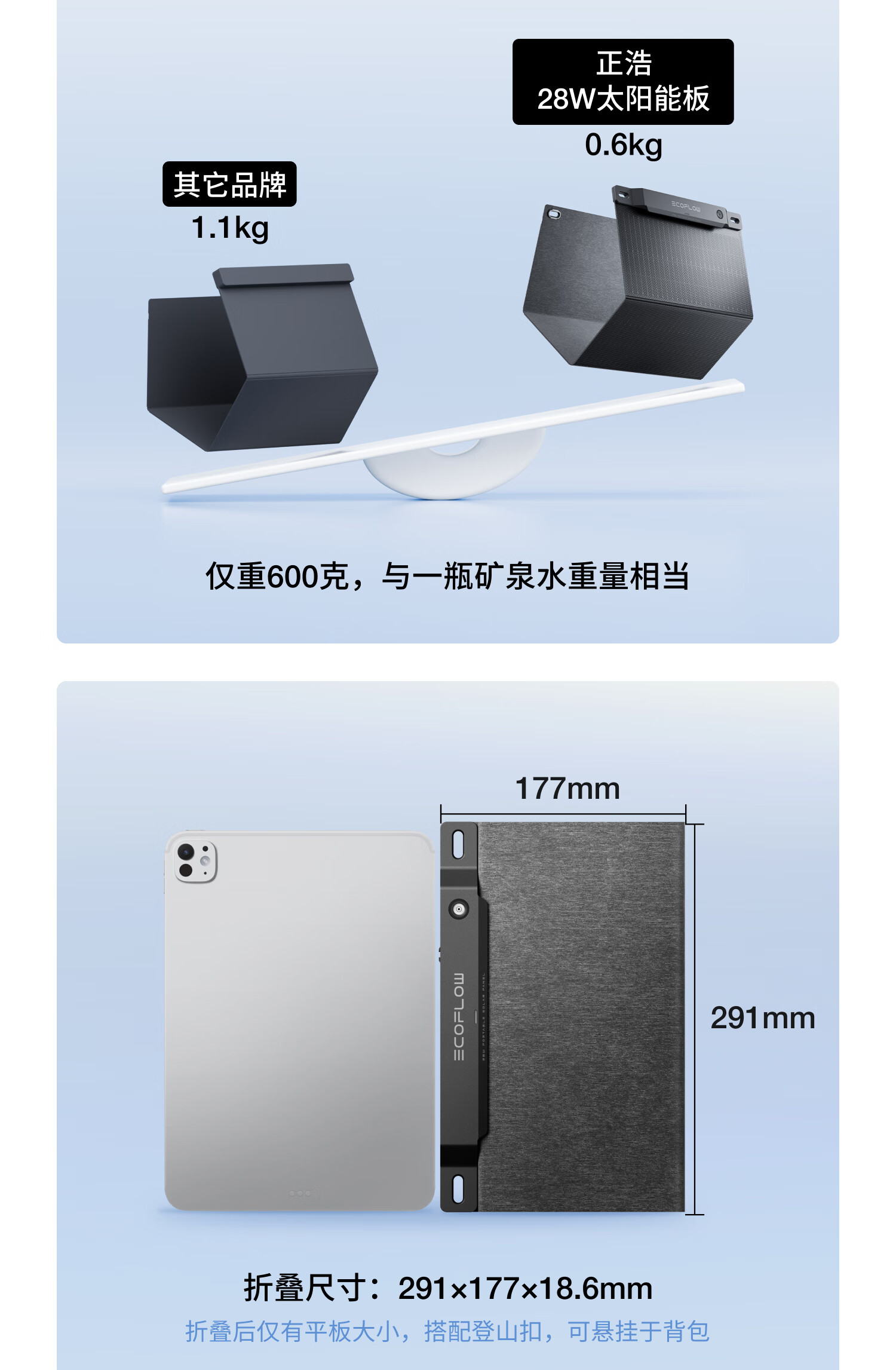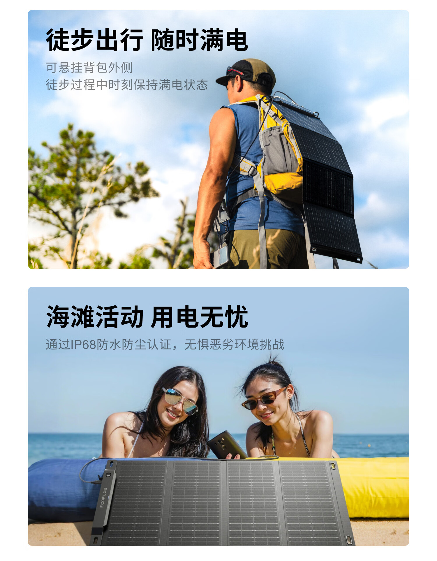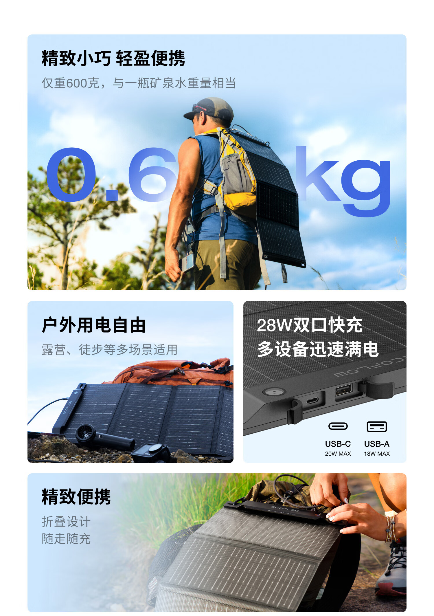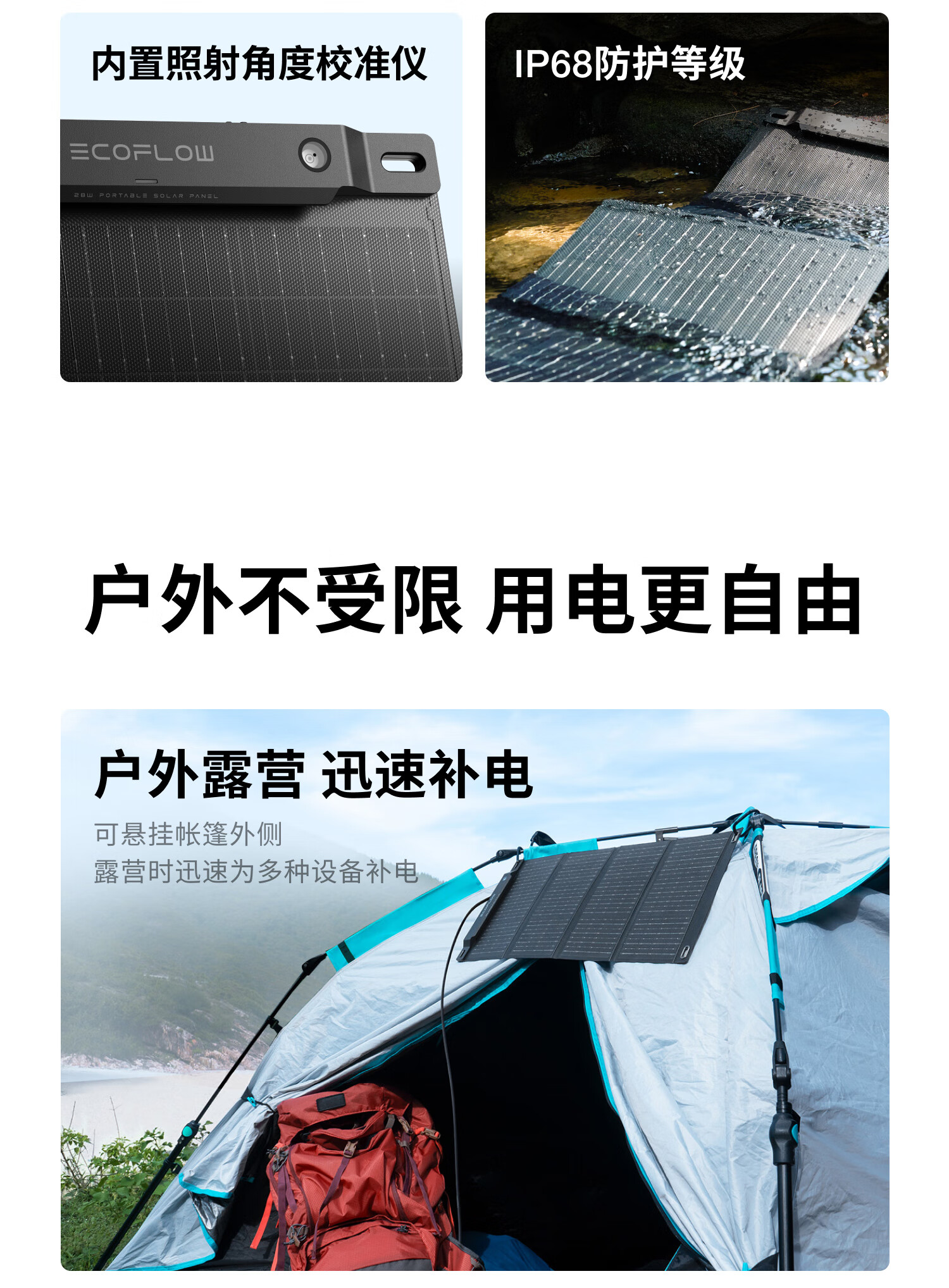 ECOFLOW正浩太阳能电池板45W光伏发电板家用户外露营折叠便携充电
