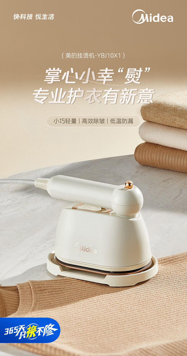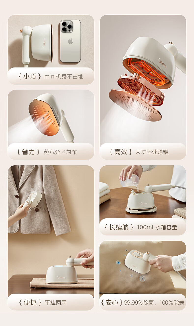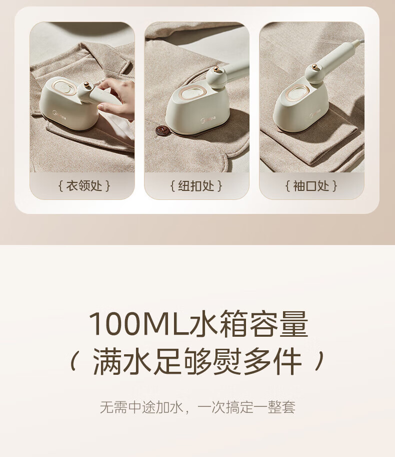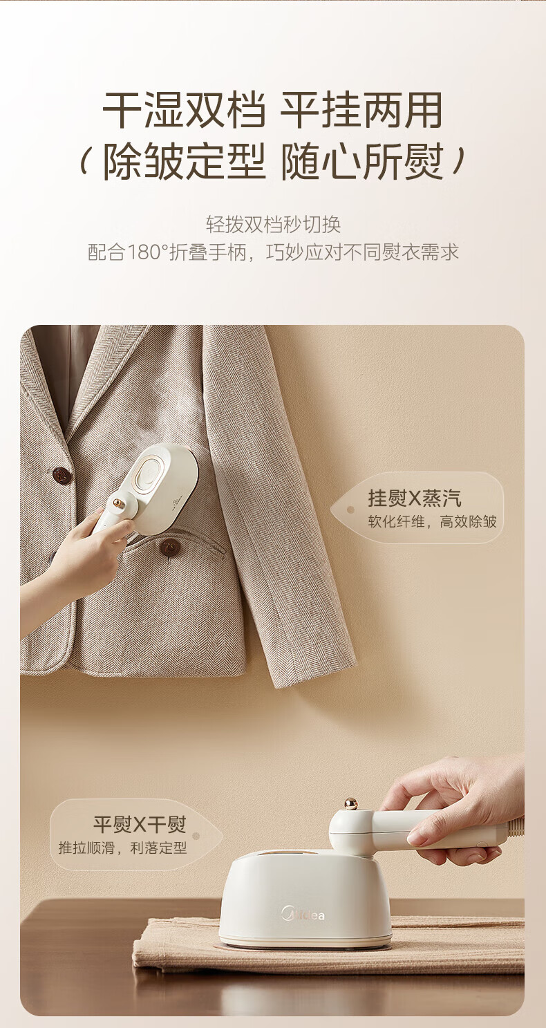 美的(Midea)手持挂烫机家用电熨斗熨烫机大蒸汽电熨斗便携式小型熨烫机 【新品可折叠】10X1