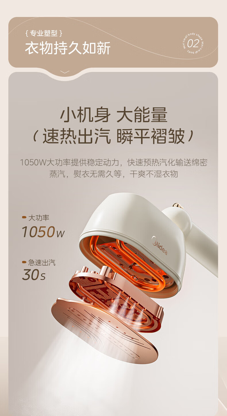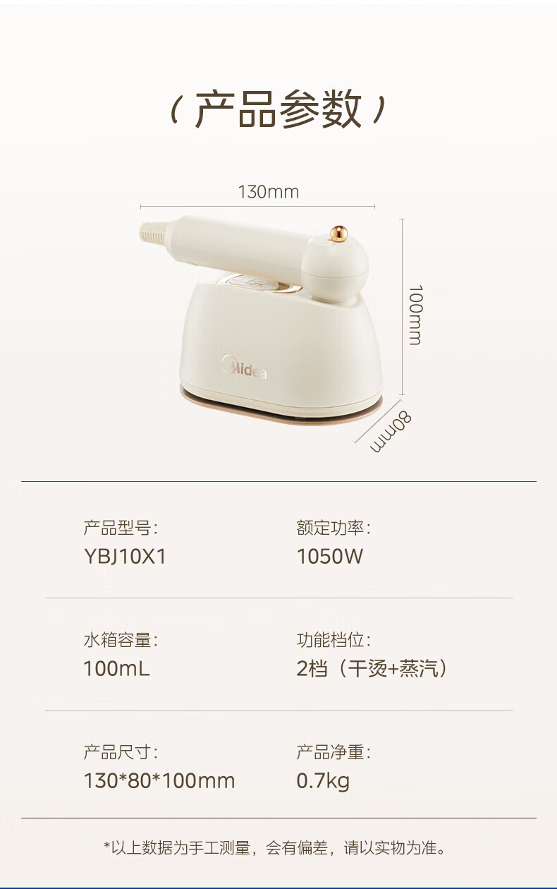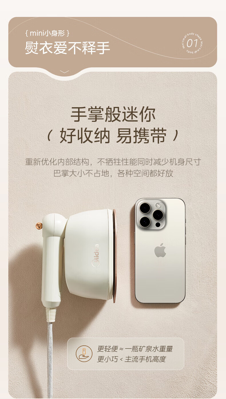 美的(Midea)手持挂烫机家用电熨斗熨烫机大蒸汽电熨斗便携式小型熨烫机 【新品可折叠】10X1