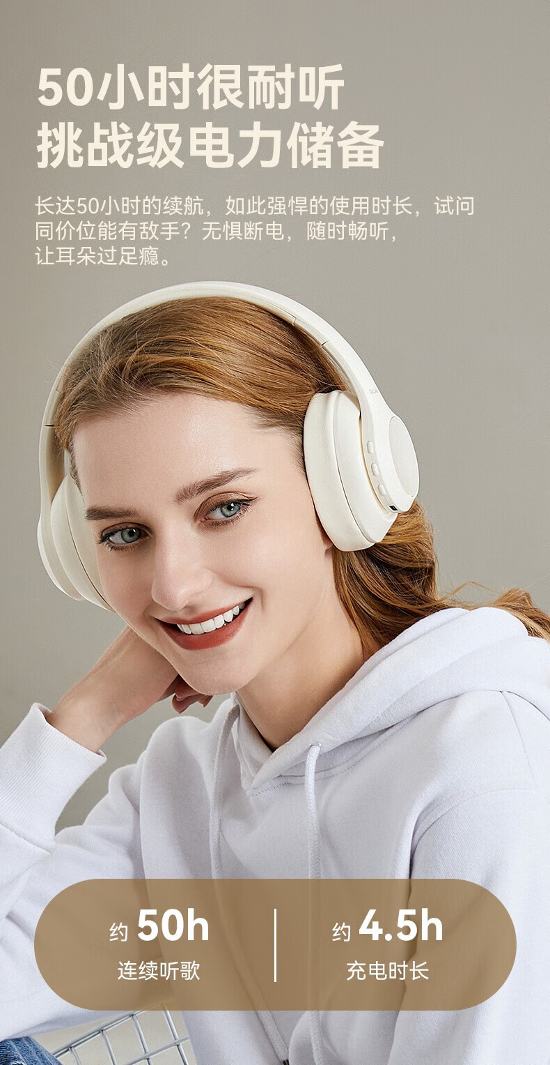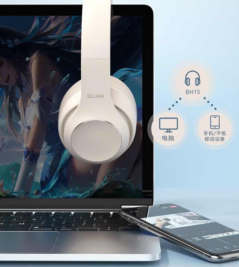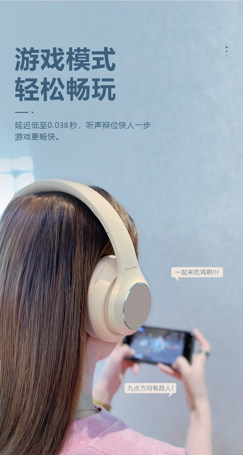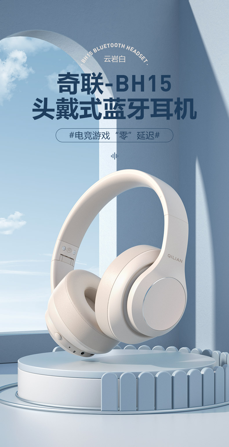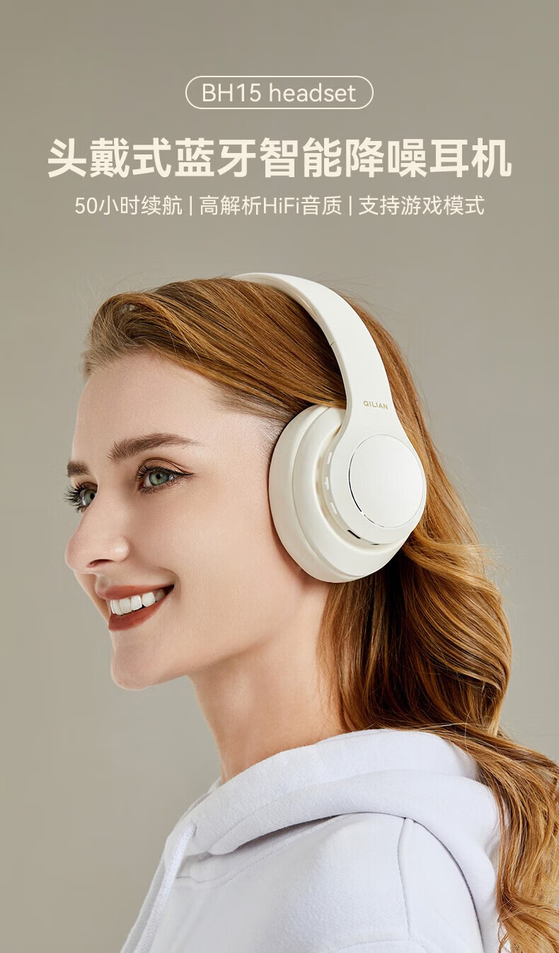 奇联BH15头戴式蓝牙耳机学生超长续航无线挂脖耳麦电竞游戏运动音乐降噪PC有线高颜值男生女生节日礼物 云岩白 游戏音乐双模式+50H续航