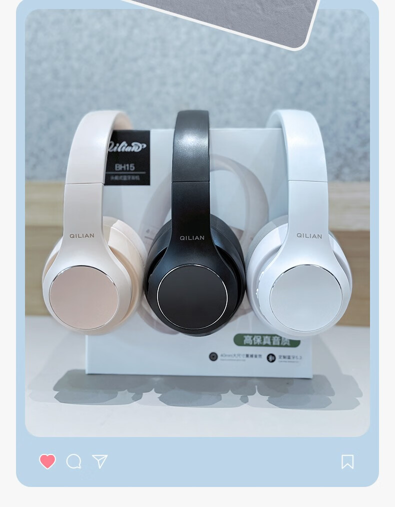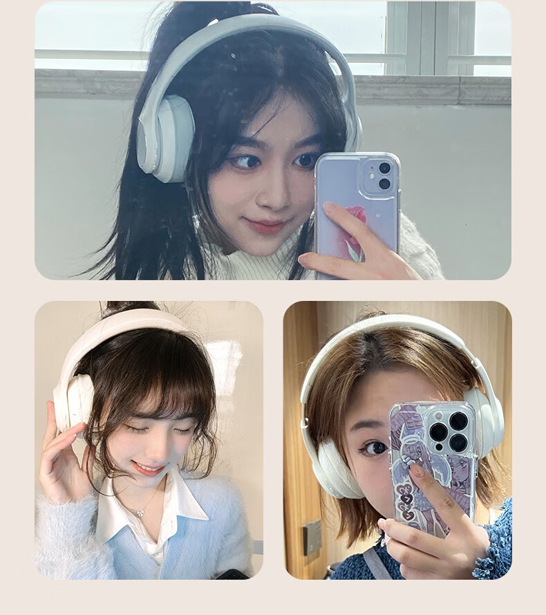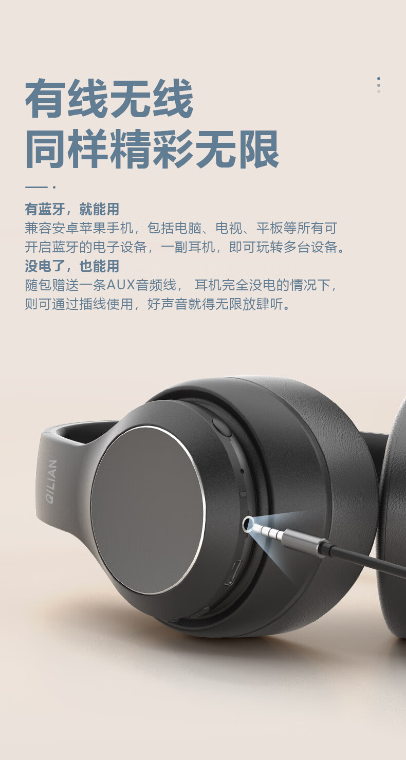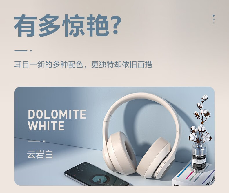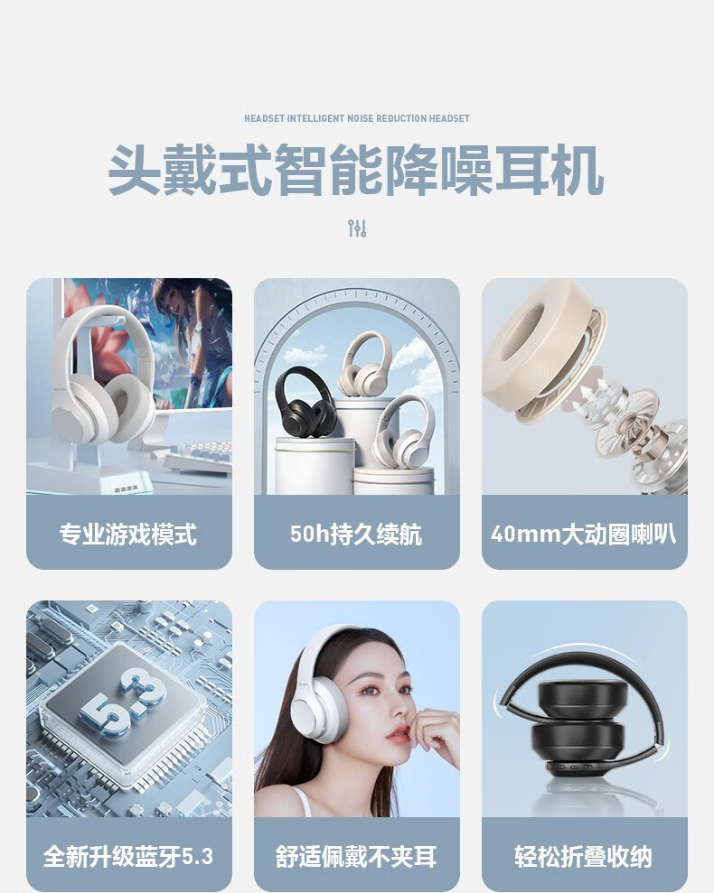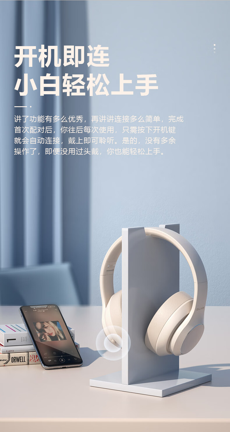 奇联BH15头戴式蓝牙耳机学生超长续航无线挂脖耳麦电竞游戏运动音乐降噪PC有线高颜值男生女生节日礼物 云岩白 游戏音乐双模式+50H续航