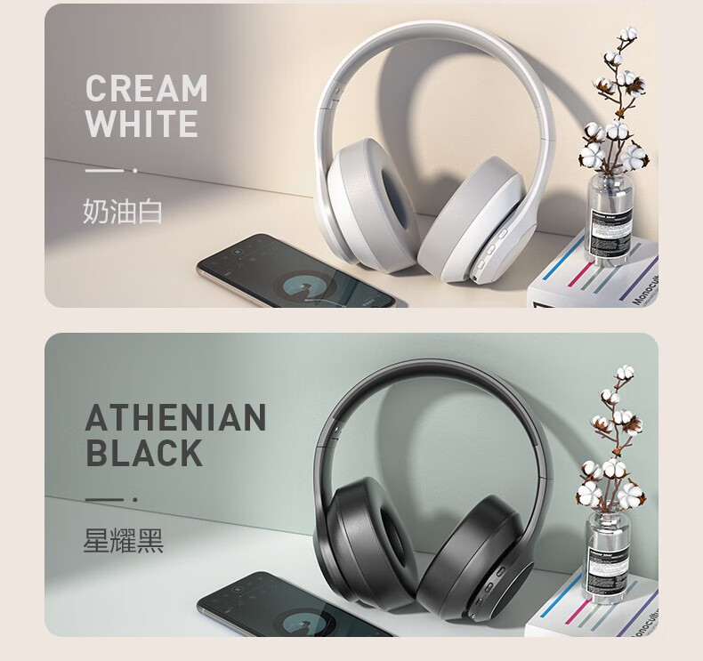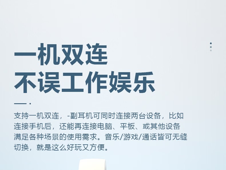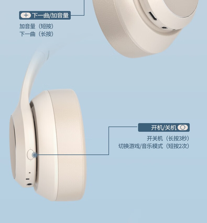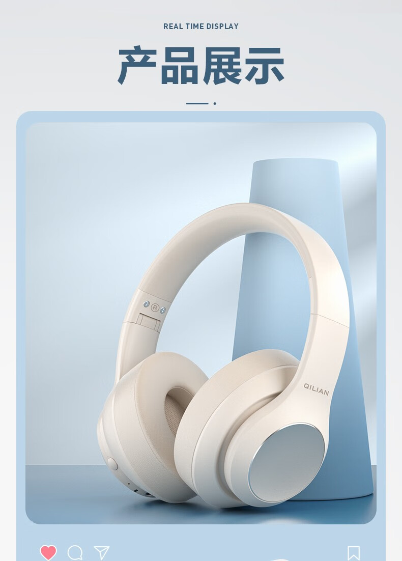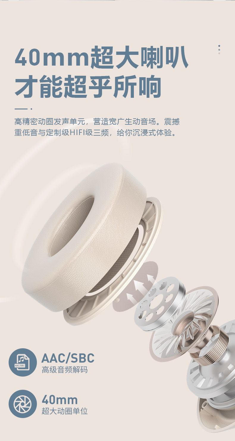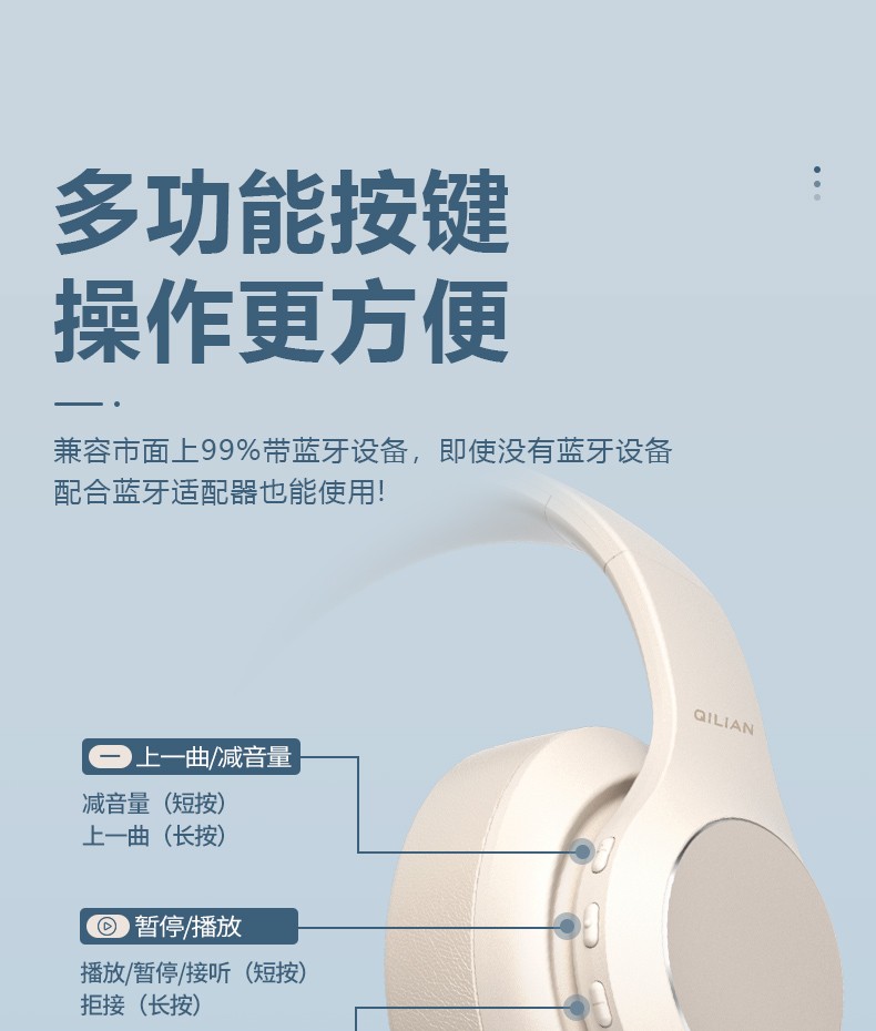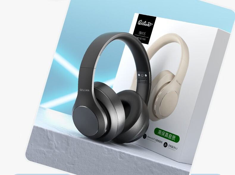 奇联BH15头戴式蓝牙耳机学生超长续航无线挂脖耳麦电竞游戏运动音乐降噪PC有线高颜值男生女生节日礼物 云岩白 游戏音乐双模式+50H续航