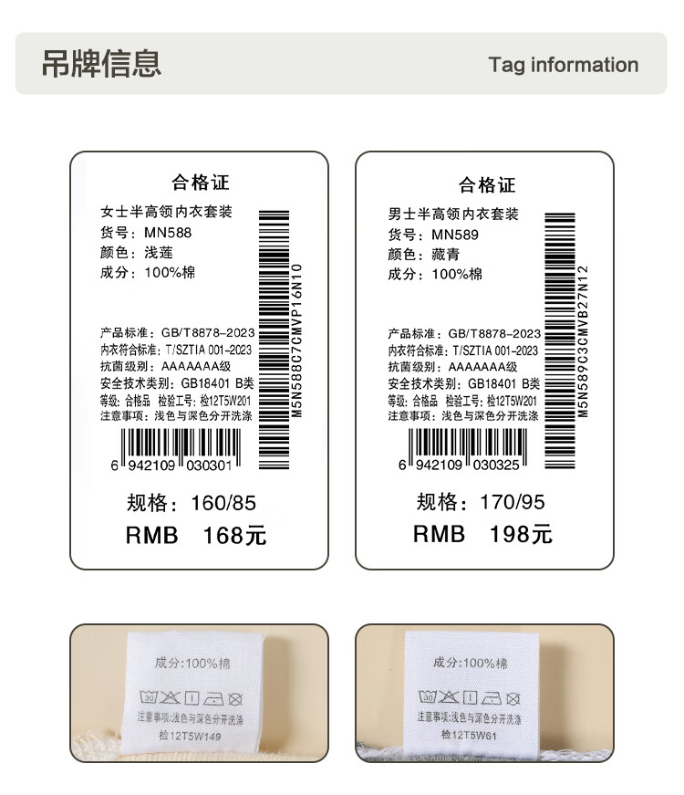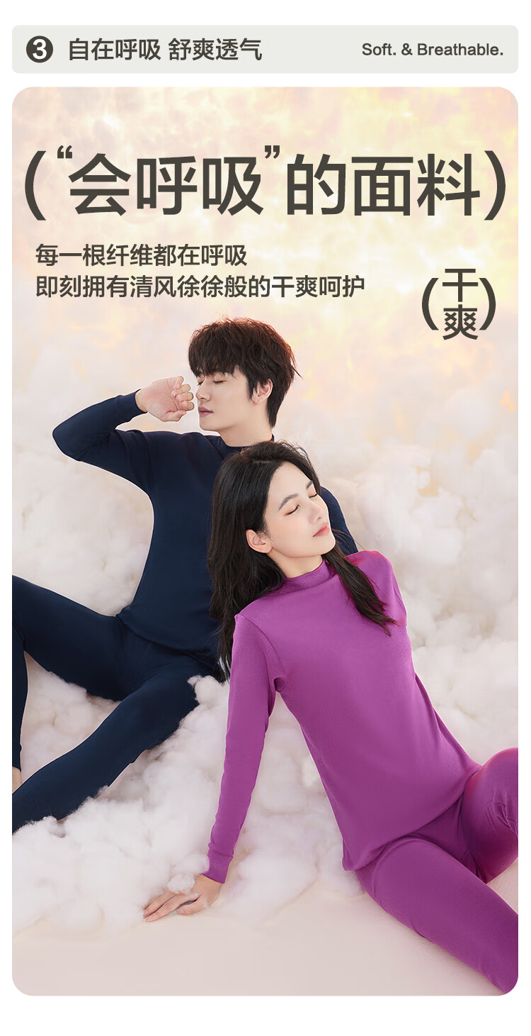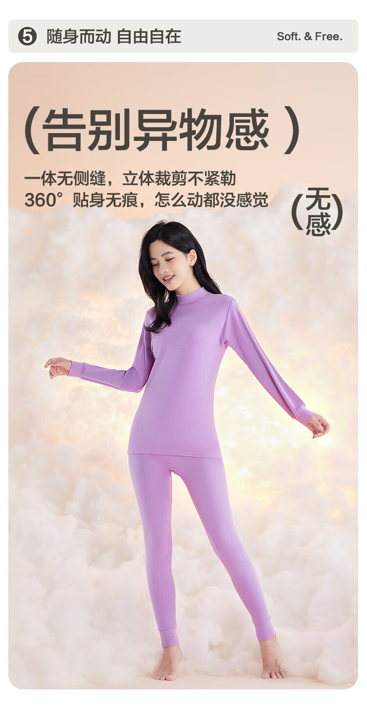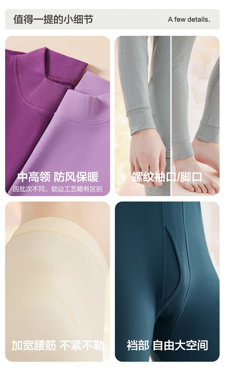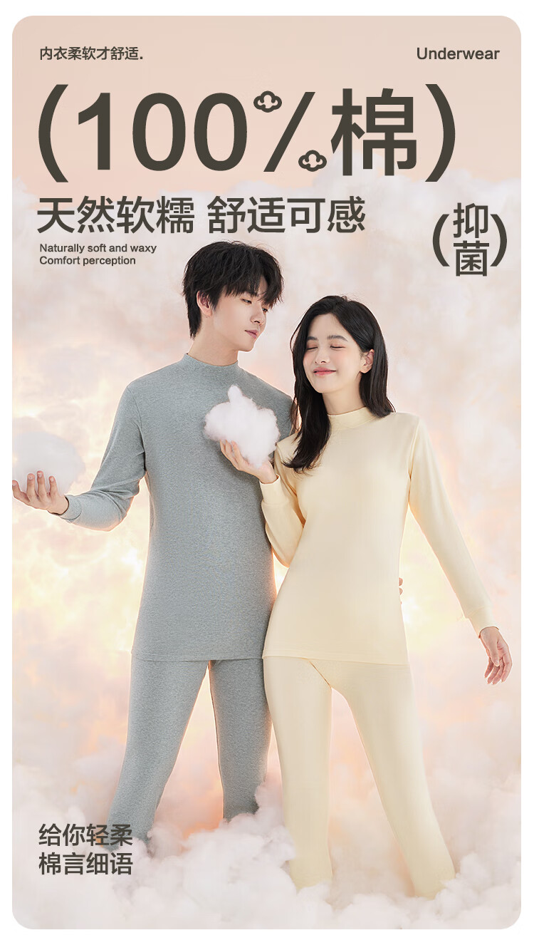 红豆内衣女7A抑菌升级秋衣秋裤纯棉套装半高领薄款打底保暖内衣