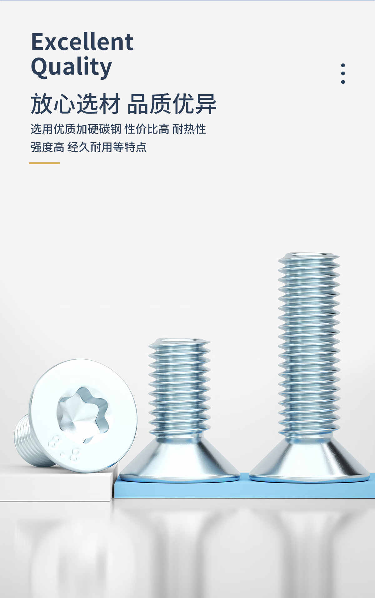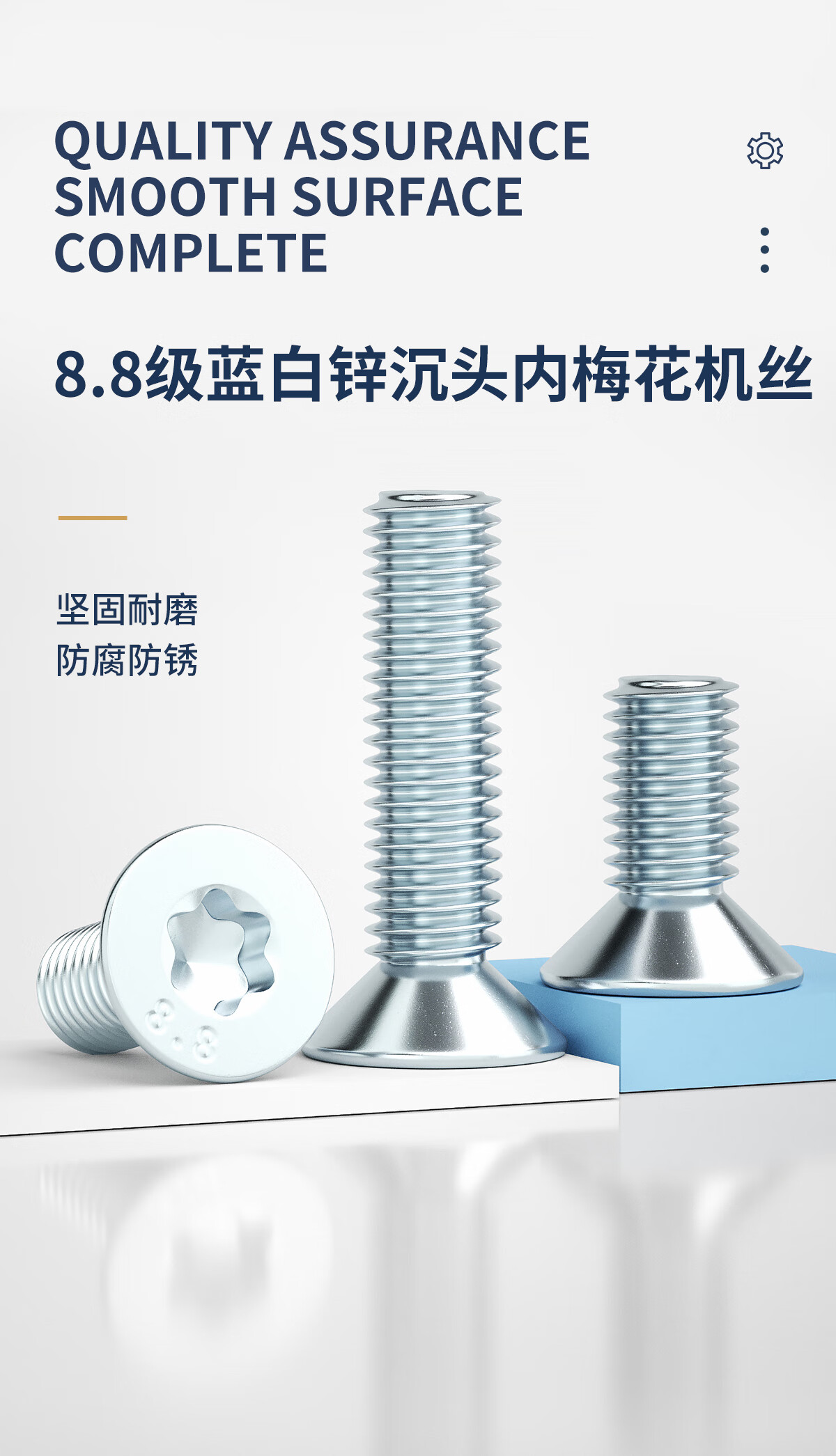 固万基(GUWANJI)8.8级镀锌沉头内六角梅花螺丝钉GB2673平头梅花防盗螺栓M3M4M5-M8 M5x14(100只)