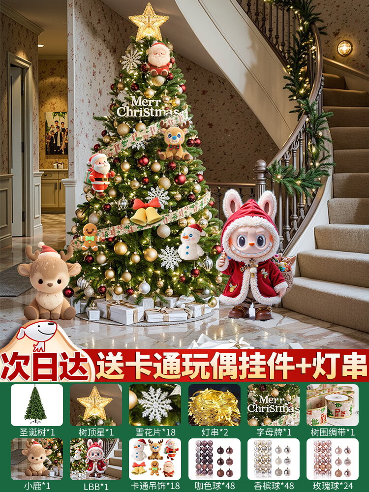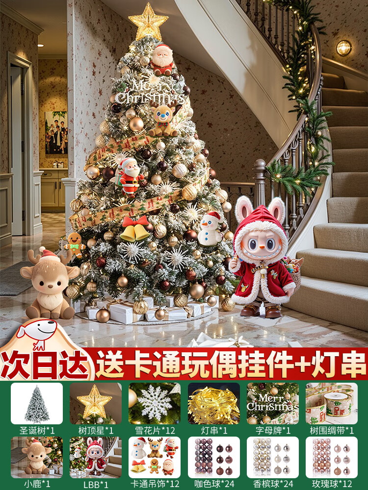 商场店铺家用圣诞树装饰客厅落雪圣诞节日氛围布置儿童套餐全套 次日达/2.1米圣诞树装饰全套