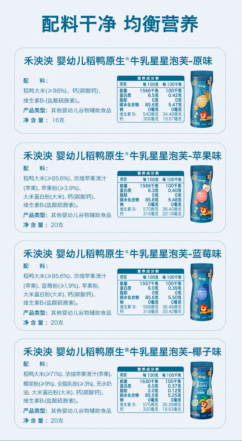 禾泱泱婴幼儿稻芽原生星星泡芙 宝宝零食低敏6个月以上宝宝辅食 星星泡芙-椰子味20g