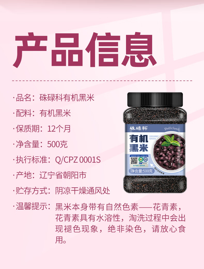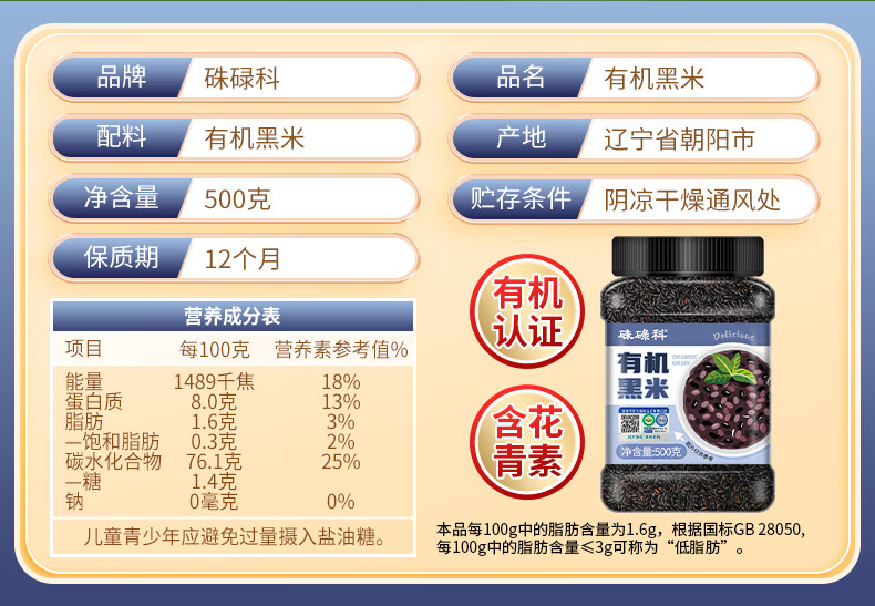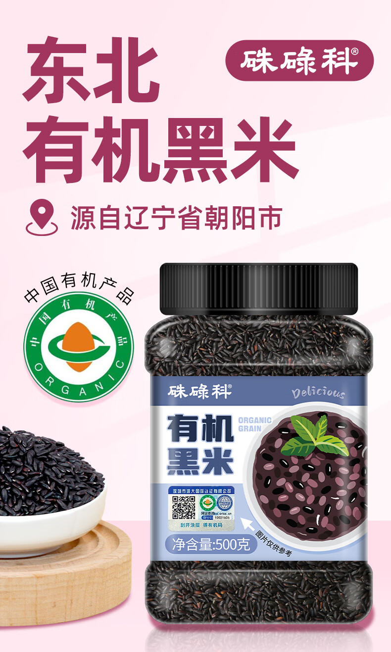 硃碌科 有机黑米1斤罐装 东北长粒黑米无染色米饭伴侣 低脂粗粮