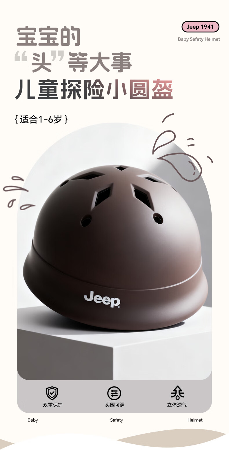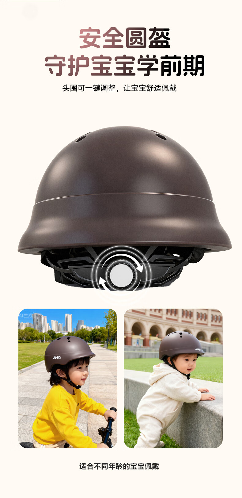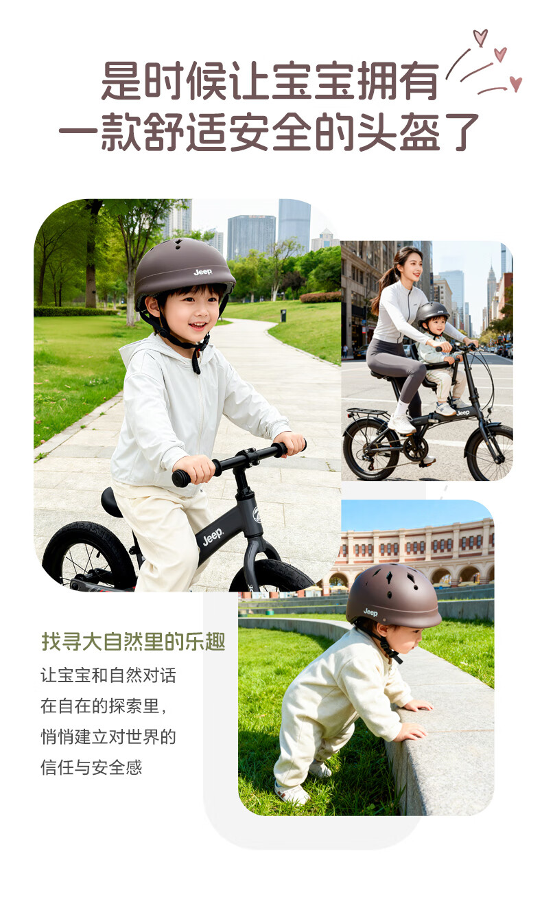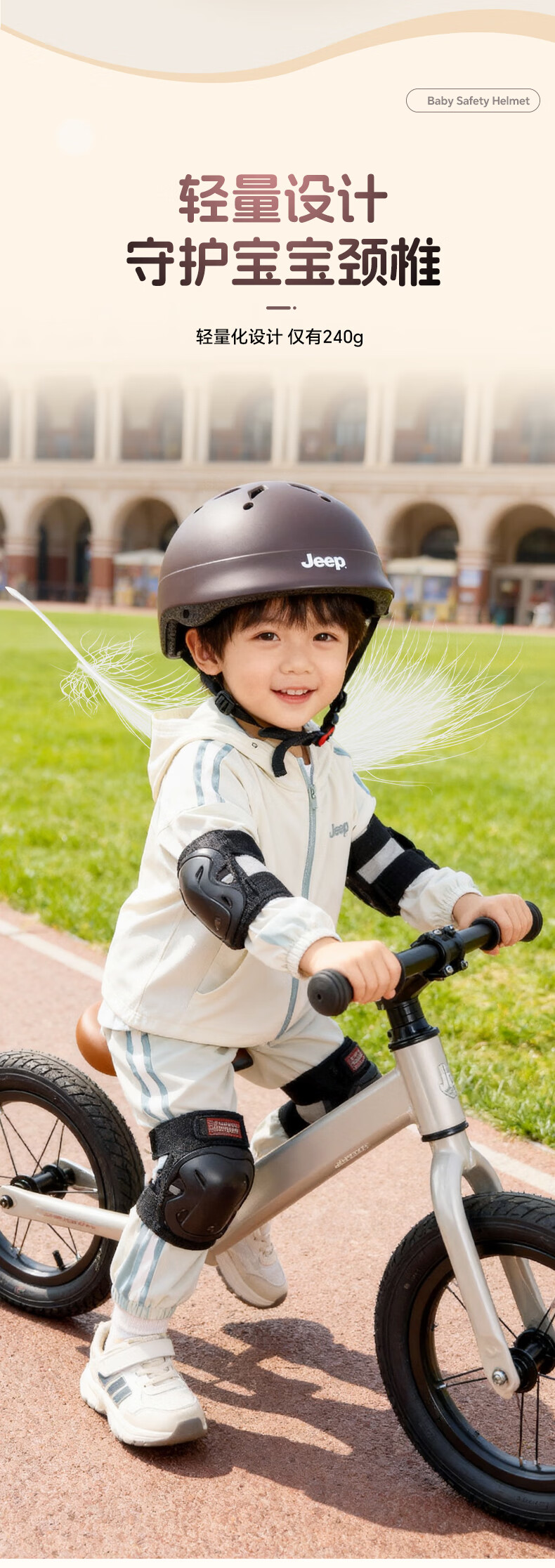 Jeep吉普儿童头盔轻便透气宝宝1-6岁安全盔男女孩骑行帽儿童圆盔护具 奶霜白