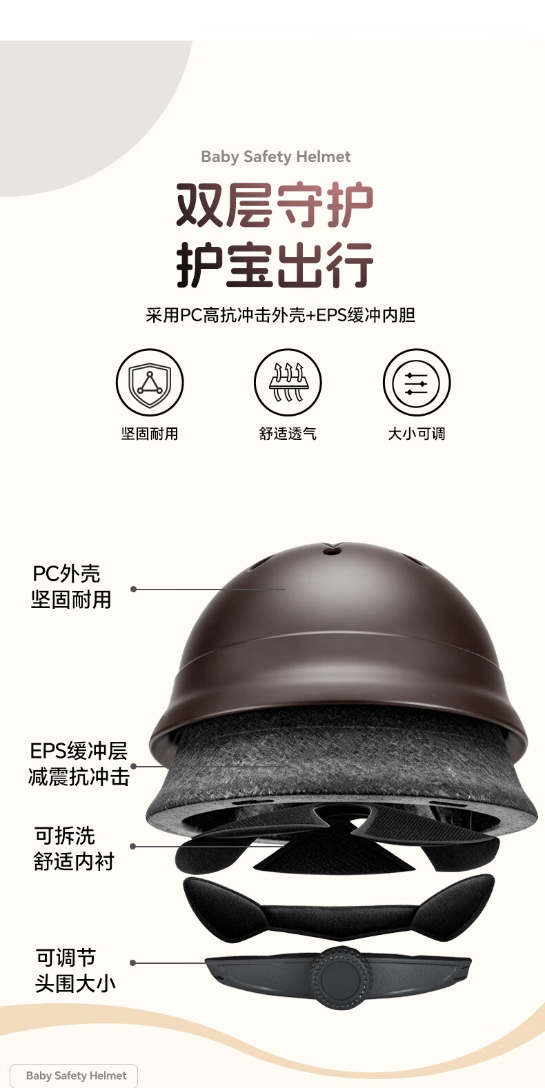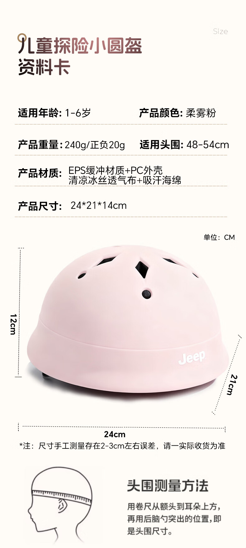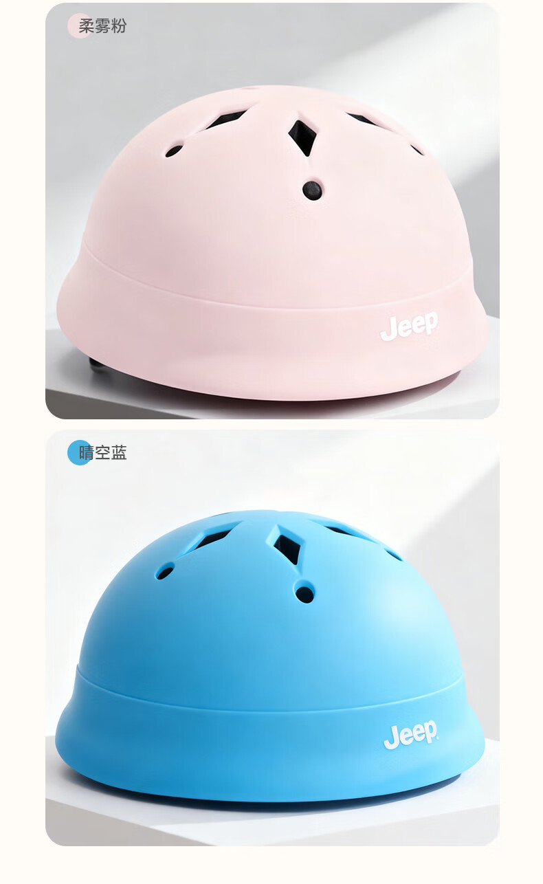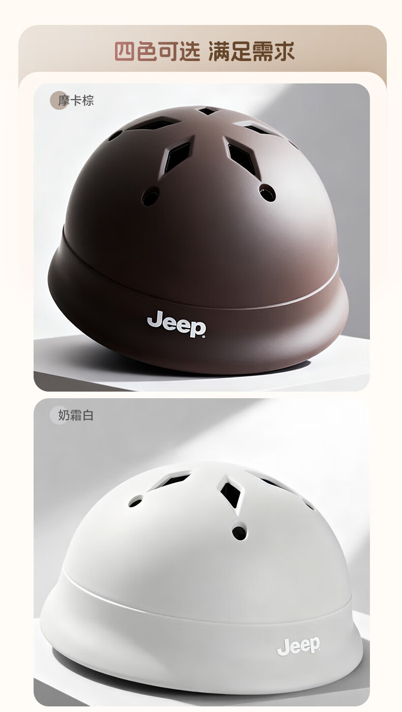 Jeep吉普儿童头盔轻便透气宝宝1-6岁安全盔男女孩骑行帽儿童圆盔护具 奶霜白