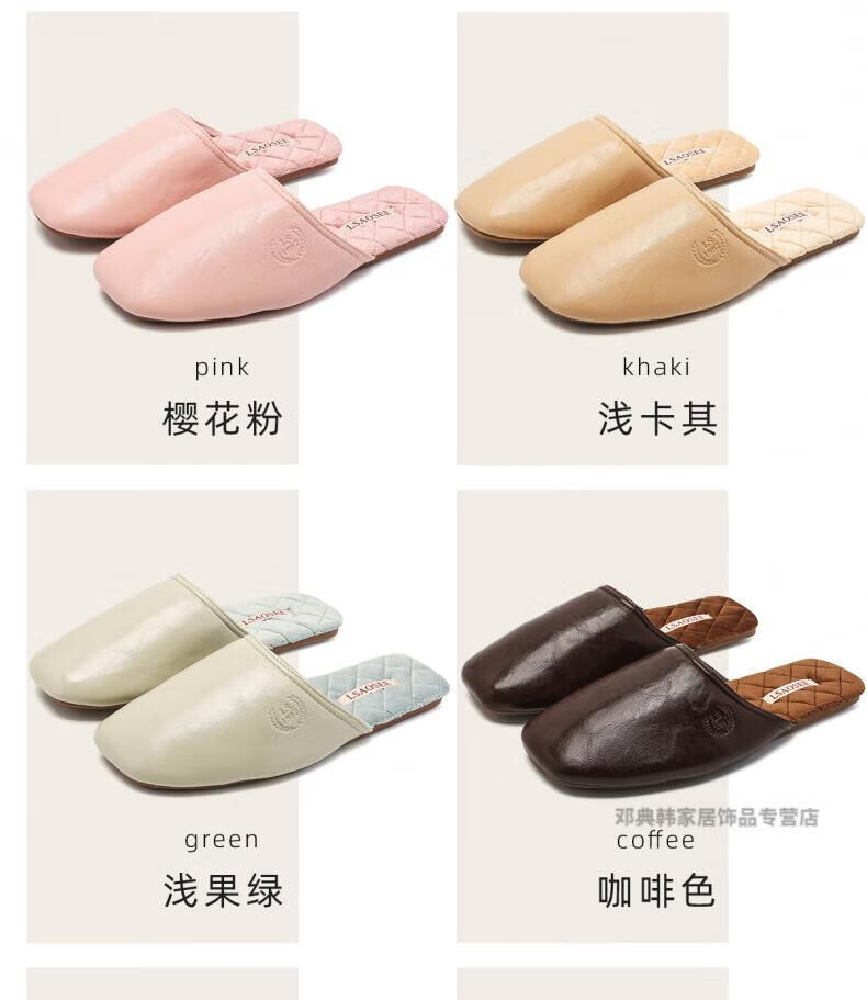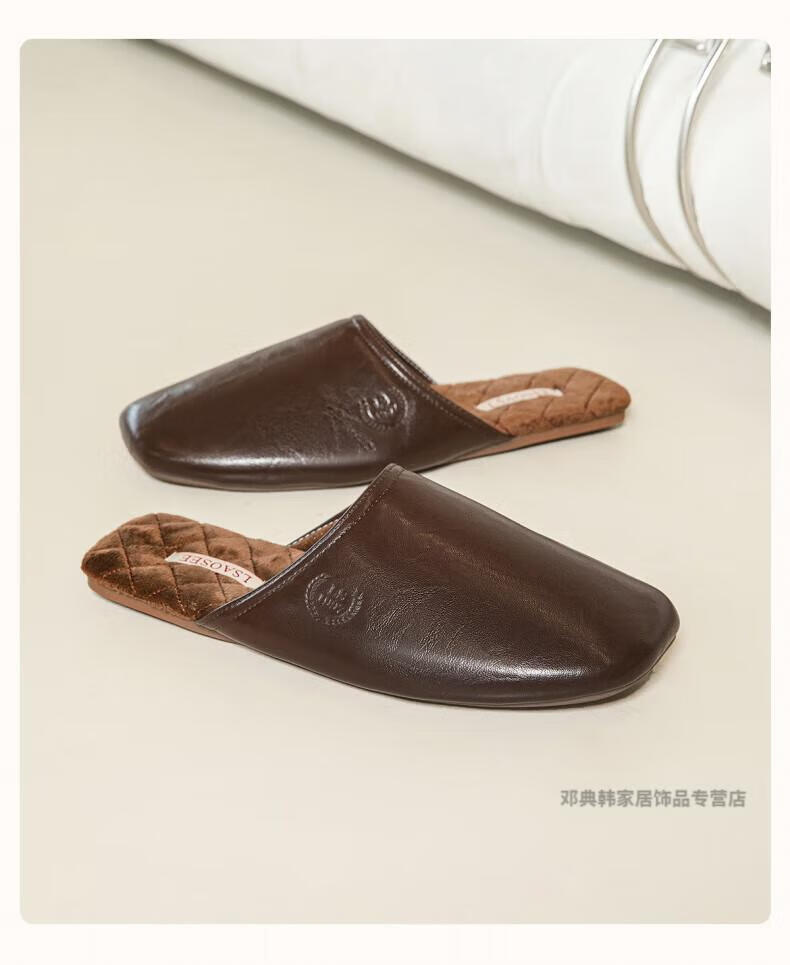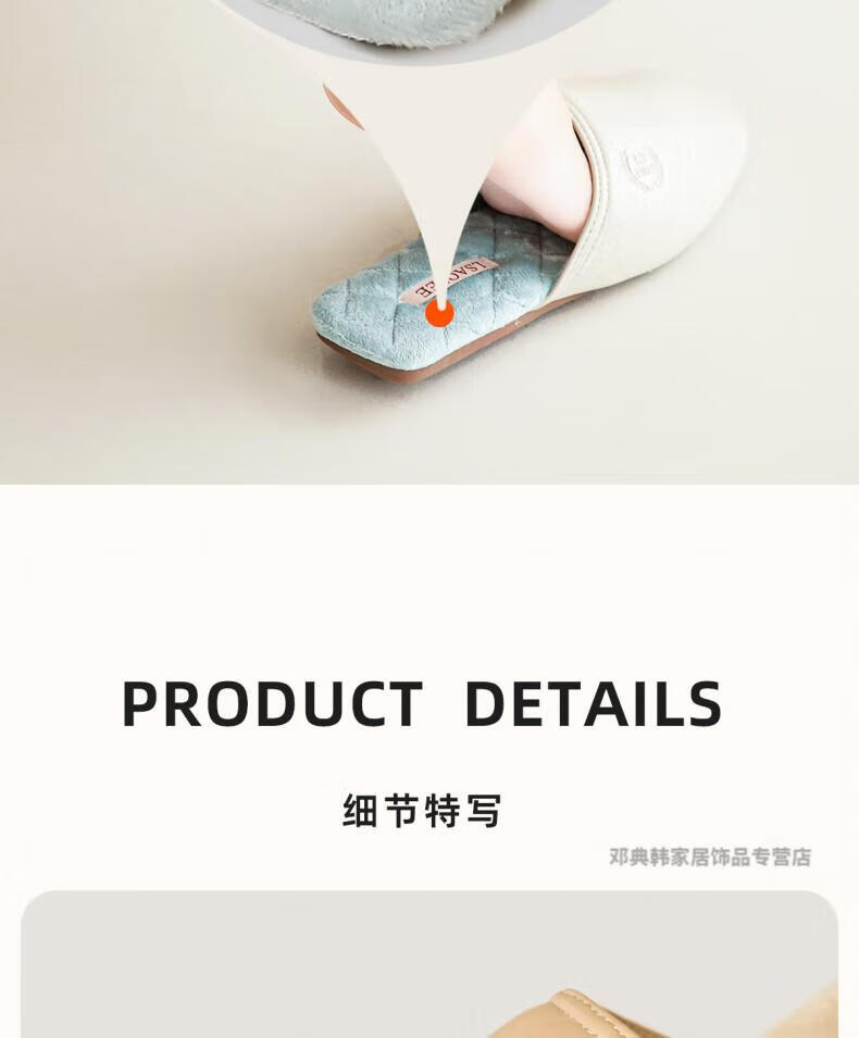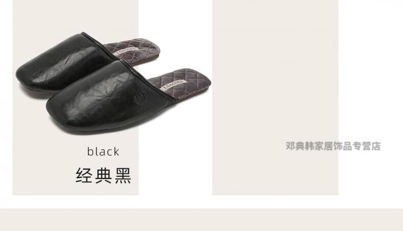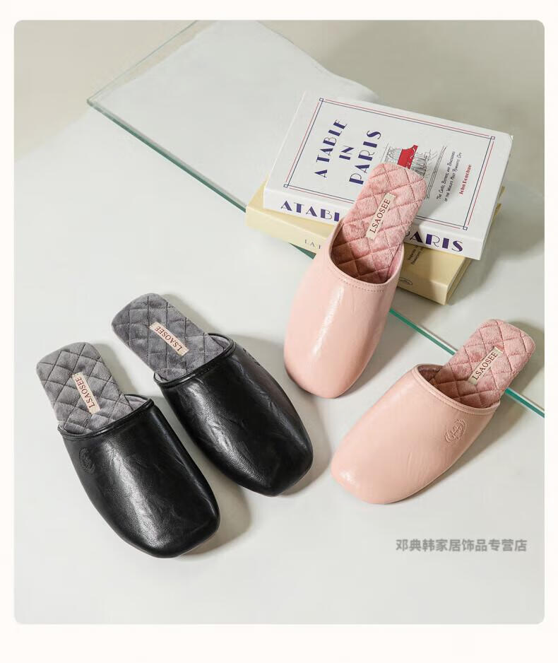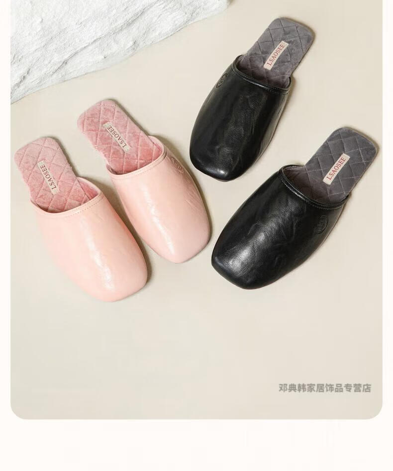 DEATKN德国高端轻奢纹理皮纹情侣棉拖鞋女防水PU皮保暖轻便防滑牛筋底男 浅果绿 35-36 36_37_(适合脚)
