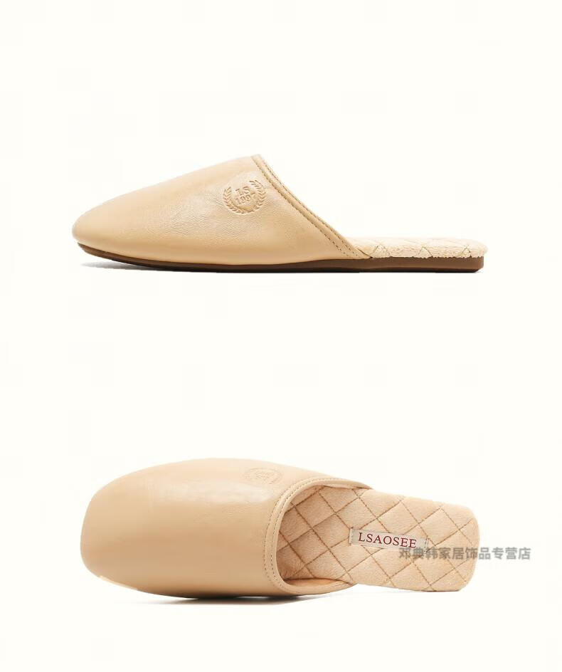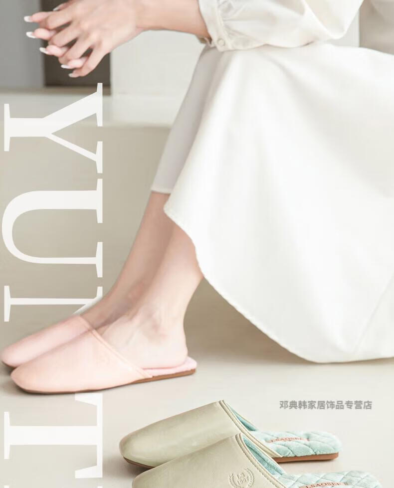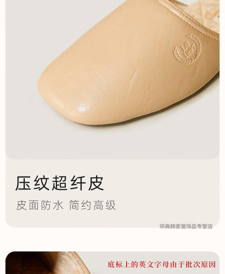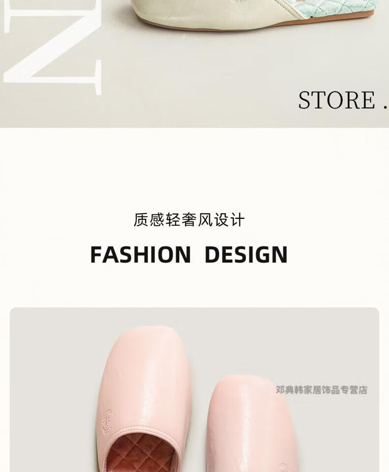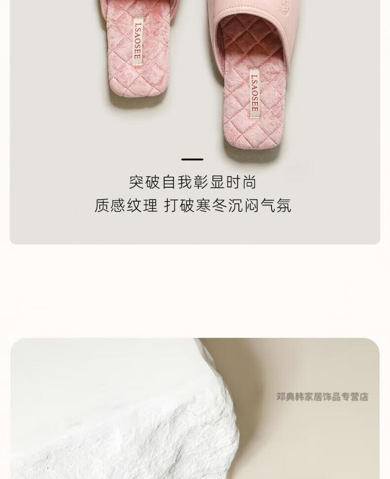 DEATKN德国高端轻奢纹理皮纹情侣棉拖鞋女防水PU皮保暖轻便防滑牛筋底男 浅果绿 35-36 36_37_(适合脚)