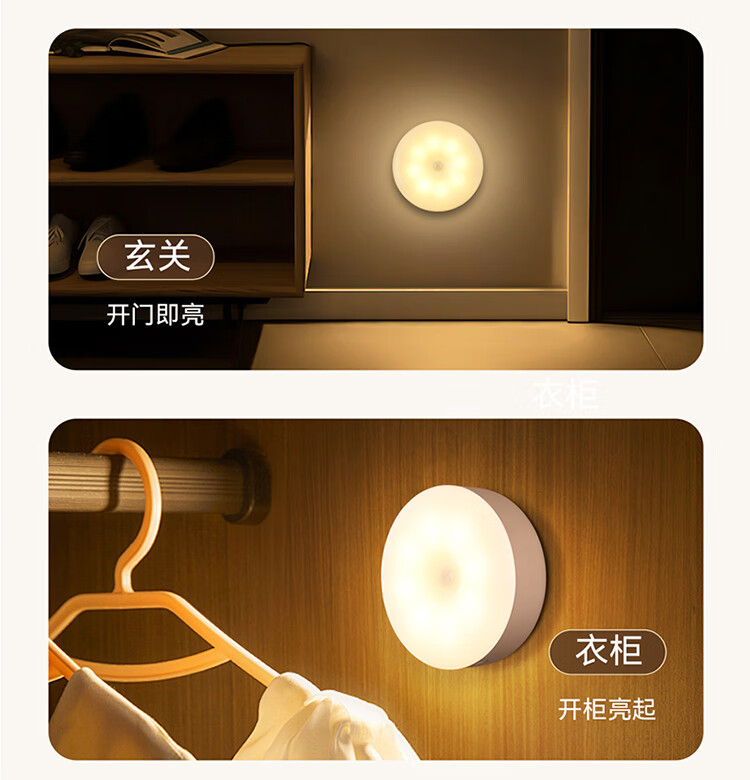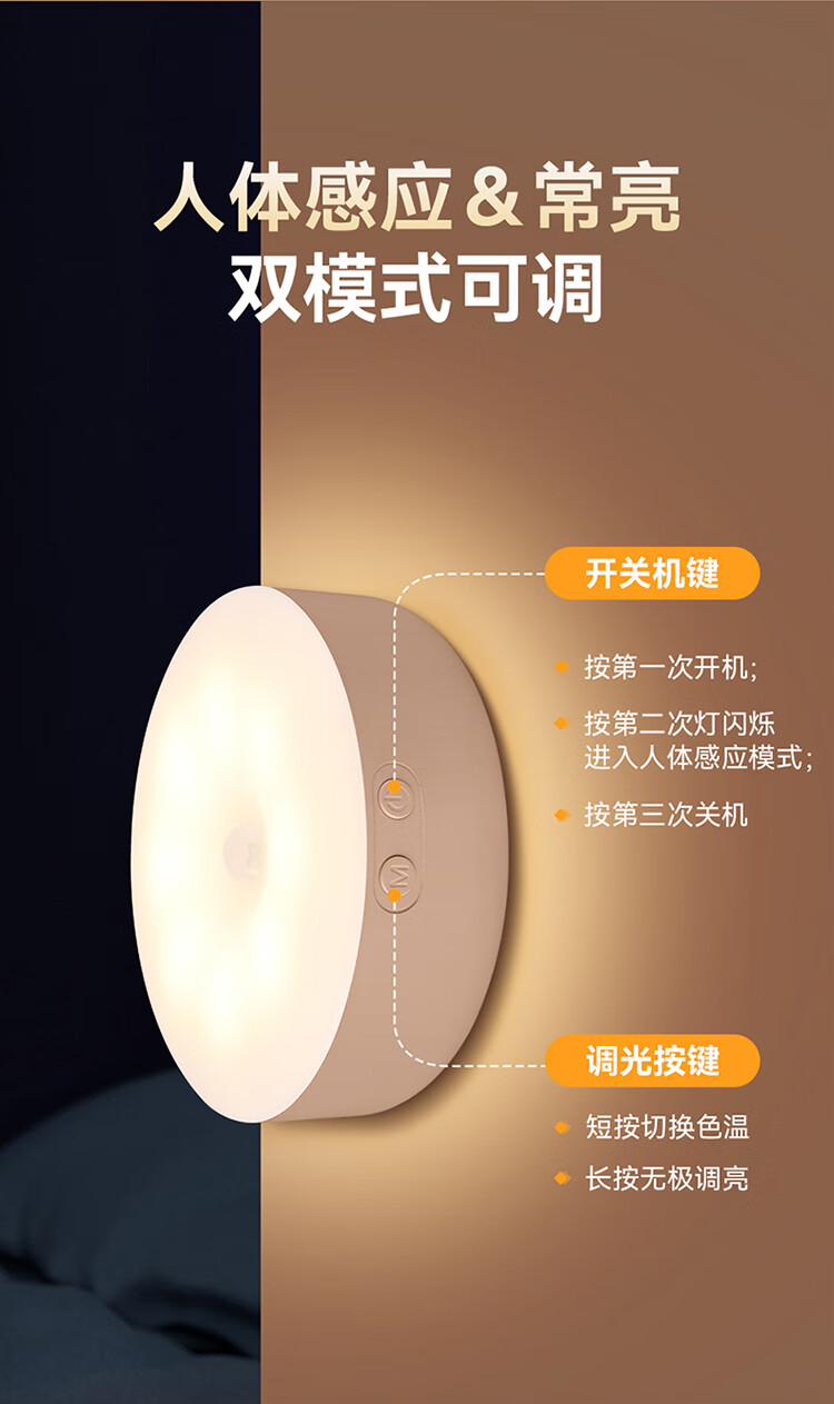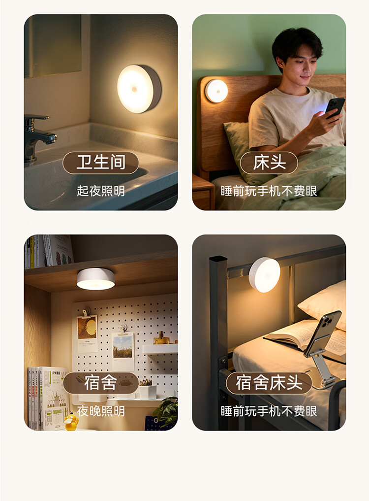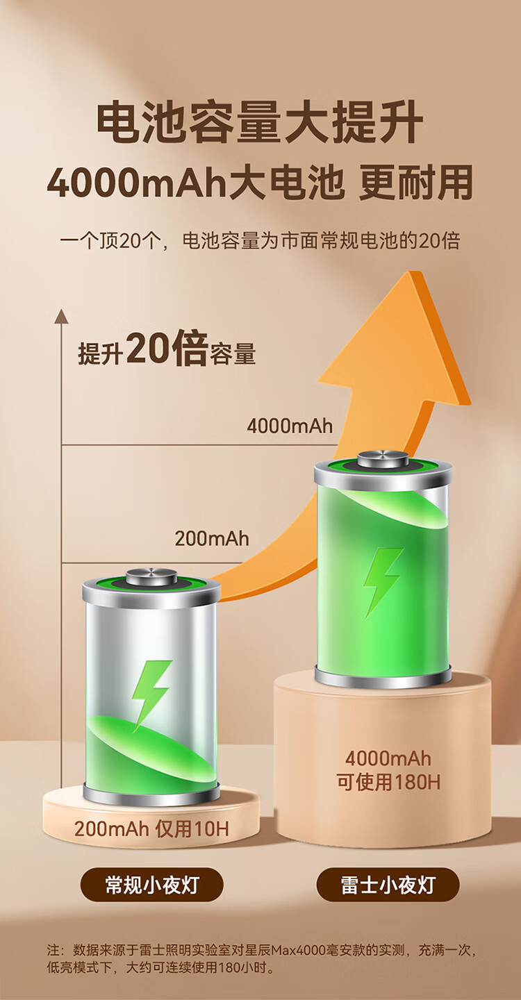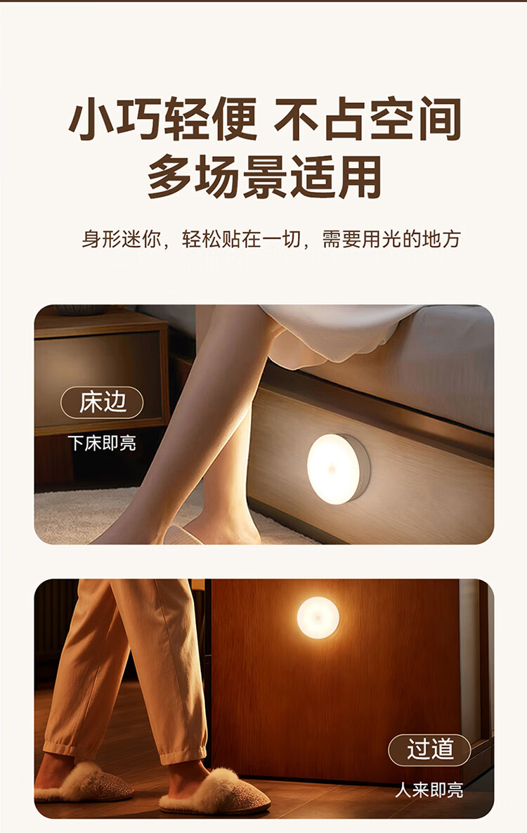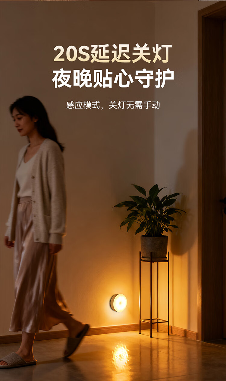 雷士照明无线人体感应小夜灯人来即亮家用过道走廊卧室睡眠充电灯大容量 4000毫安电池+三色光|无极调光