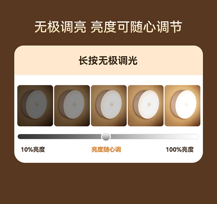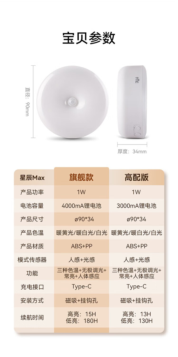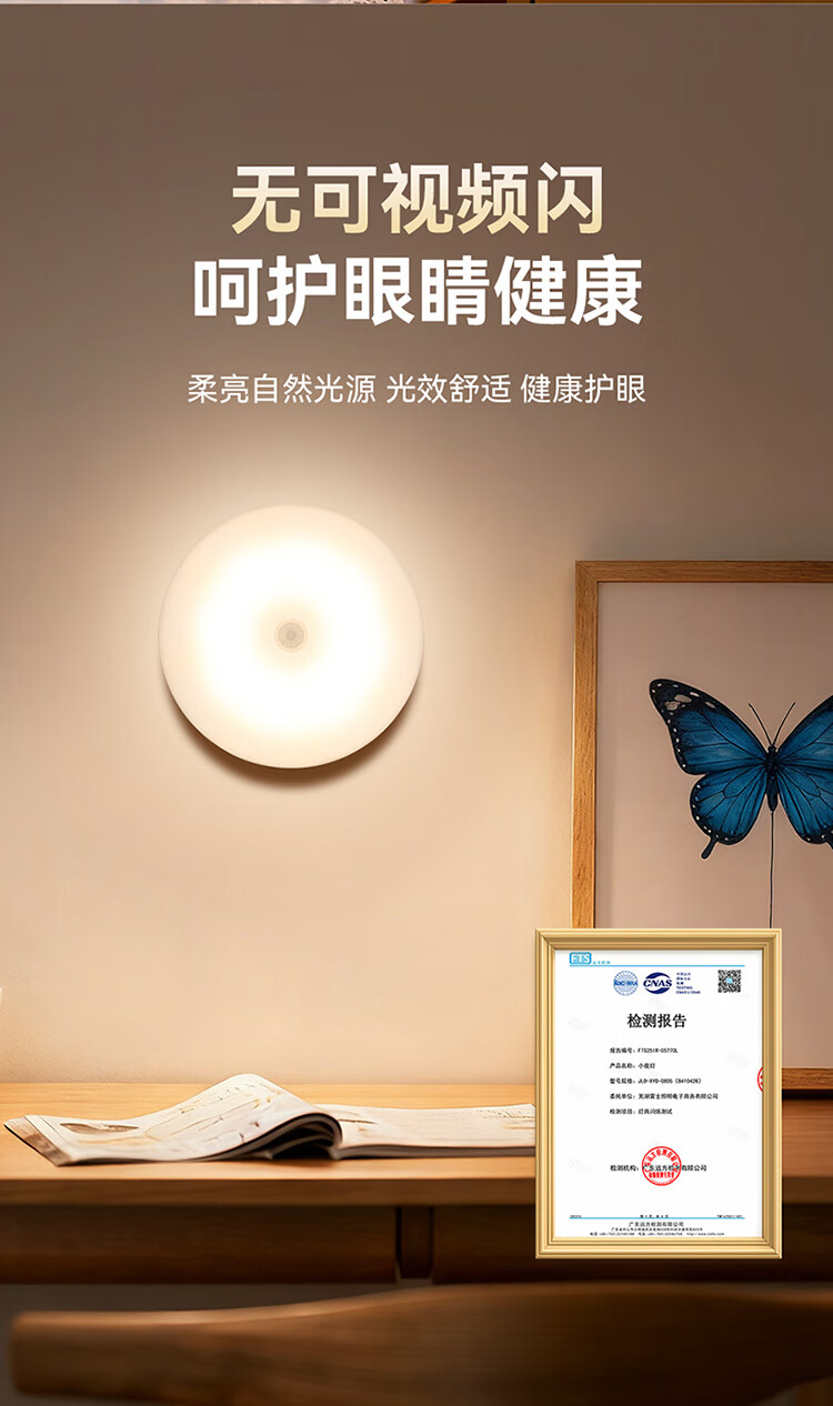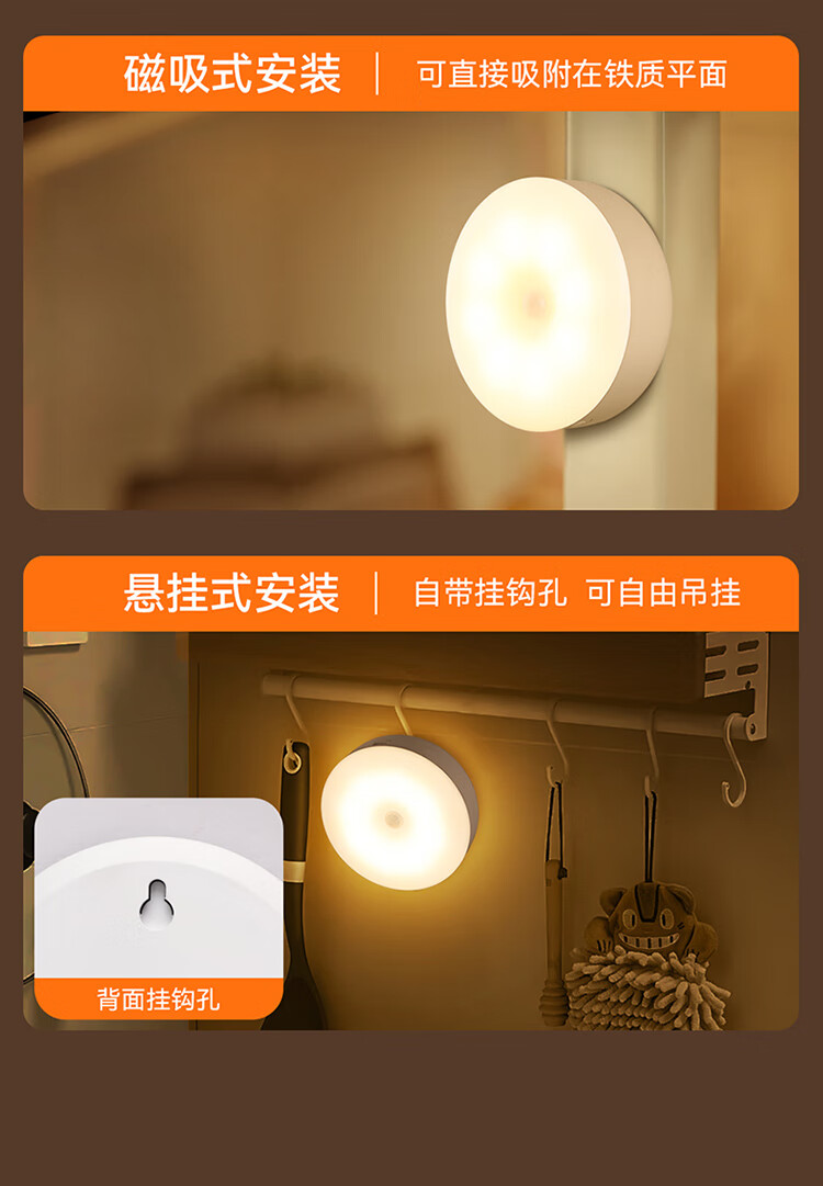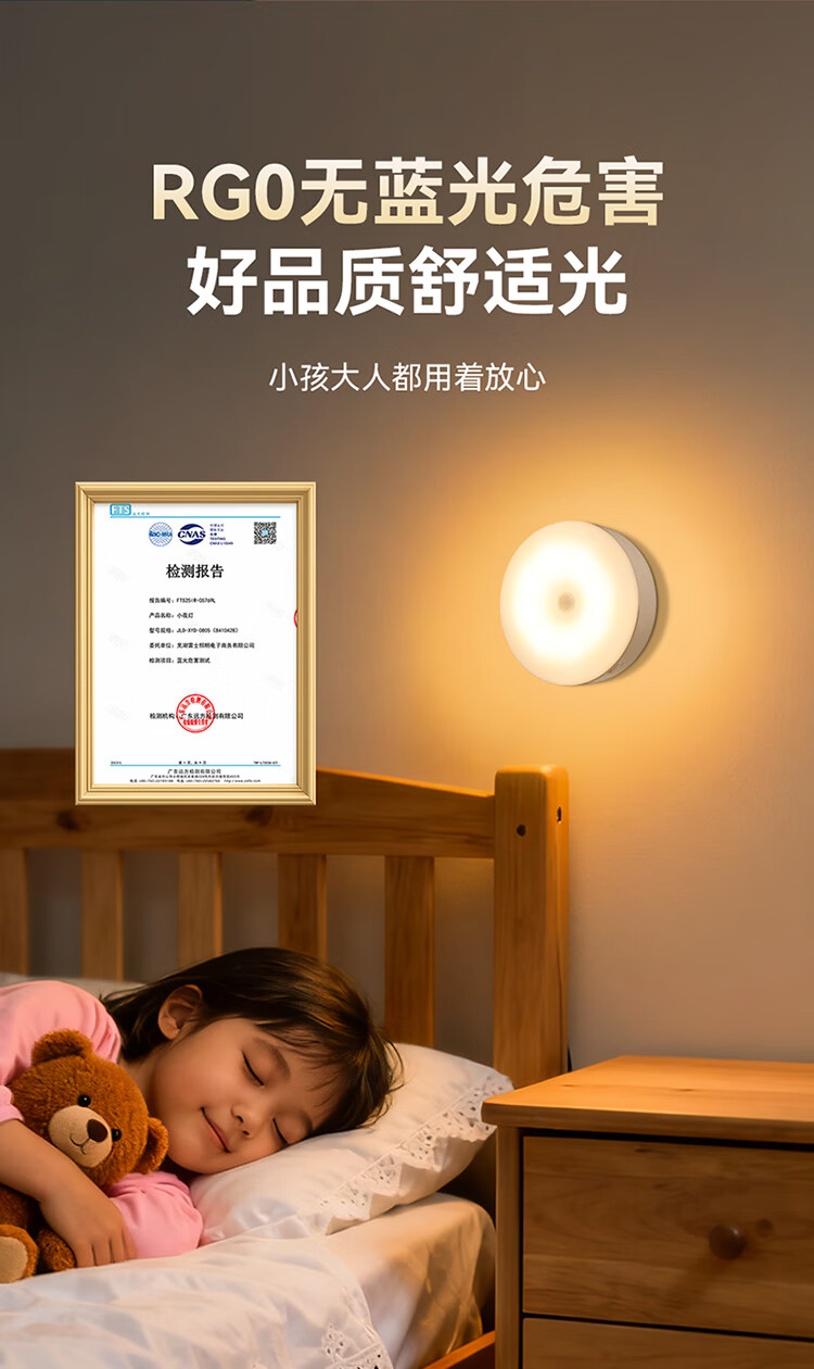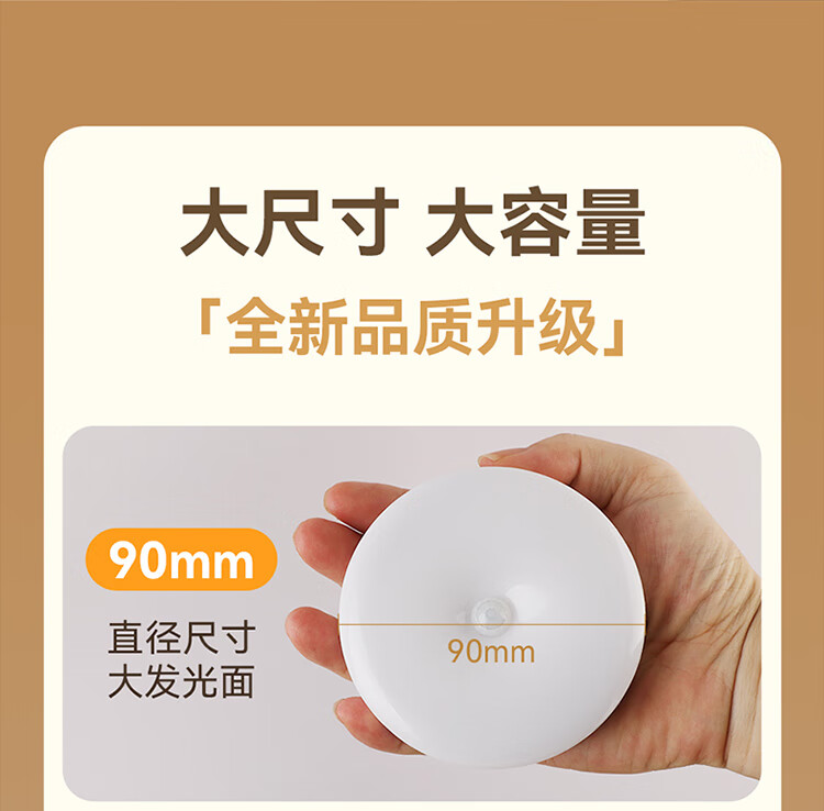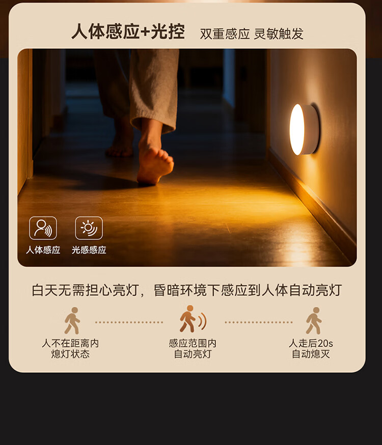 雷士照明无线人体感应小夜灯人来即亮家用过道走廊卧室睡眠充电灯大容量 4000毫安电池+三色光|无极调光