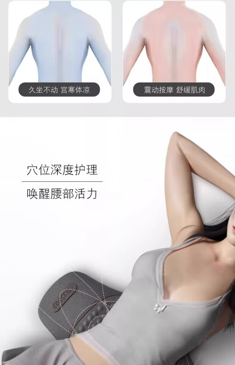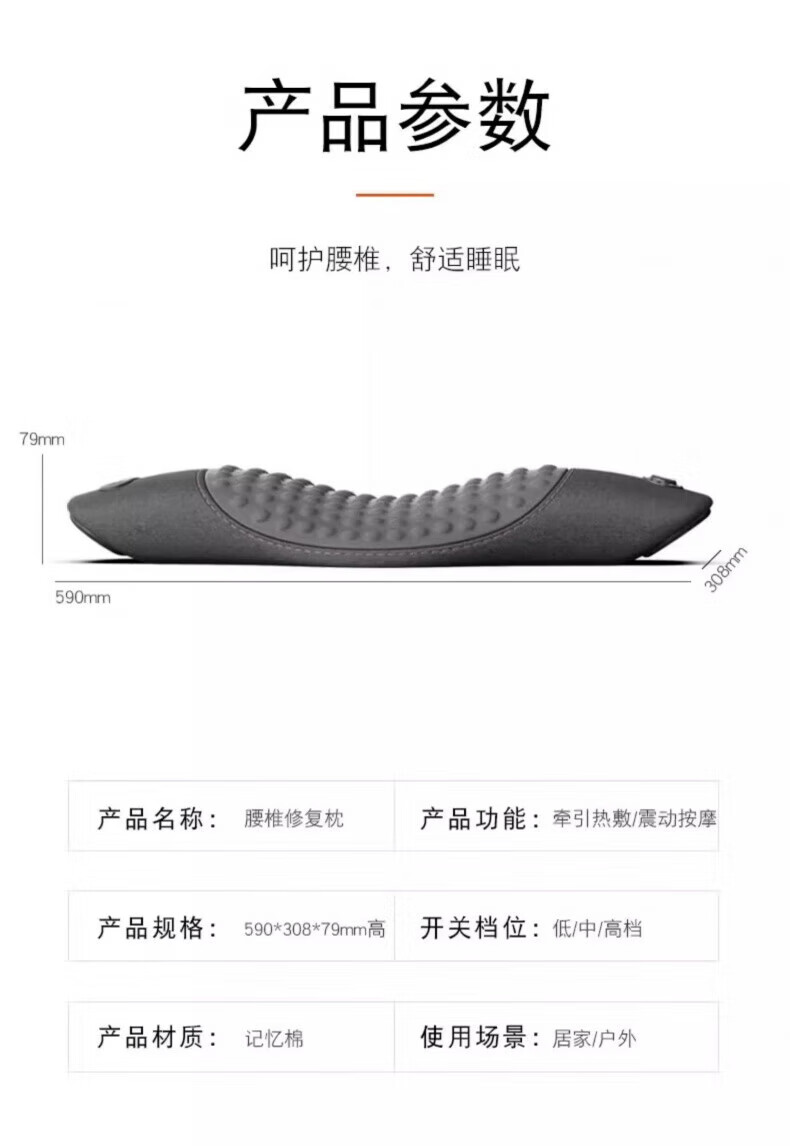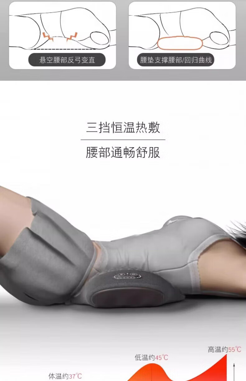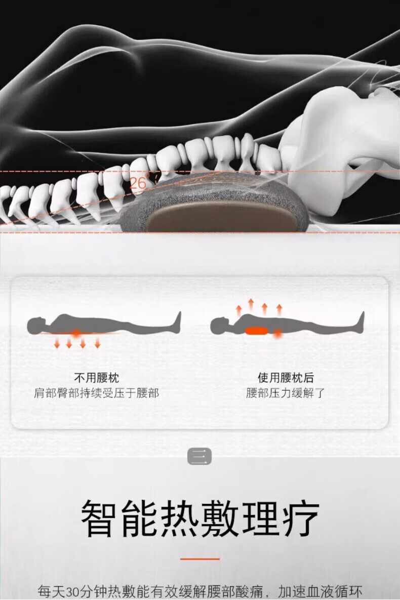 DEATKN德国腰枕床上睡觉专用护腰部支撑托靠腰按摩器加热腰垫 第六代豪华款[震动按摩]高级灰