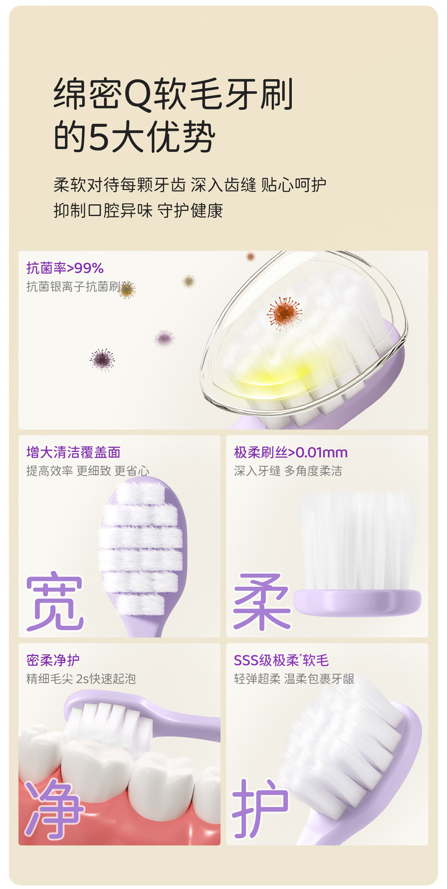英格翰青少年牙刷12岁以上儿童软毛护齿牙刷中大童初高中生2支(粉+紫)