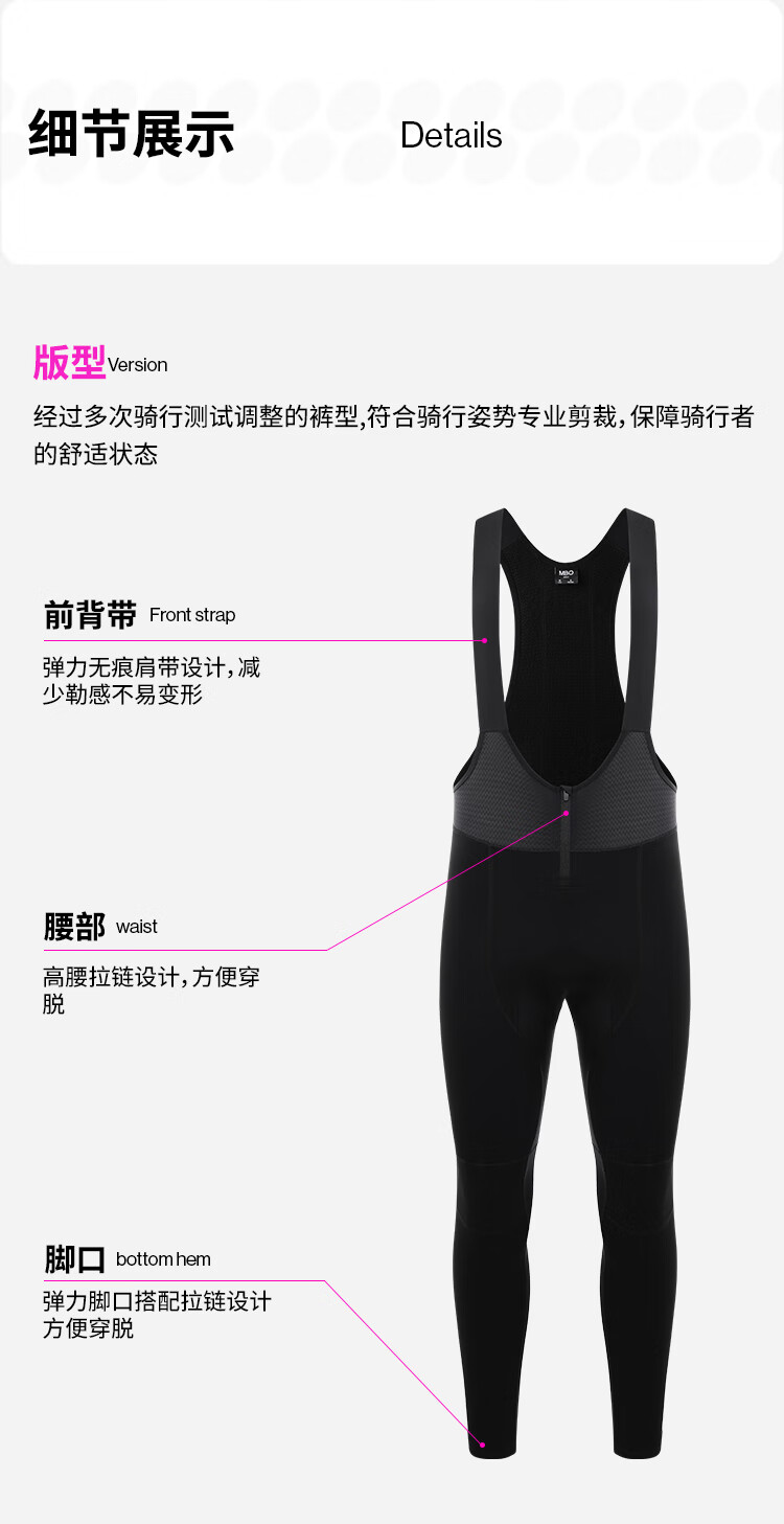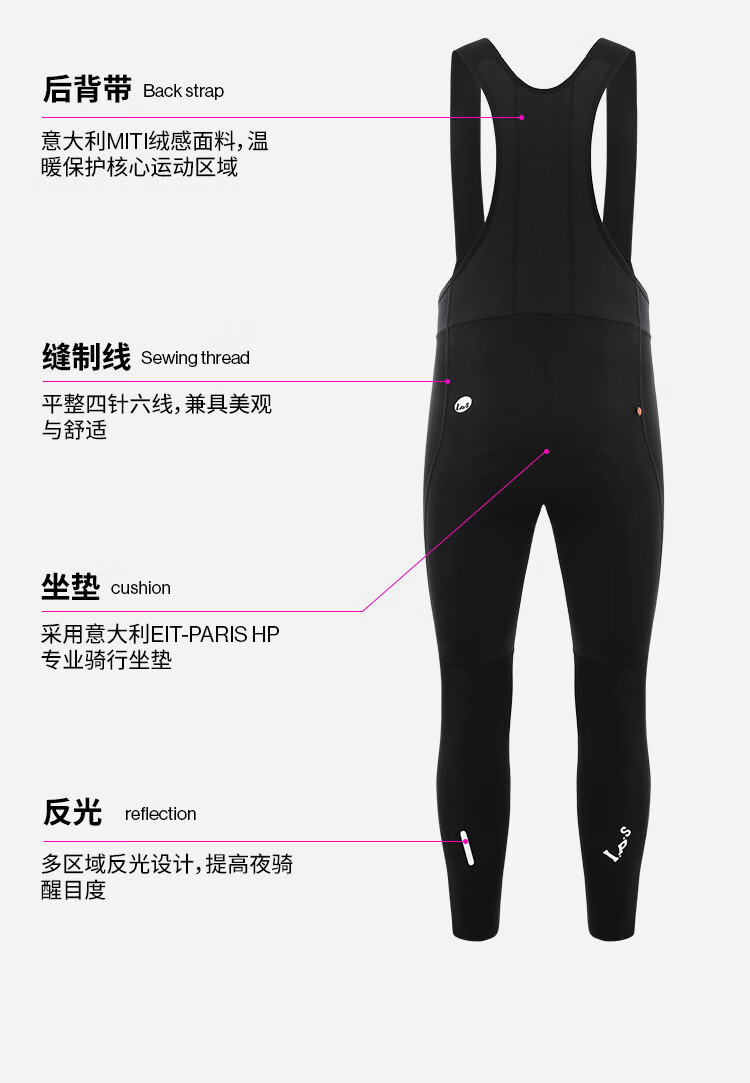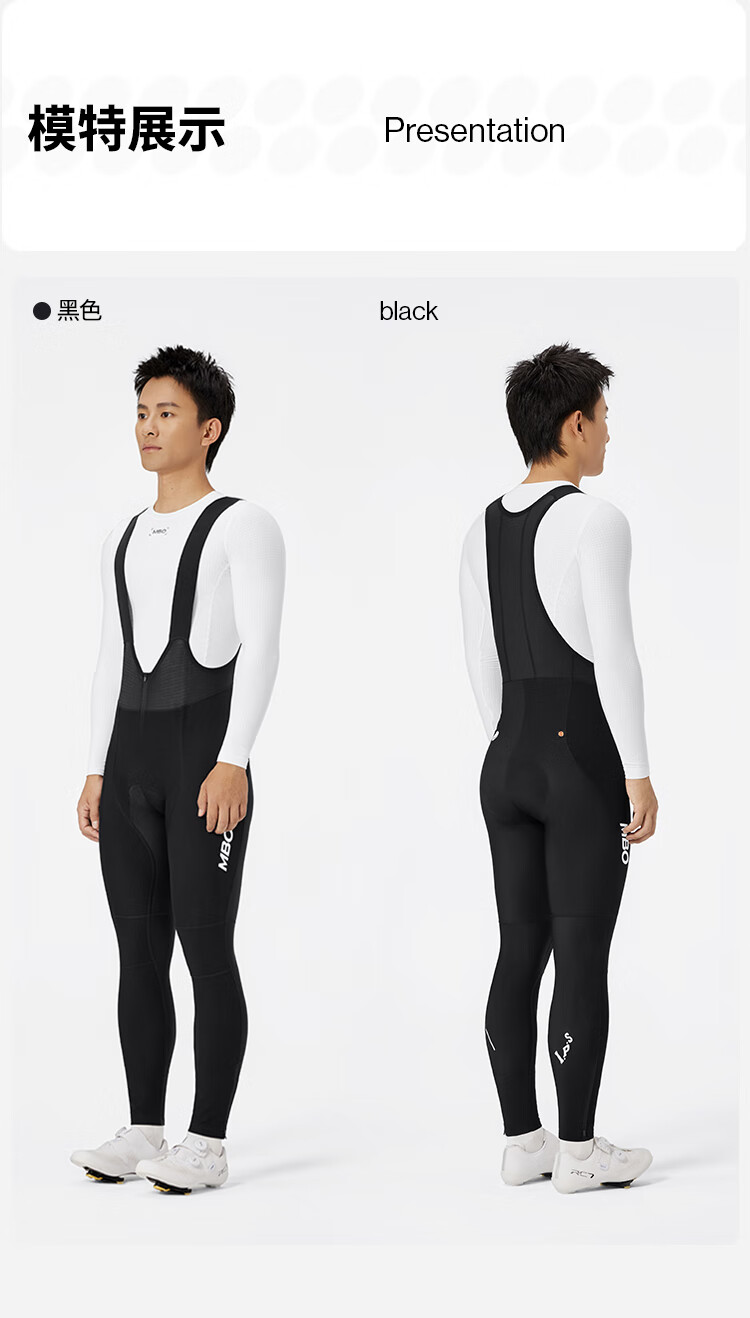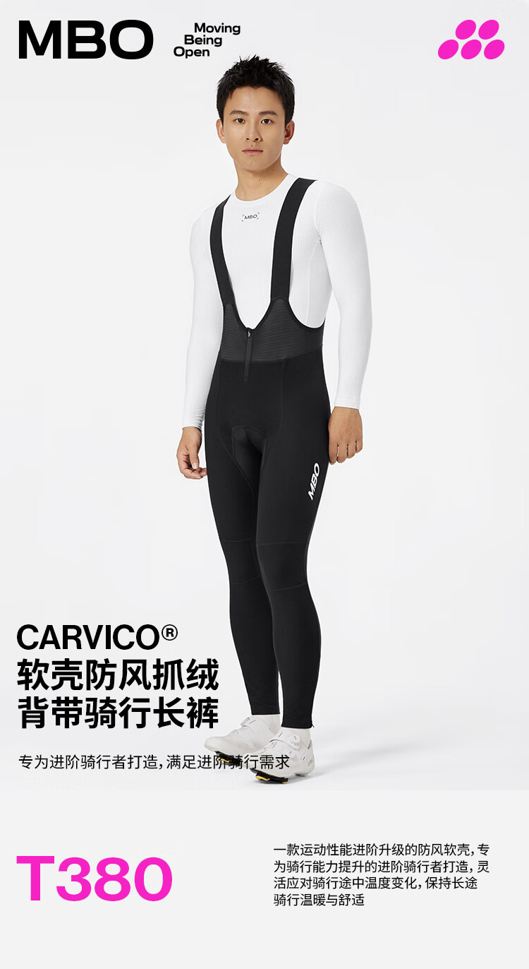 MBO CARVICO® 男子冬季软壳防风抓绒背带骑行长裤 T380 双箭头坐垫 黑色 M