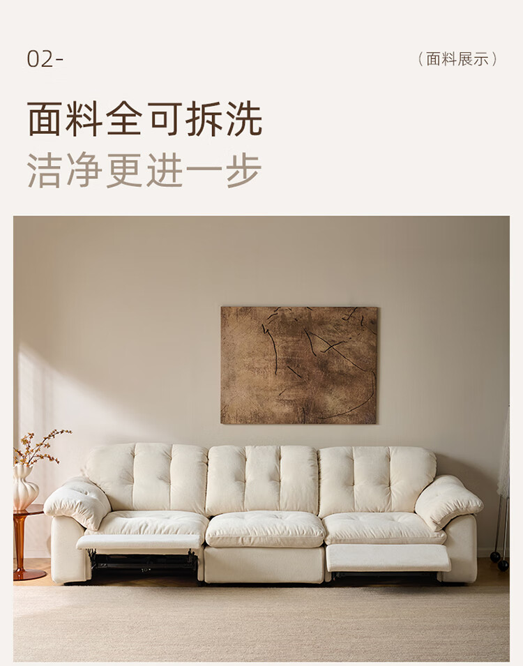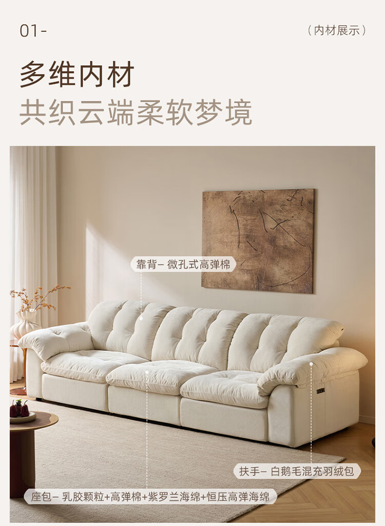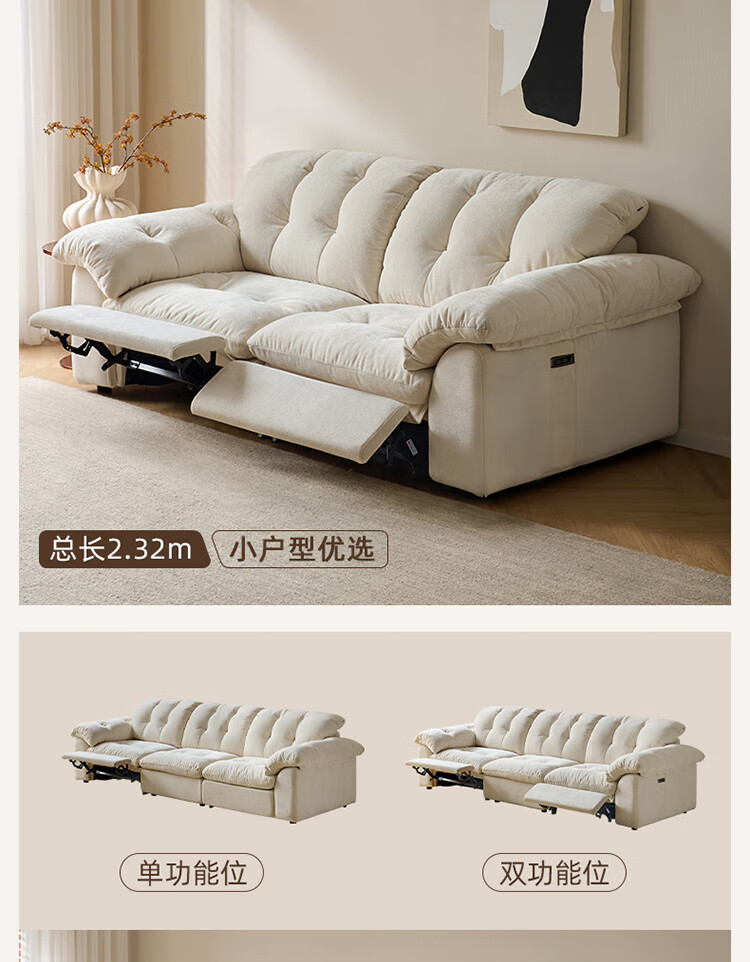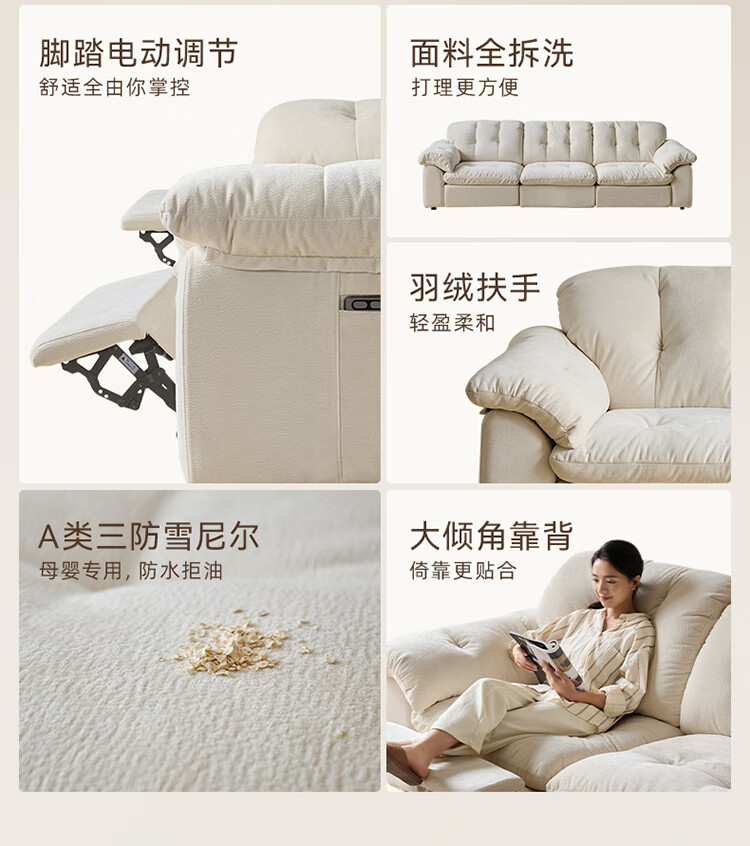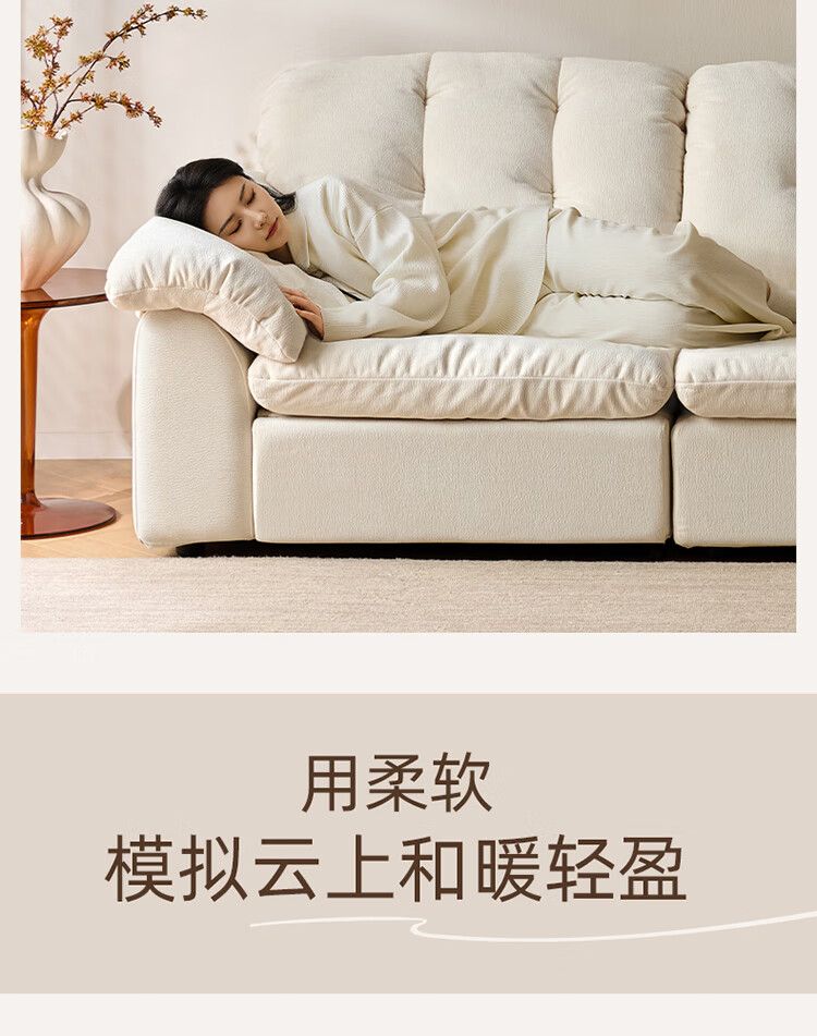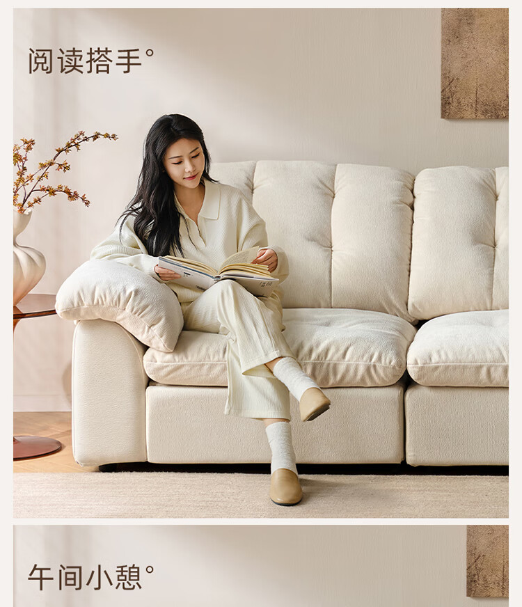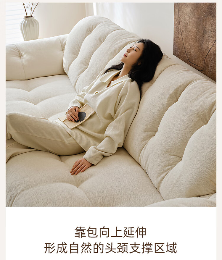 全友家居奶油风云浪沙发可拆洗布艺沙发客厅小户型家用多功能直排沙发 【厂家直发】【双功能位】云絮白|2.88m A类面料+白鹅毛+紫罗兰海绵+62cm宽大座深