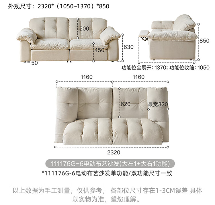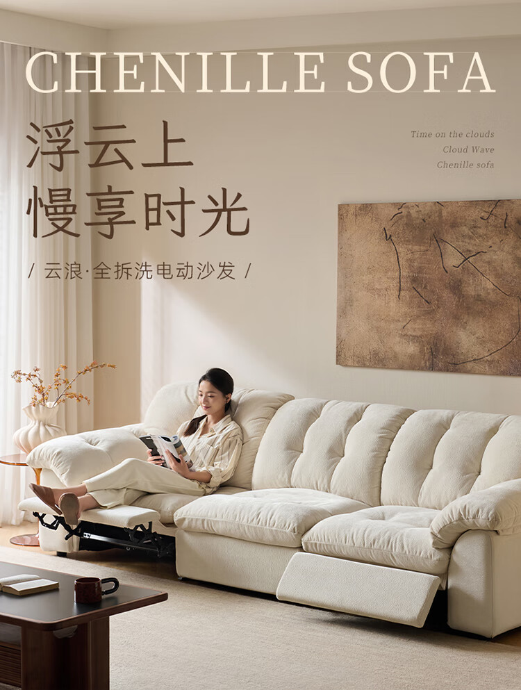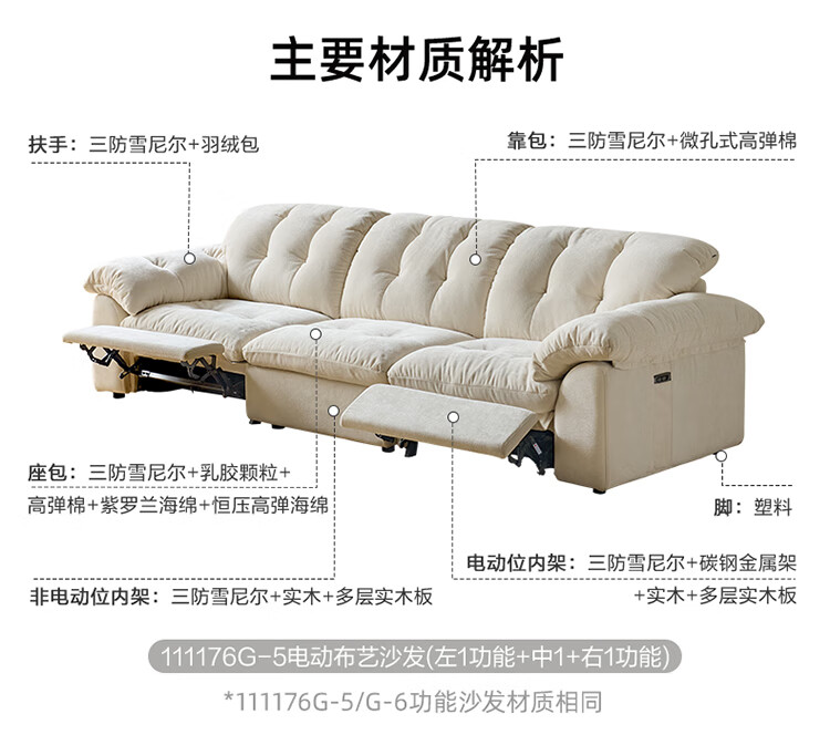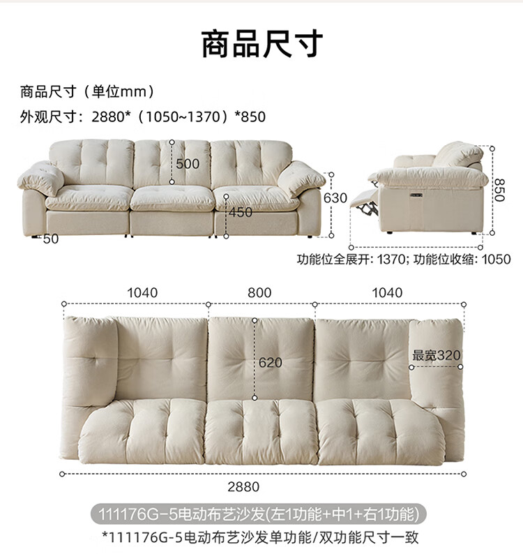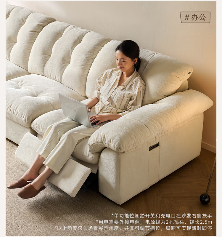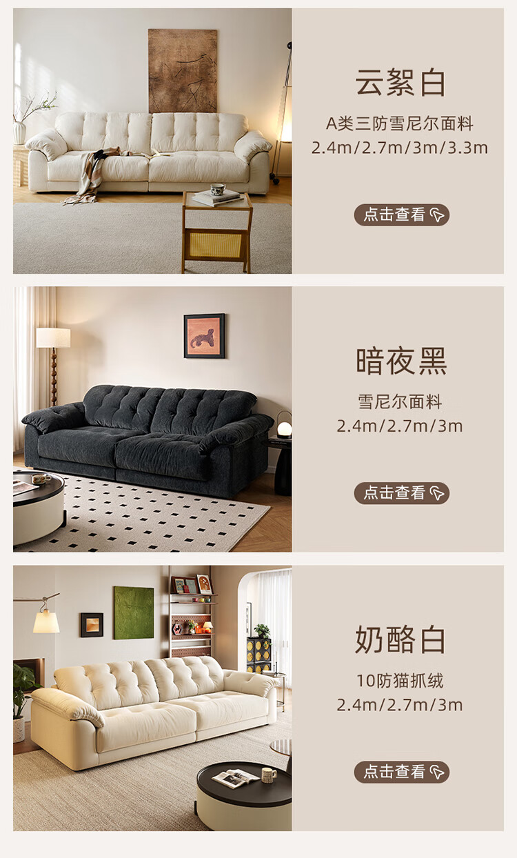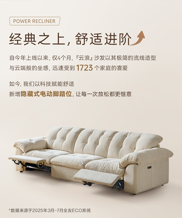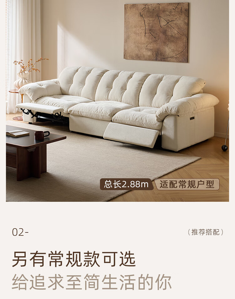 全友家居奶油风云浪沙发可拆洗布艺沙发客厅小户型家用多功能直排沙发 【厂家直发】【双功能位】云絮白|2.88m A类面料+白鹅毛+紫罗兰海绵+62cm宽大座深