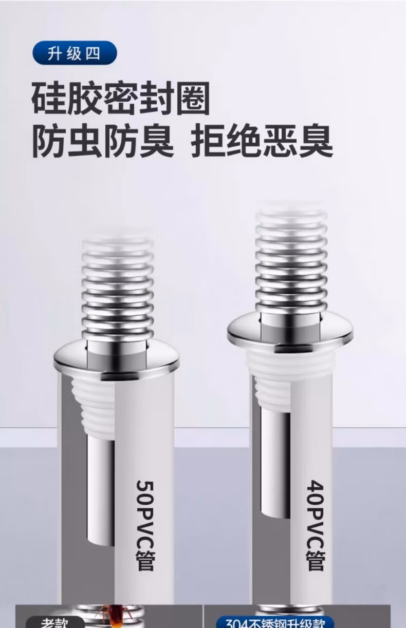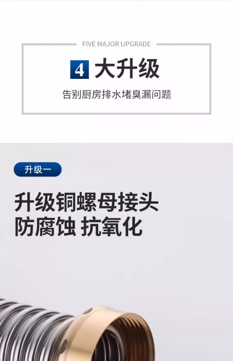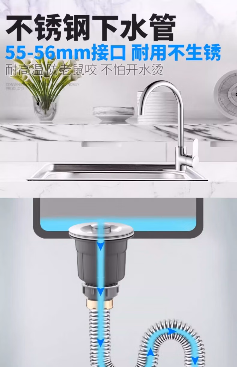 DEATKN德国高端厨房洗菜盆下水管不锈钢管道排水管洗碗池水槽配件防臭神 45/55/58通用接口60cm不锈钢下水