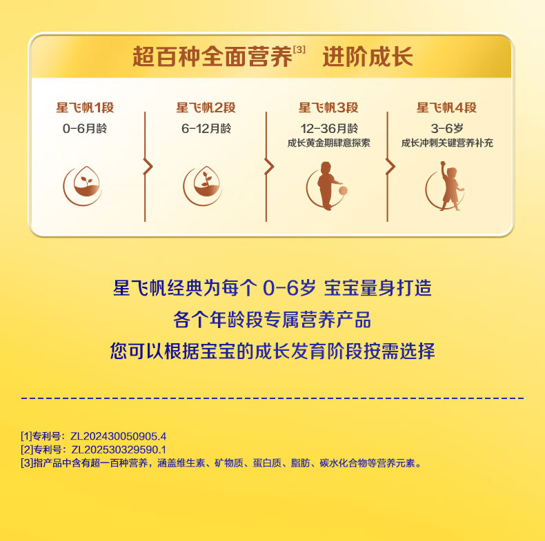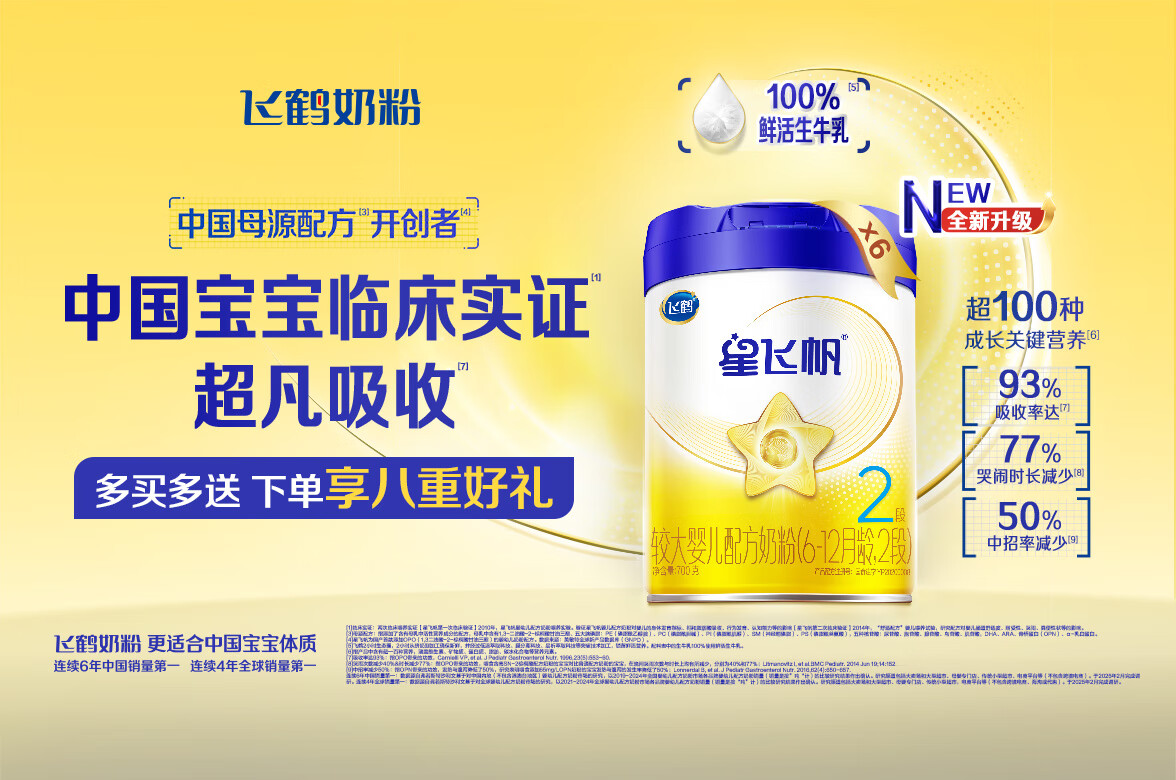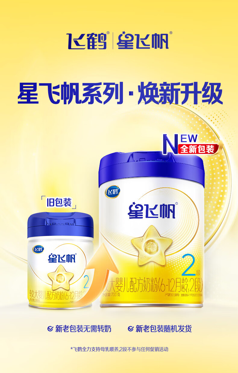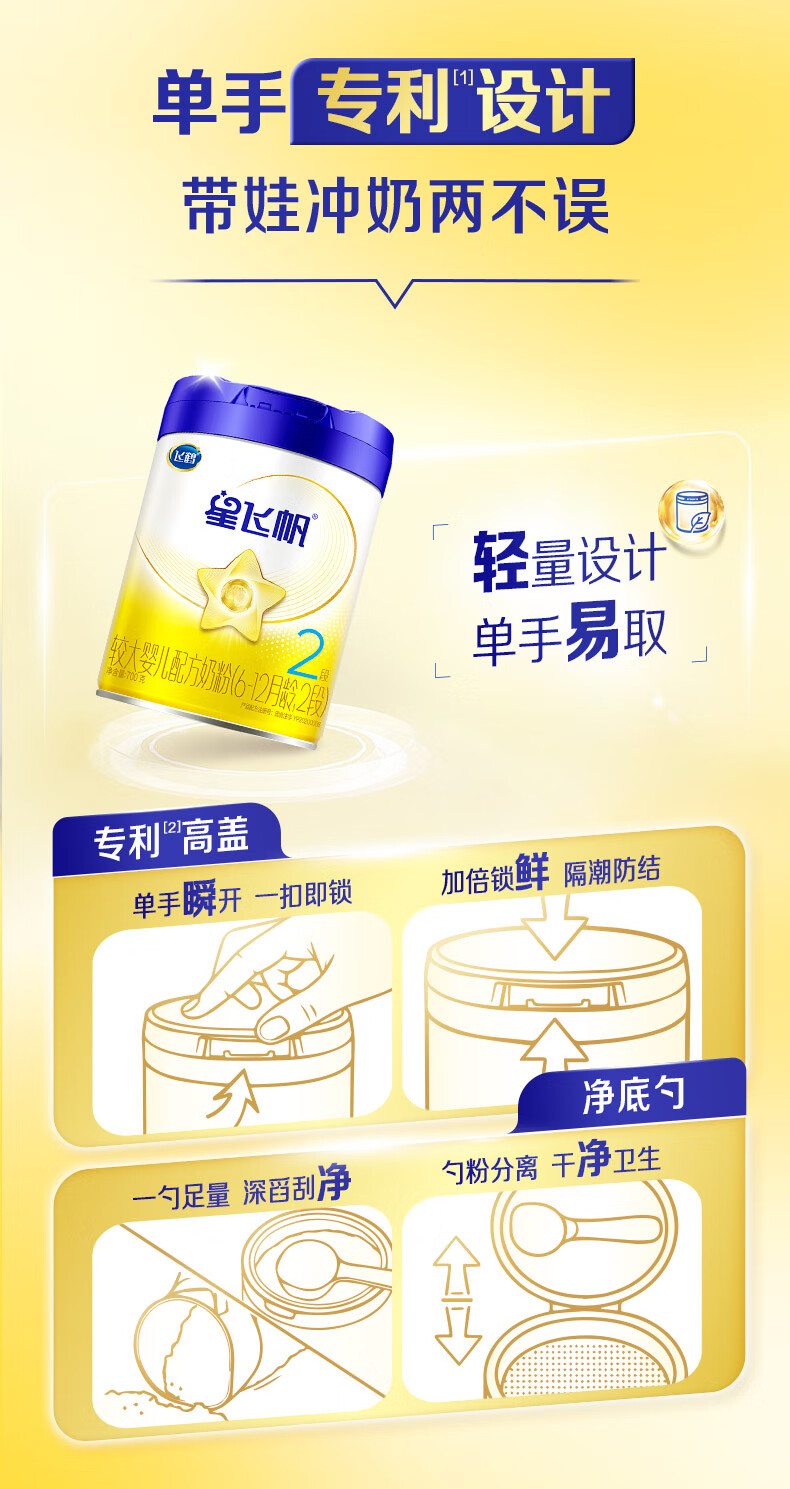 飞鹤星飞帆 婴幼儿配方奶粉 2段(6-12个月)700g*6 专利OPO 育儿补贴