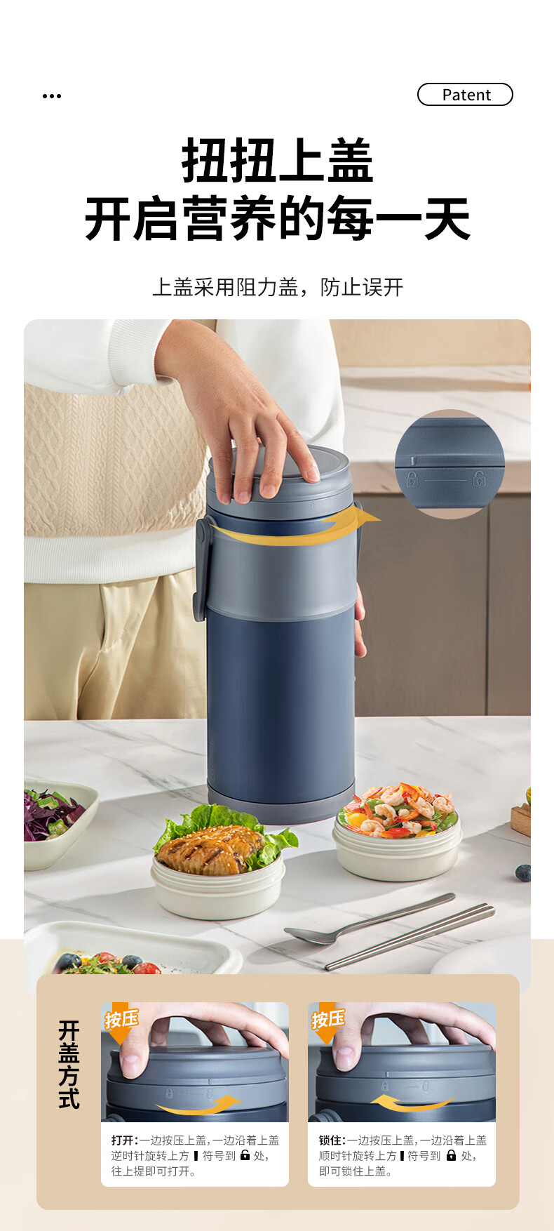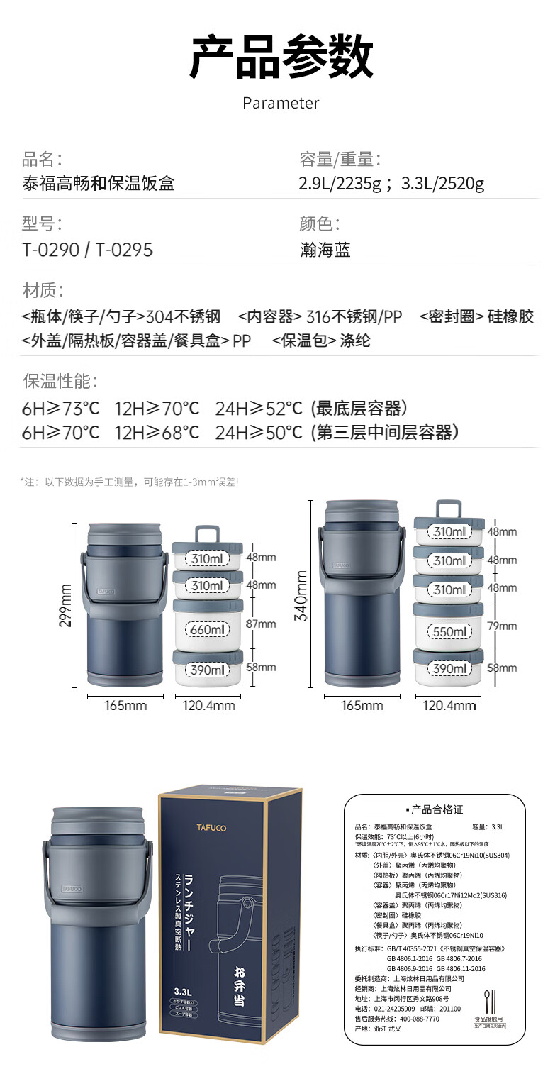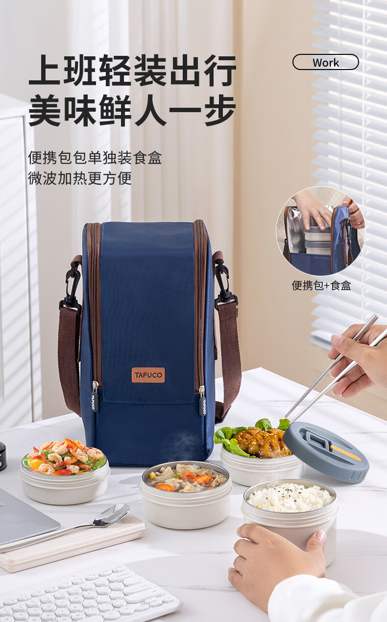 泰福高(TAFUCO)保温饭盒316不锈钢学生便携保温桶上班族大容量便当盒食品级T0290